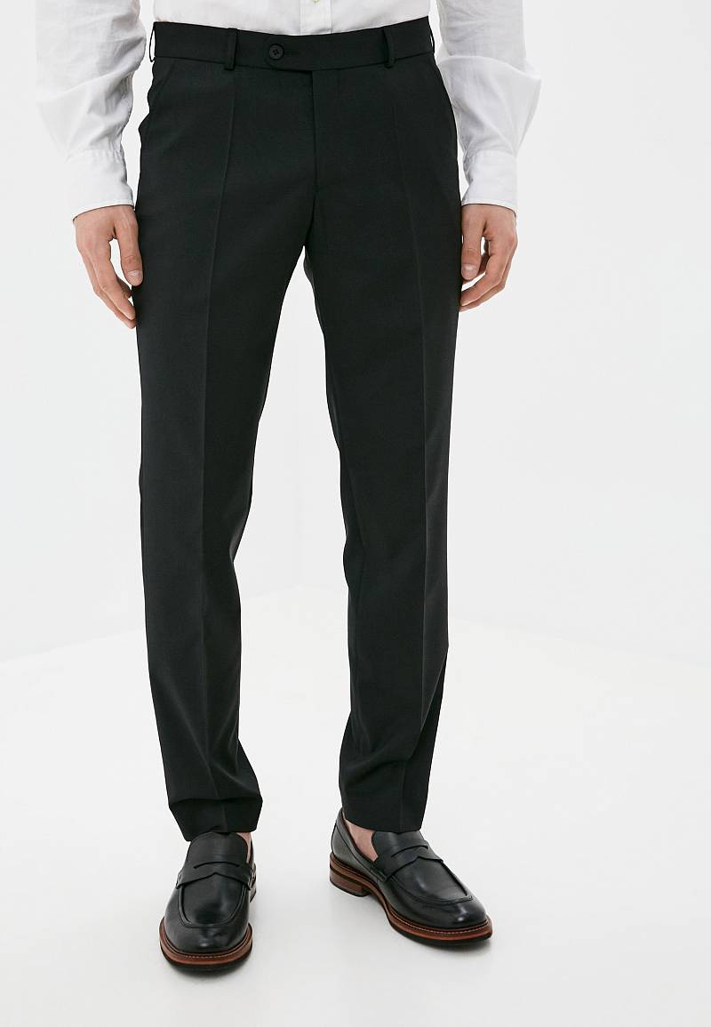 Slim fit (ПРИЛЕГАЮЩИЙ СИЛУЭТ), рекомендуется брать на размер больше. Брюки без защипов, с боковыми наклонными карманами и двумя задними карманами «в рамку». Передние половинки на подкладке. Верхний срез брюк обработан поясом с корсажной лентой и шлевками под ремень. Застежка обработана на тесьму-молнию, с петлей-пуговицей на поясе и усилен металлическим крючком.