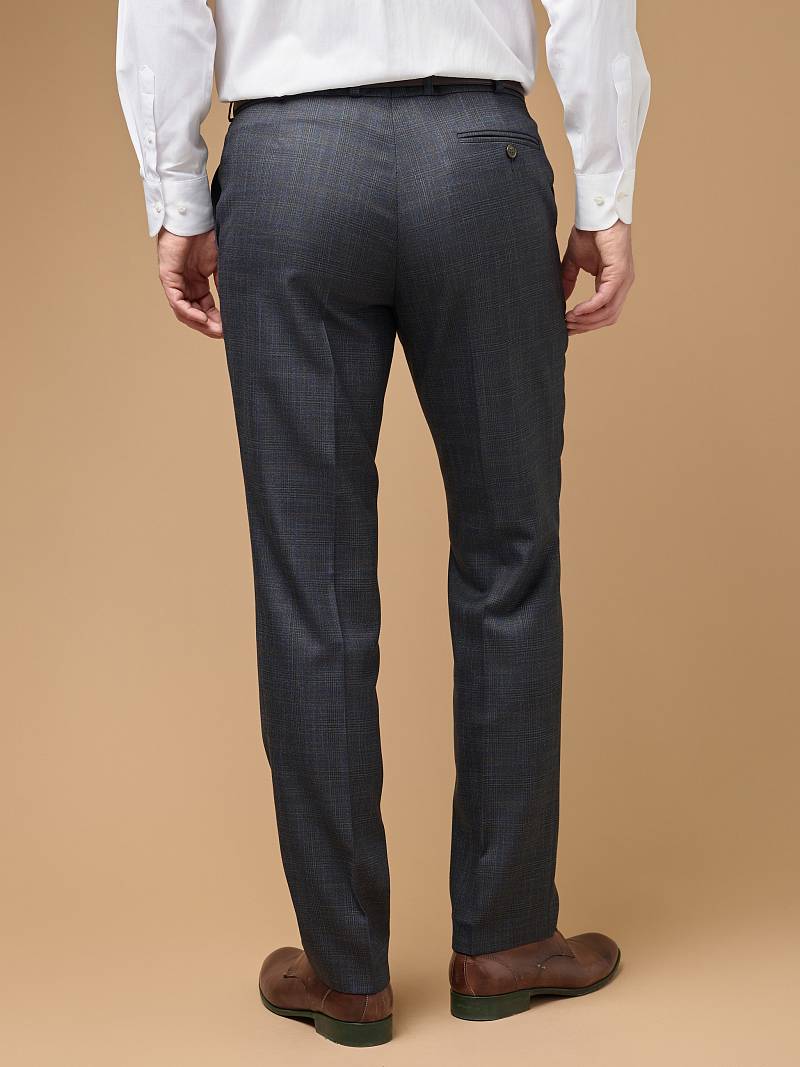Classic fit (ПОЛУПРИЛЕГАЮЩИЙ СИЛУЭТ). Темно-синие зауженные брюки без защипов, с выраженным клетчатым мотивом днем составят офисный образ и дополнит яркий вечером. Наличие в составе ткани лайкры обеспечит дополнительный комфорт и удобство. Брюки с боковыми наклонными карманами и одним задними карманом "в рамку". Верхний срез брюк обработан поясом с корсажной лентой и шлевками под ремень Брюки мужские, классические, нарядные, повседневные, молодежные, casual, для работы в офисе, модные, для мужа, сына, брата, на праздник.