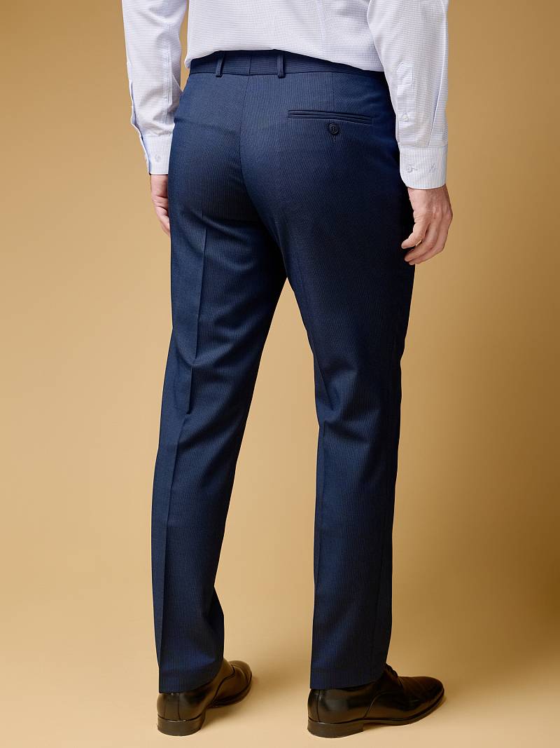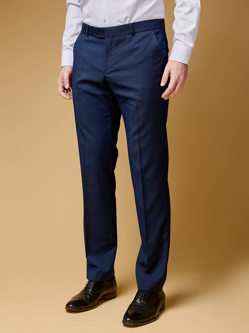 Slim fit (ПРИЛЕГАЮЩИЙ СИЛУЭТ), рекомендуется брать на размер больше. Брюки без защипов, с боковыми наклонными карманами и одним задним карманом «в рамку». Передние половинки на подкладке. Верхний срез брюк обработан поясом с корсажной лентой и шлевками под ремень. Застежка обработана на тесьму-молнию, с петлей-пуговицей на поясе и усилен металлическим крючком.