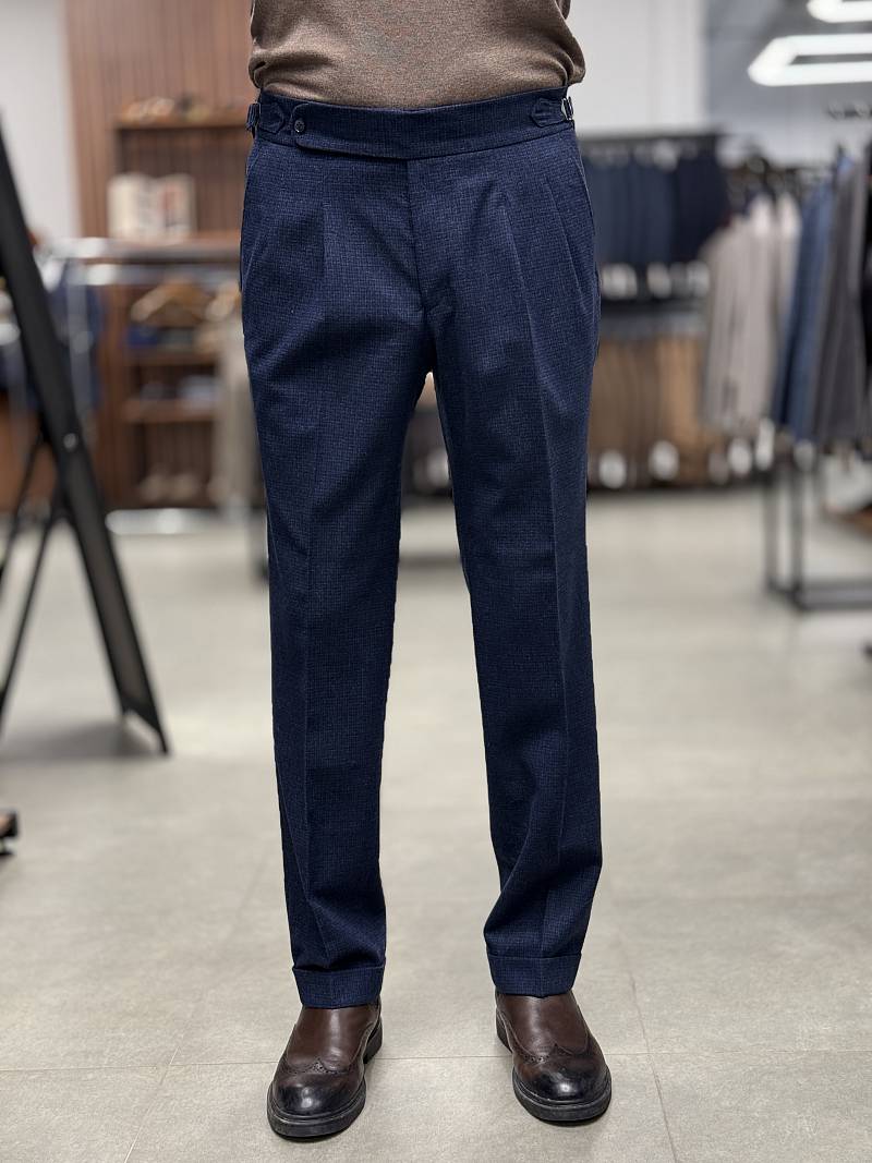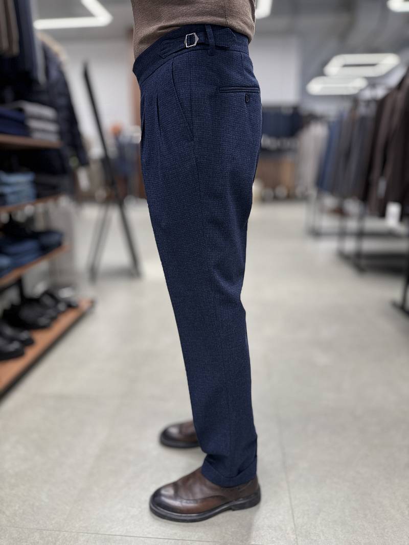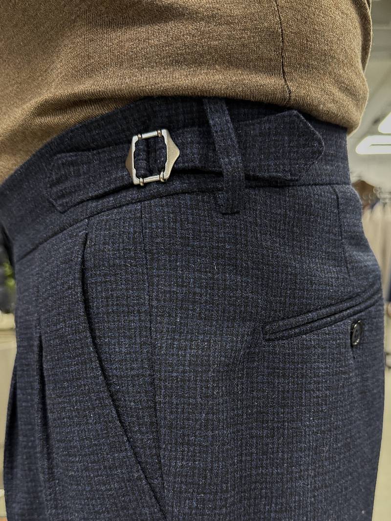 Теплые шерстяные брюки марки BAZIONI на защипах и затяжниками по поясу — это стильная и функциональная модель, идеально подходящая для холодного времени года. Они сочетают в себе элегантность кроя, а комфорт и универсальность достигается за счёт регулируемого пояса. Такие брюки подходят для создания как повседневных, так и более формальных образов, обеспечивая при этом тепло и удобство. Фигурные затяжники позволяют изменять объём талии, что обеспечивает идеальную посадку без необходимости использования ремня и подходят для разных типов фигуры. Брюки прекрасно сочетаются с рубашками, джемперами, пиджаками и даже футболками, что позволяет создавать разнообразные образы и обеспечивают тепло в холодное время года. При правильном выборе фасона и уходе такие брюки станут долговечным и любимым элементом гардероба. Дизайнеры марки BAZIONI тщательно подходят к выбору материалов. Пуговицы подбираются и красятся индивидуально под каждую ткань, а прикладные материалы используют только от передовых производителей.