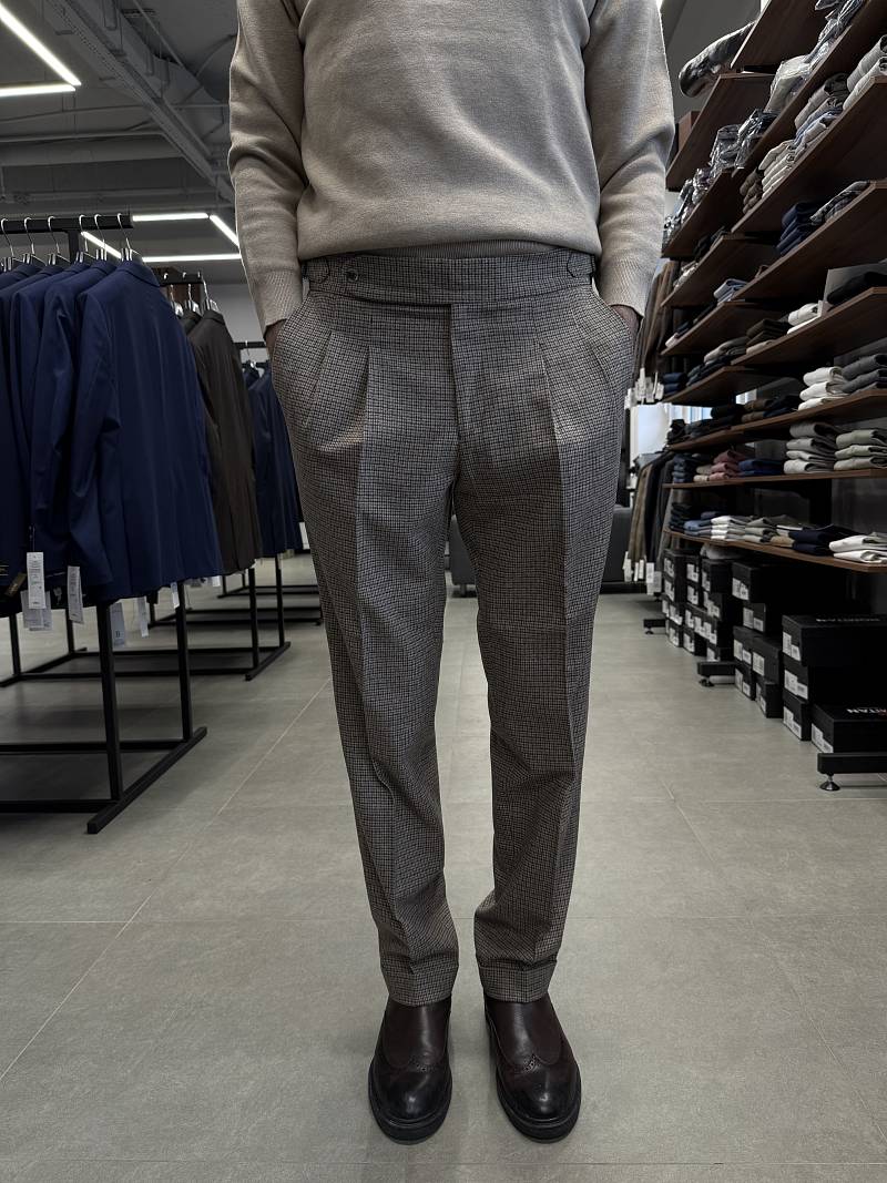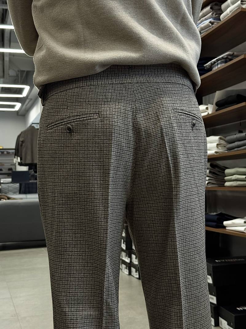 Теплые шерстяные брюки марки BAZIONI на защипах и затяжниками по поясу — это стильная и функциональная модель, идеально подходящая для холодного времени года. Они сочетают в себе элегантность кроя, а комфорт и универсальность достигается за счёт регулируемого пояса. Такие брюки подходят для создания как повседневных, так и более формальных образов, обеспечивая при этом тепло и удобство. Фигурные затяжники позволяют изменять объём талии, что обеспечивает идеальную посадку без необходимости использования ремня и подходят для разных типов фигуры. Брюки прекрасно сочетаются с рубашками, джемперами, пиджаками и даже футболками, что позволяет создавать разнообразные образы и обеспечивают тепло в холодное время года. При правильном выборе фасона и уходе такие брюки станут долговечным и любимым элементом гардероба. Дизайнеры марки BAZIONI тщательно подходят к выбору материалов. Пуговицы подбираются и красятся индивидуально под каждую ткань, а прикладные материалы используют только от передовых производителей.