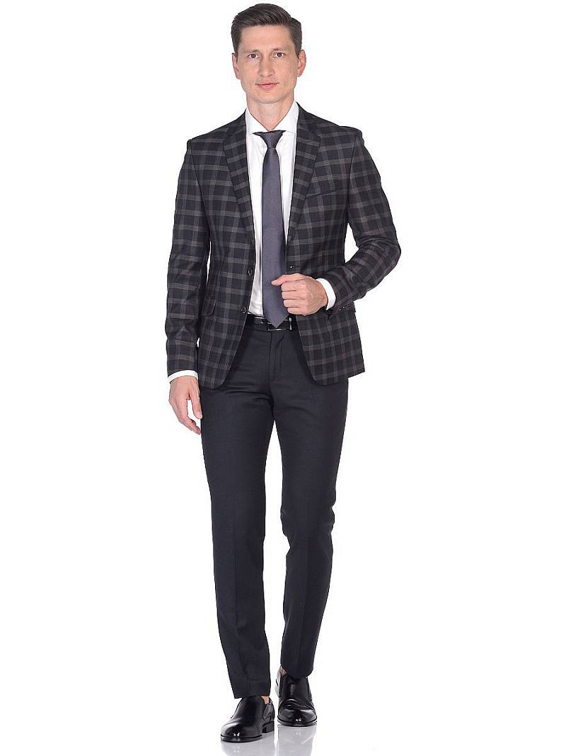 Slim fit, две пуговицы, две шлицы. Брюки из ткани компаньона.