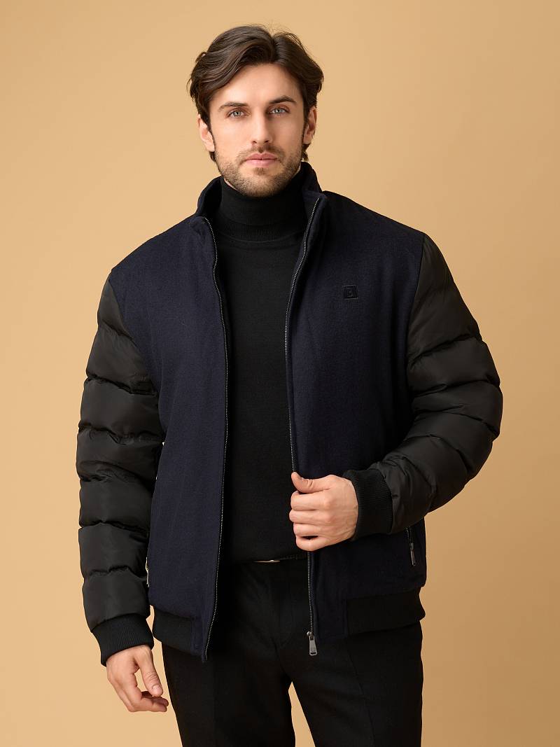 Современная комбинированная куртка-бомбер торговой марки BAZIONI изготовлена в духе стиля smart casual. Она сочетает в себе актуальный силуэт, премиальные материалы и продуманные детали для тепла и комфорта. Куртка сшита из премиальной 100% шерсти, эффективно сохраняющей тепло,создающей благородную, мягкую фактуру и отличающейся легкостью. Комбинированные утепленные рукава, выполненные из стеганой плащевой ткани, гармонируют с основным материалом, придают модели динамичный и современный вид. Центральная застежка на молнию с фирменным брендированным бегунком , Аккуратный воротник-стойка с внутренней отделкой из трикотажа защищает от ветра. Два вместительных вертикальных кармана на молниях c брендированными бегунками добавляют стильности и удобства. Для сохранения тепла и комфорта манжеты на рукавах и низ куртки собраны на широкую резинку с фактурой в рубчик. Для дополнительного тепла используется стеганая подкладка, на которой расположены два кармана на молниях. Внутри куртки выполнена отделка из контрас
