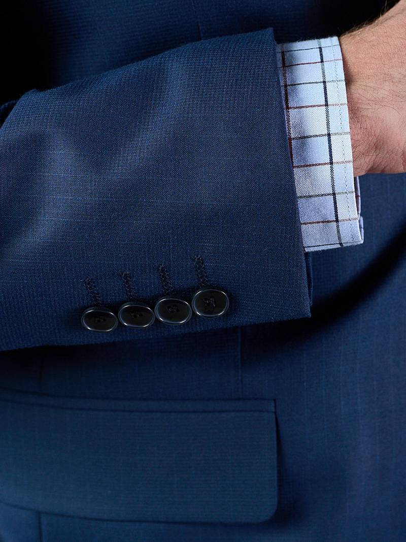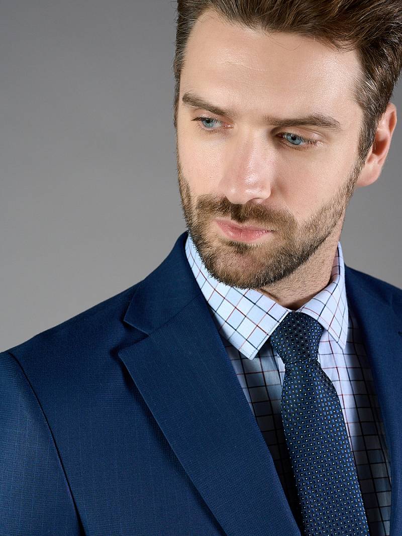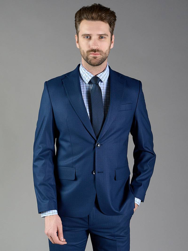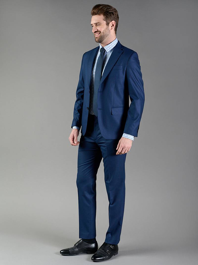 Классический костюм двойка Classic fit. Пиджак на две пуговицы, с боковыми и нагрудным карманами, по спинке две шлицы. Брюки без защипов с боковыми и двумя задними карманами.