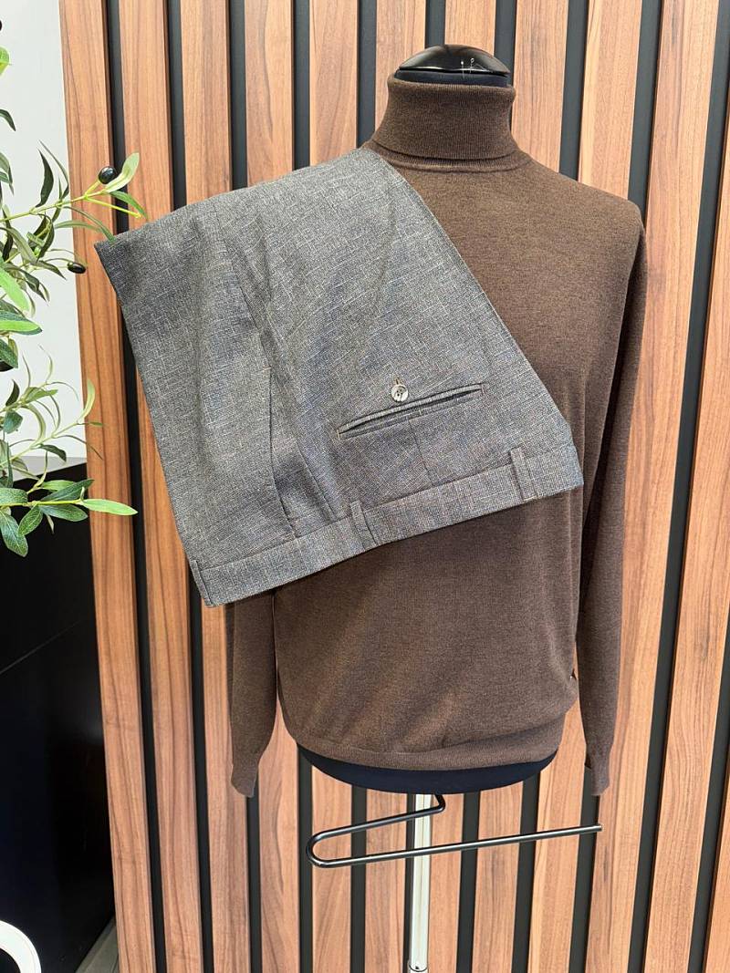 Мужские классические брюки со стрелками благодаря лаконичному прямому крою без защипов с классической посадкой одинаково гармонично дополнит строгий офисный образ с пиджаком и менее формальный с джемпером или рубашкой. Брюки с боковыми наклонными карманами и двумя задними карманами в рамку". Верхний срез брюк обработан поясом с корсажной лентой и шлевками под ремень. Дизайнеры марки LACONI тщательно подходят к выбору материалов. Пуговицы подбираются и красятся индивидуально под каждую ткань, а прикладные материалы используют только от передовых производителей.