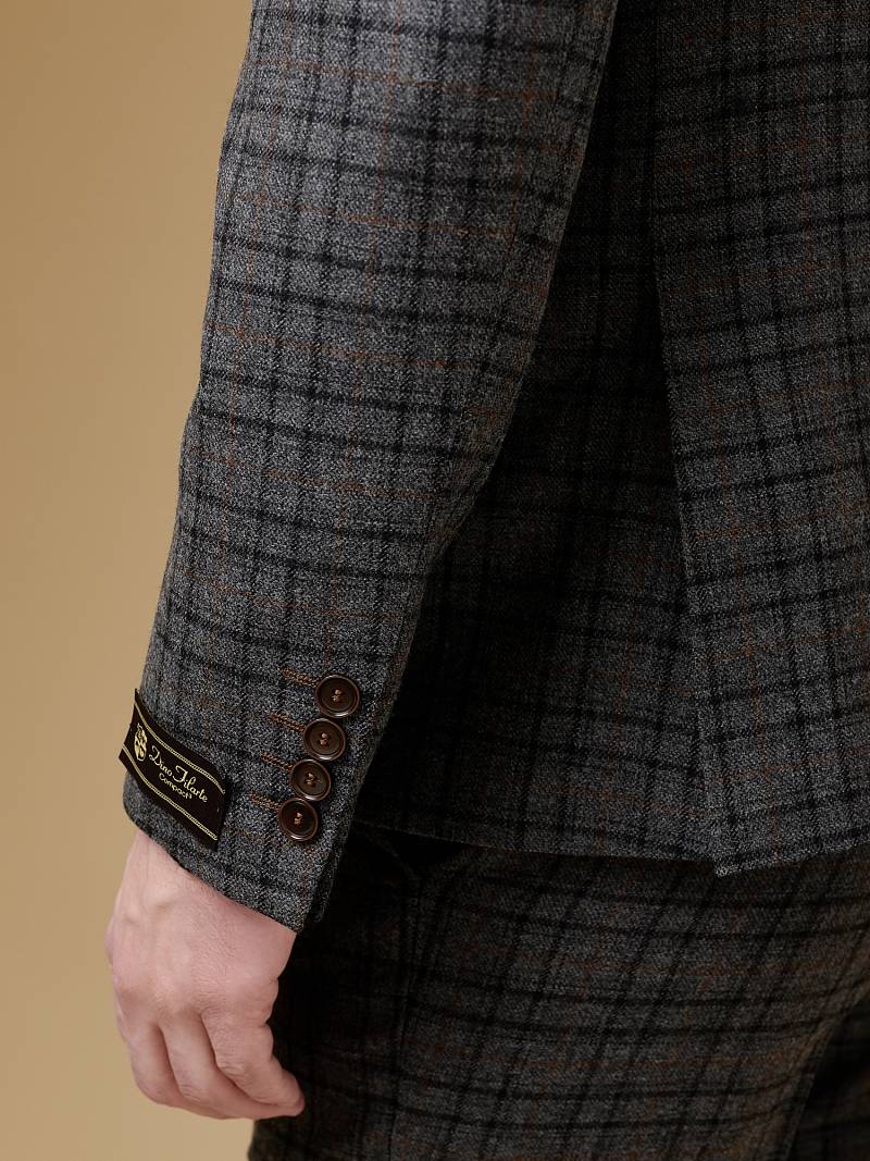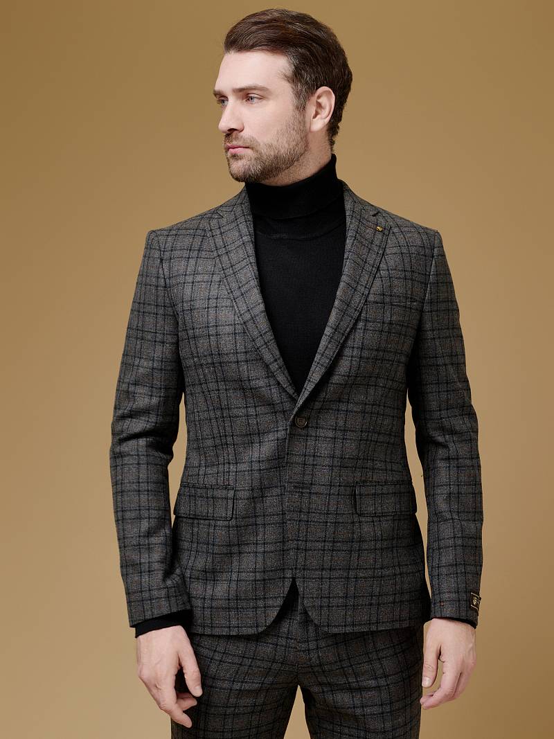 Классический костюм двойка Slim fit (ПРИЛЕГАЮЩИЙ СИЛУЭТ), рекомендуется брать на размер больше.Пиджак однобортный на две пуговицы, с двумя боковыми карманами с клапанами и нагрудной листочкой. Рукава втачные, двухшовные со шлицей и четырьмя декоративными пуговицами. По спинке расположены две шлицы. Пиджак на подкладке, с двумя внутренними карманами. Брюки без защипов, с боковыми наклонными карманами и двумя задними карманами «в рамку». Передние половинки на подкладке. Верхний срез брюк обработан поясом с корсажной лентой и шлевками под ремень. Застежка обработана на тесьму-молнию, с петлей-пуговицей на поясе и усилен металлическим крючком.