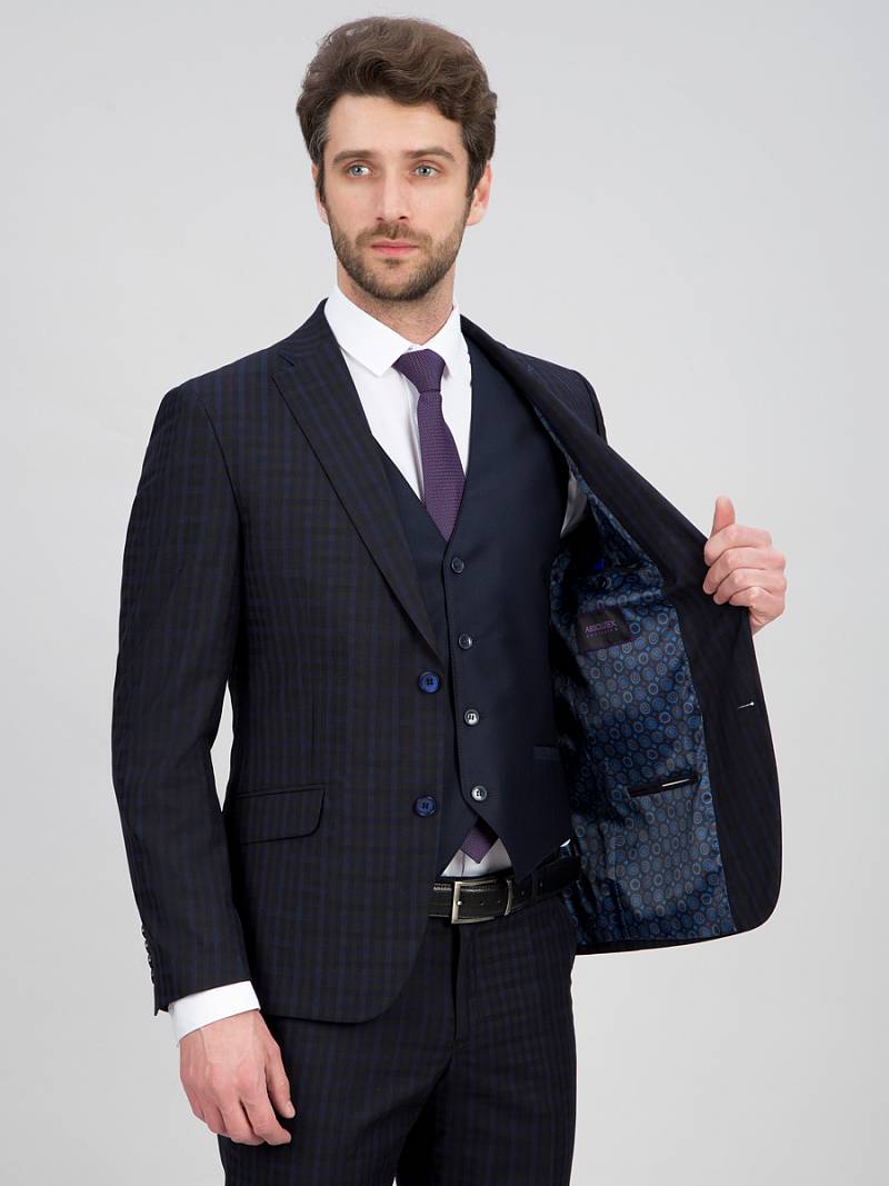 Slim fit, две пуговицы, две шлицы. Контрастные петли.