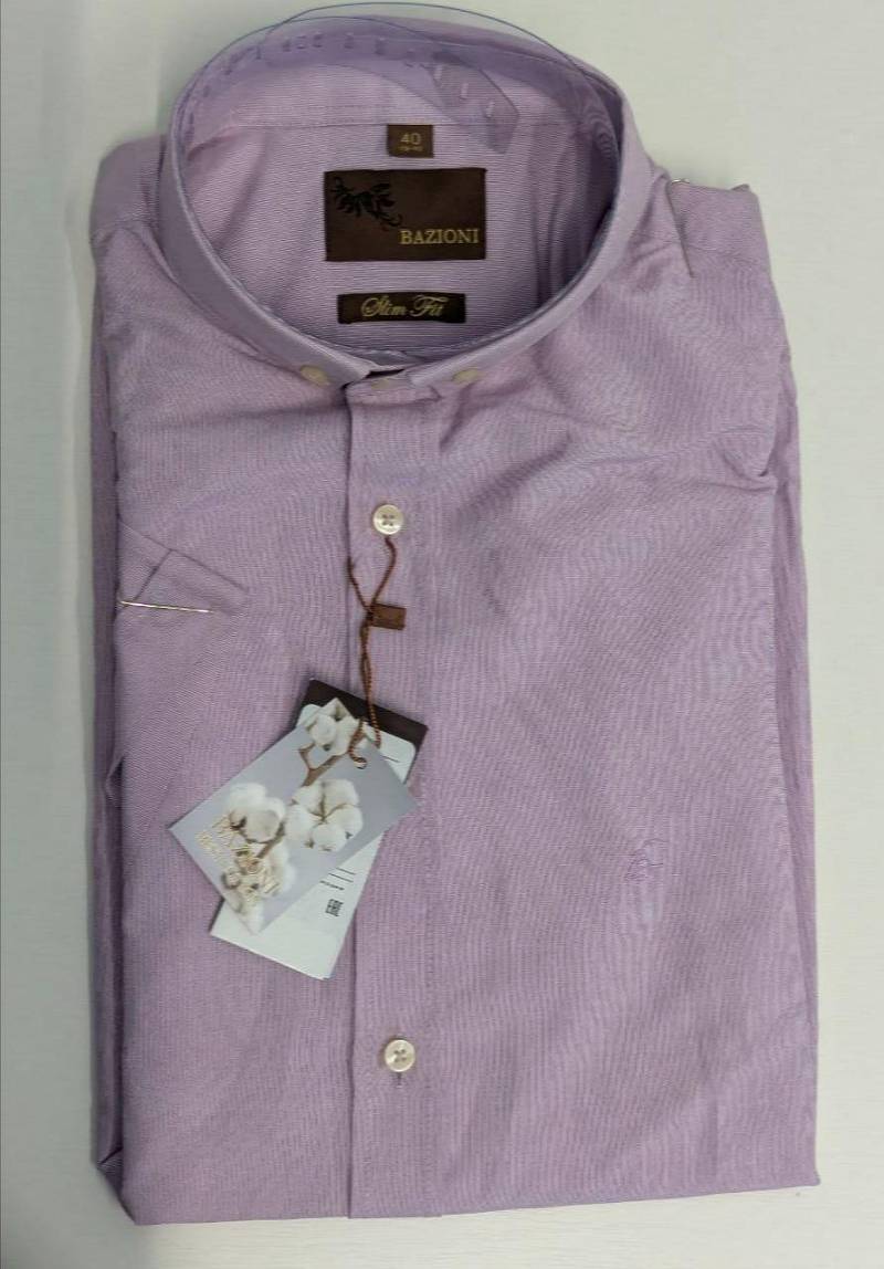 Slim fit, Воротник- узкий на пуговицах, Короткий рукав. По борту и низу манжета- ложная планка. На выпуск.