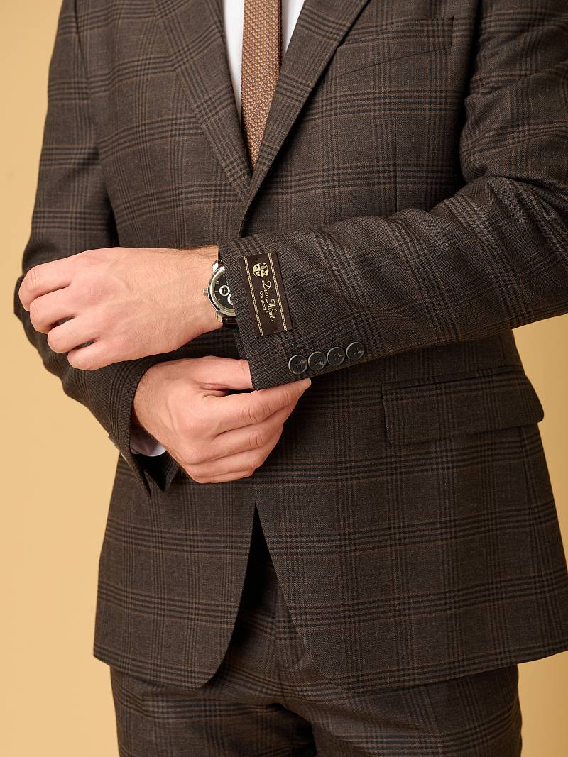 Классический костюм двойка марки BAZIONI– это идеальное сочетание стиля и комфорта для мужчин, которые ценят качественный пошив и изысканный дизайн. Для пошива шерстяного клетчатого костюма использовали премиальную шерсть высокого качества. Пиджак с классической шириной лацкана и мягкой линией плеч дополнили сзади двумя шлицами, модель садится точно по фигуре и прекрасно впишется в офисный образ. Обработан пиджак шелковой подкладкой с двумя внутренними карманами. Брюки прямого кроя со стрелками и заниженной посадкой, с боковыми наклонными карманами и двумя задними карманами "в рамку". Верхний срез брюк обработан поясом с корсажной лентой и шлевками под ремень. Дизайнеры марки BAZIONI тщательно подходят к выбору материалов. Пуговицы подбираются и красятся индивидуально под каждую ткань, а прикладные материалы используют только от передовых производителей. Костюм мужской, классический, повседневный, молодежный, casual, для работы в офисе, модный, для мужа, сына, брата, на праздник