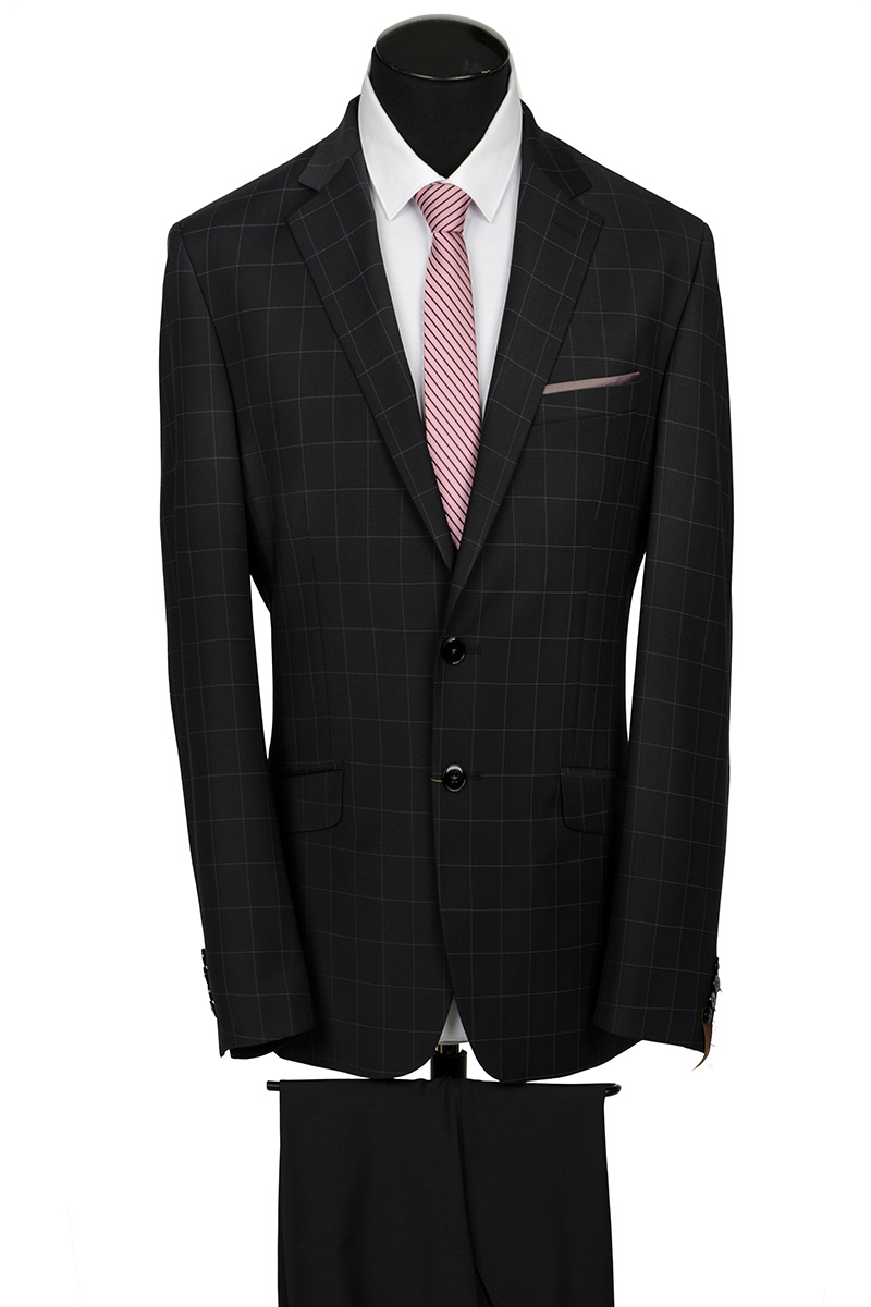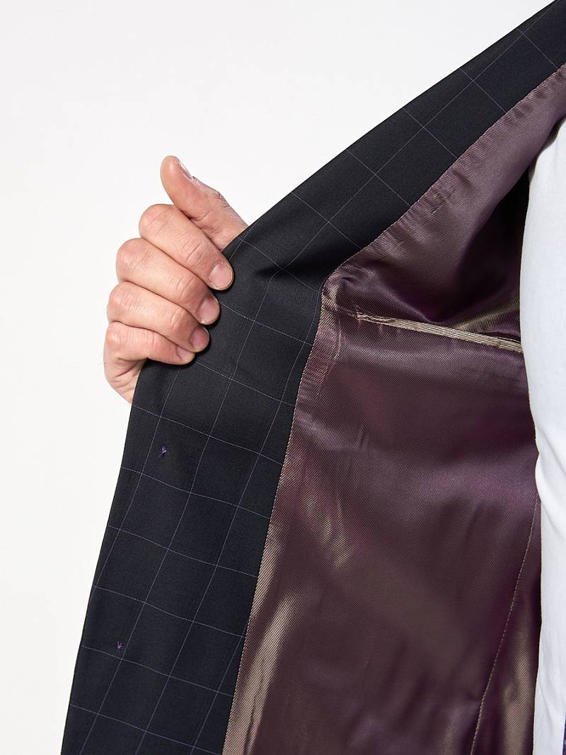 Классический костюм двойка Classic fit. Пиджак на две пуговицы, с боковыми и нагрудным карманами, по спинке две шлицы, в нагрудном кармане расположен декоративный платок. Брюки без защипов с боковыми и одним задним карманом выполнен  из ткани компаньoна.