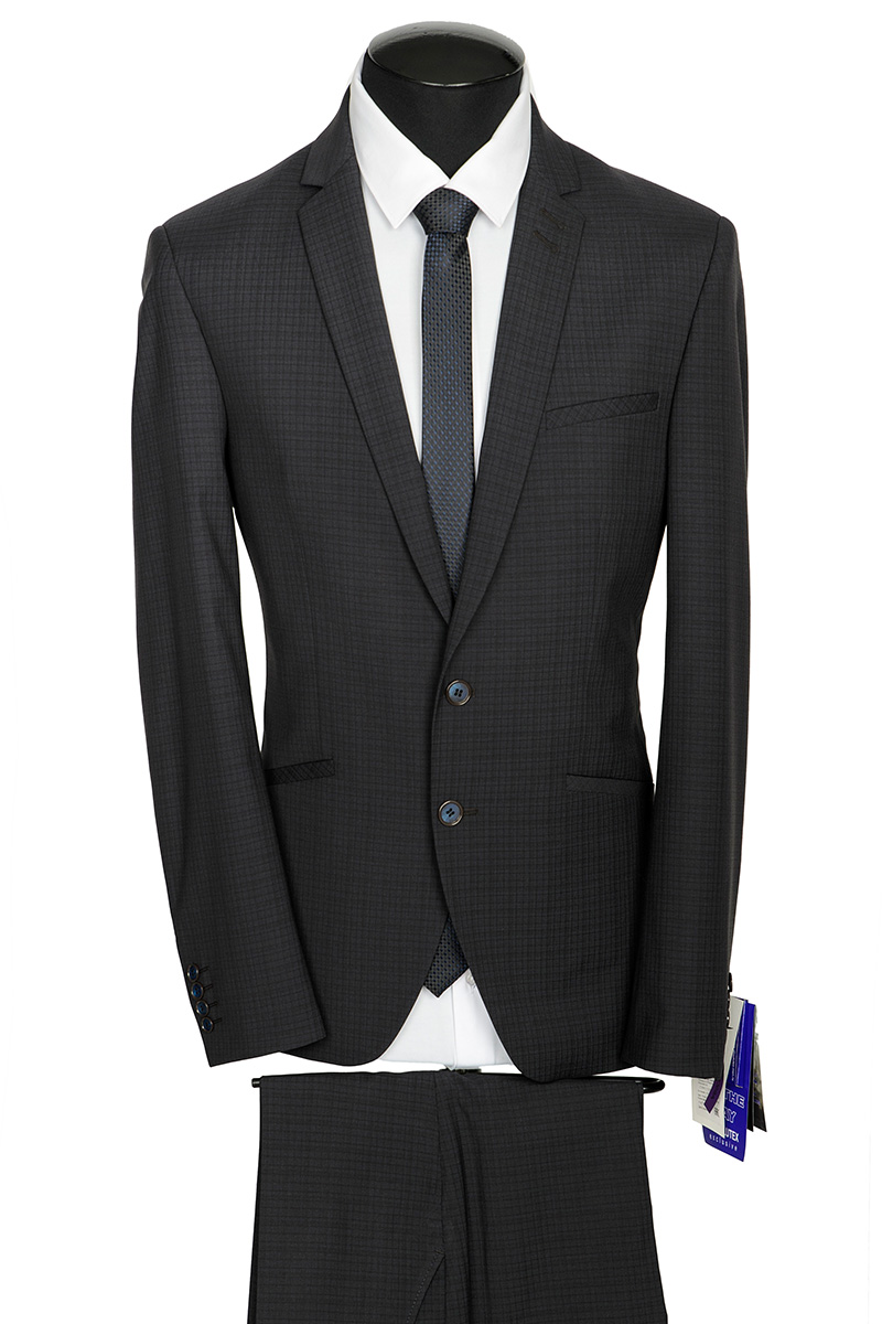 Классический костюм двойка Ultra slim fit. Пиджак на две пуговицы, с боковыми и нагрудным карманами, по спинке две шлицы. Брюки без защипов с боковыми и двумя задними карманами.