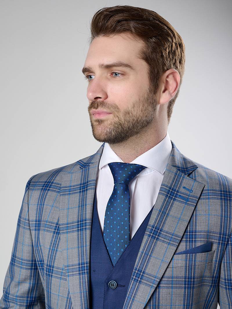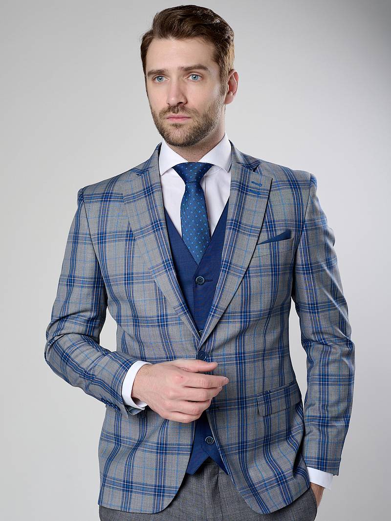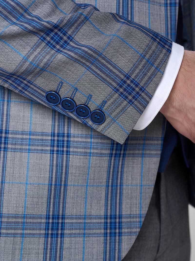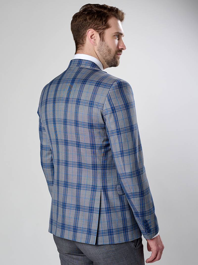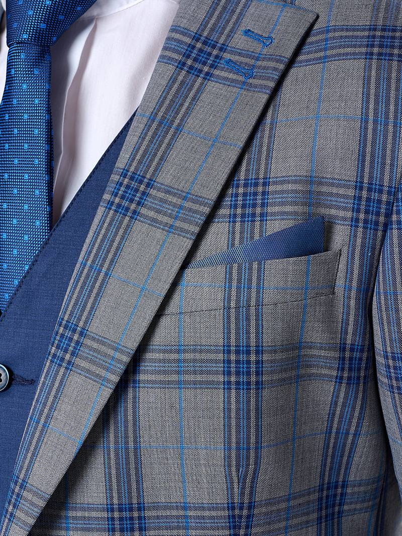 Классический костюм двойка Slim fit. Пиджак на две пуговицы, с боковыми и нагрудным карманами, по спинке две шлицы. Брюки без защипов с боковыми и двумя задними карманами, выполнены из ткани компаньона.