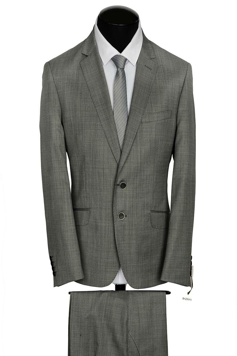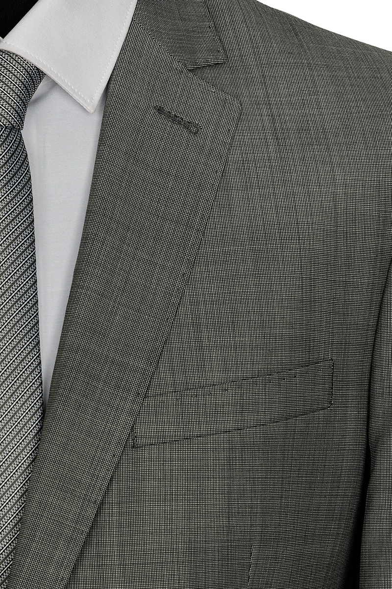 Классический костюм двойка Slim fit. Пиджак на две пуговицы, с боковыми и нагрудным карманами, по спинке две шлицы. Вспушка по воротнику, лацканам, краю борта, клапанам и нагудной листочке. Брюки без защипов с боковыми и одним задним карманом.