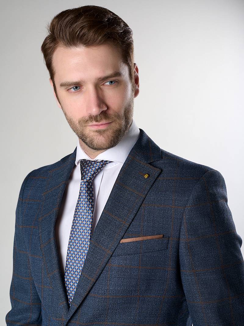 Классический костюм двойка Classic fit (ПОЛУПРИЛЕГАЮЩИЙ СИЛУЭТ). Пиджак на две пуговицы, с боковыми и нагрудным карманами, по спинке две шлицы. Брюки без защипов с боковыми и одним задним карманом