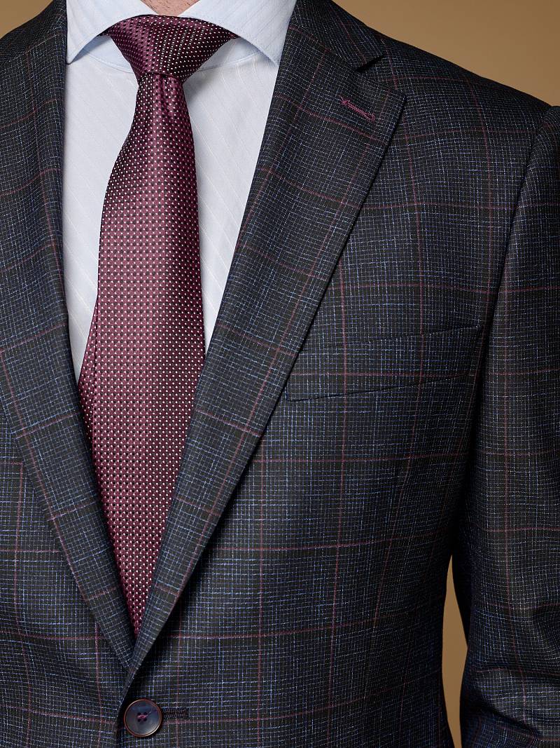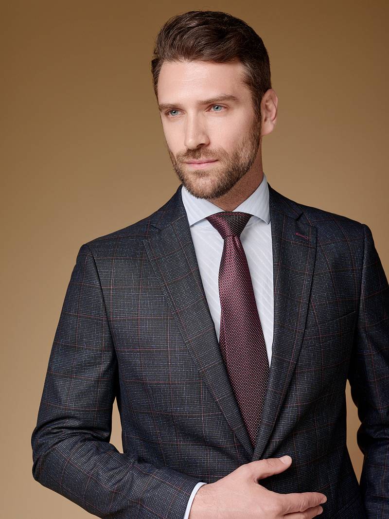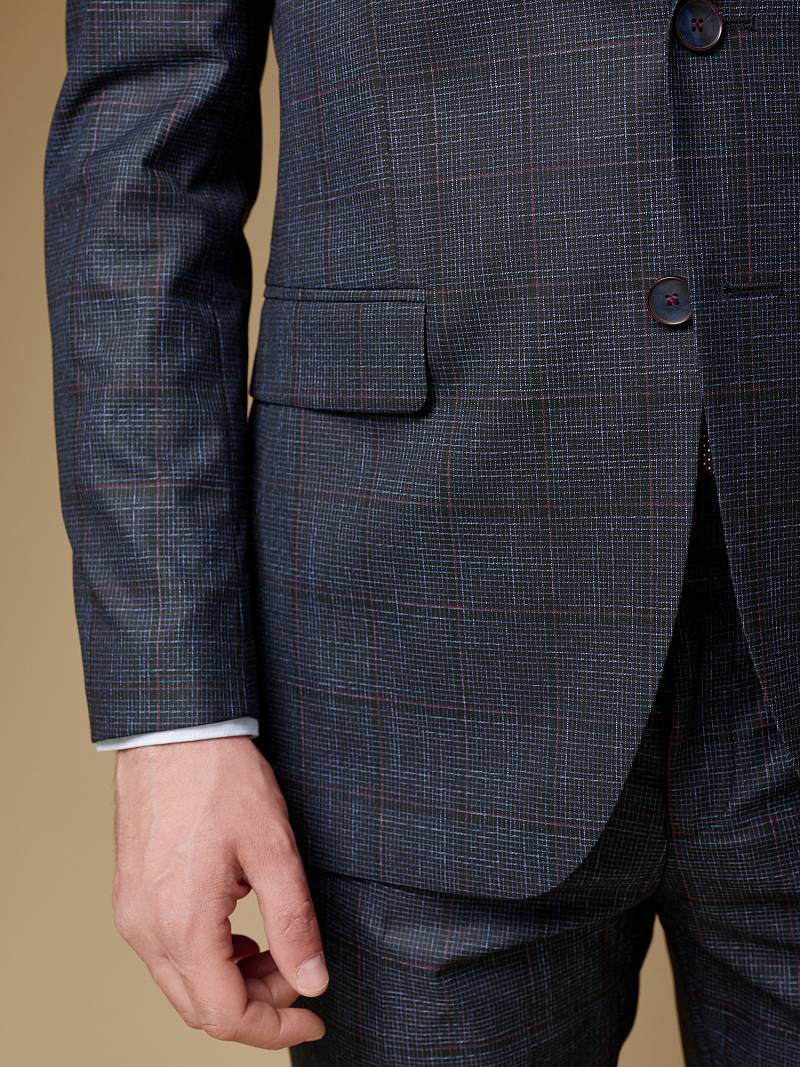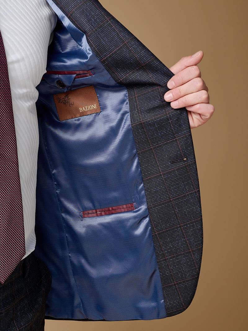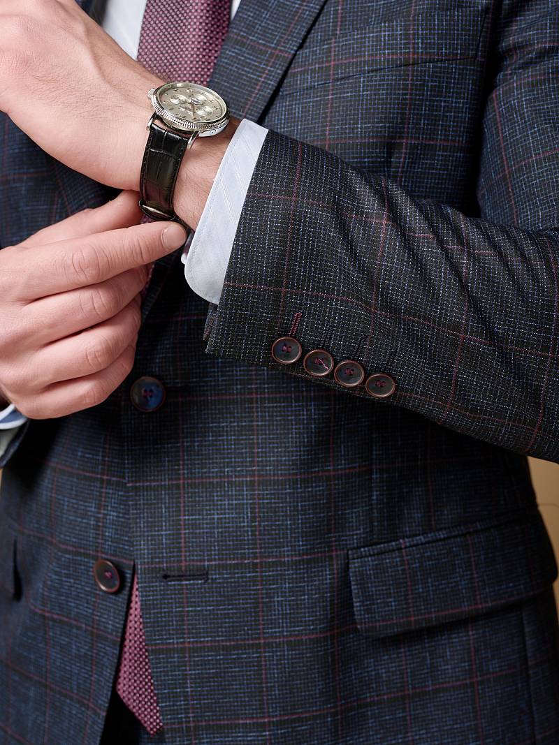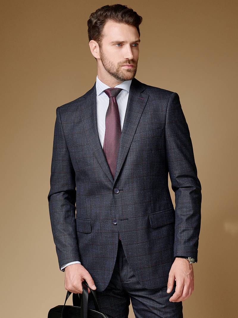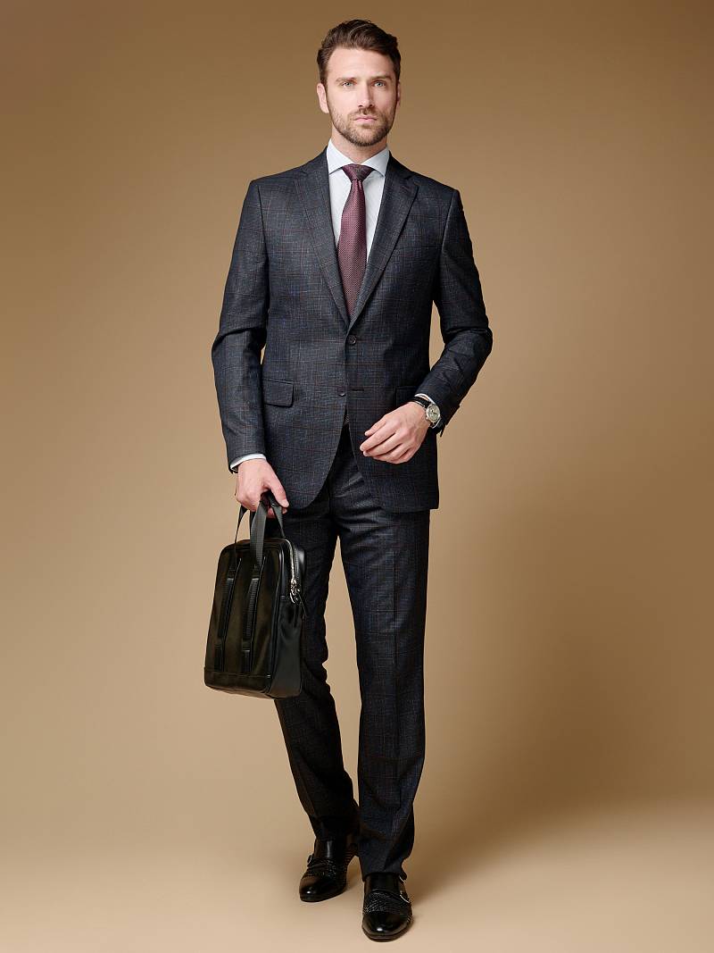 Классический костюм двойка Slim fit (ПРИЛЕГАЮЩИЙ СИЛУЭТ), рекомендуется брать на размер больше.Пиджак однобортный на две пуговицы, с двумя боковыми карманами с клапанами и нагрудной листочкой. Рукава втачные, двухшовные со шлицей и четырьмя декоративными пуговицами. По спинке расположены две шлицы. Пиджак на подкладке, с двумя внутренними карманами. Брюки без защипов, с боковыми наклонными карманами и двумя задними карманами «в рамку». Передние половинки на подкладке. Верхний срез брюк обработан поясом с корсажной лентой и шлевками под ремень. Застежка обработана на тесьму-молнию, с петлей-пуговицей на поясе и усилен металлическим крючком.