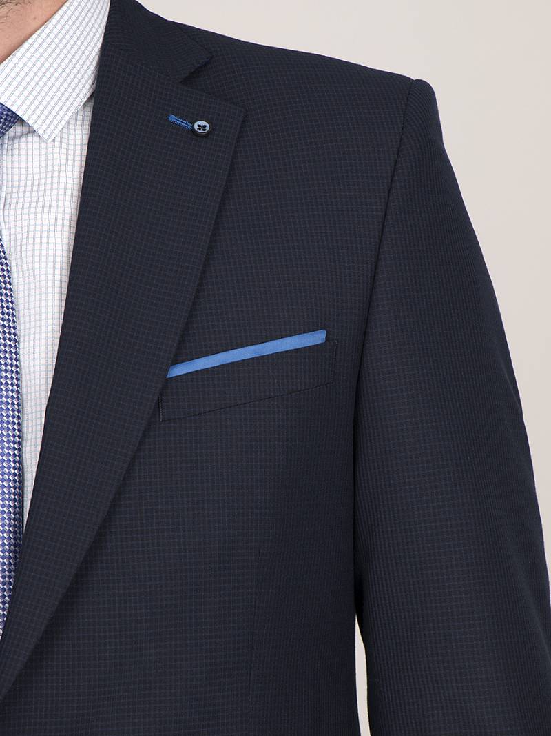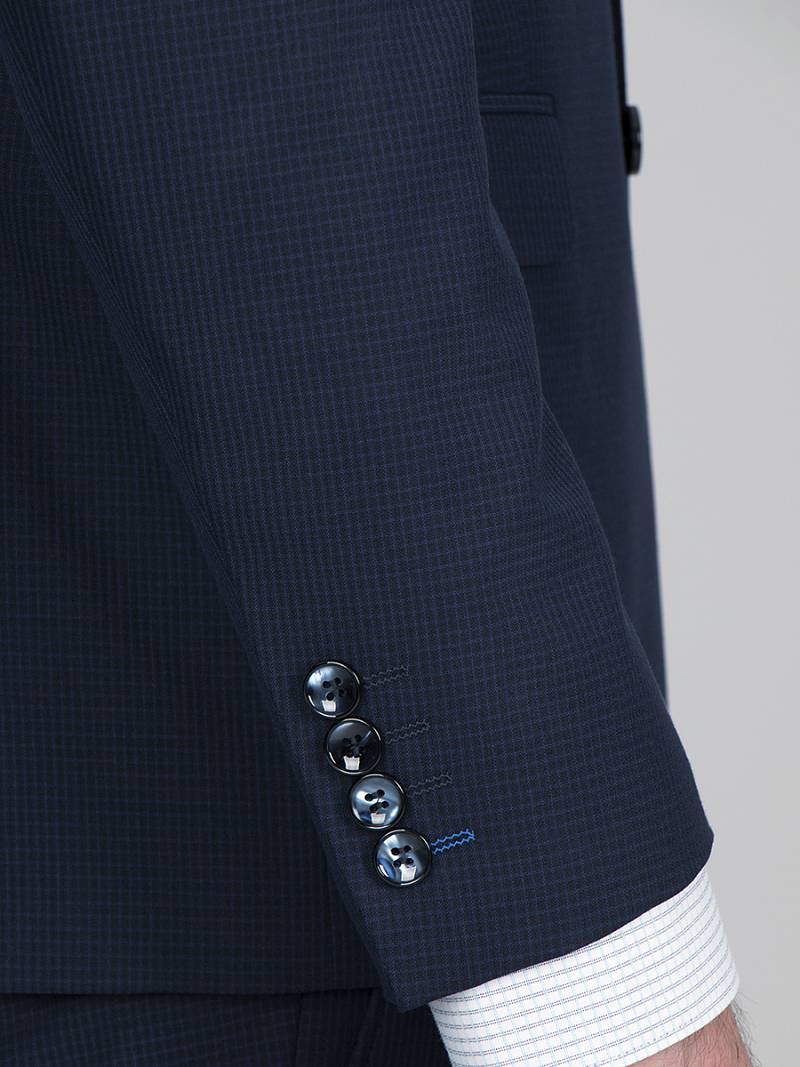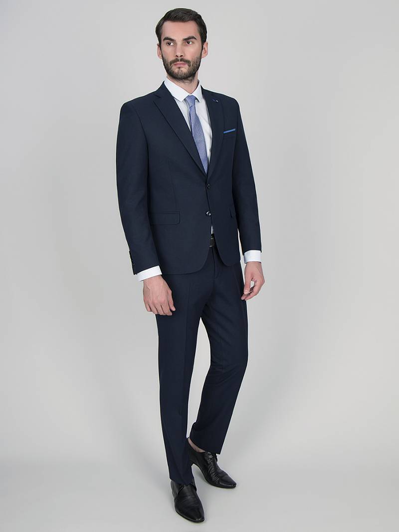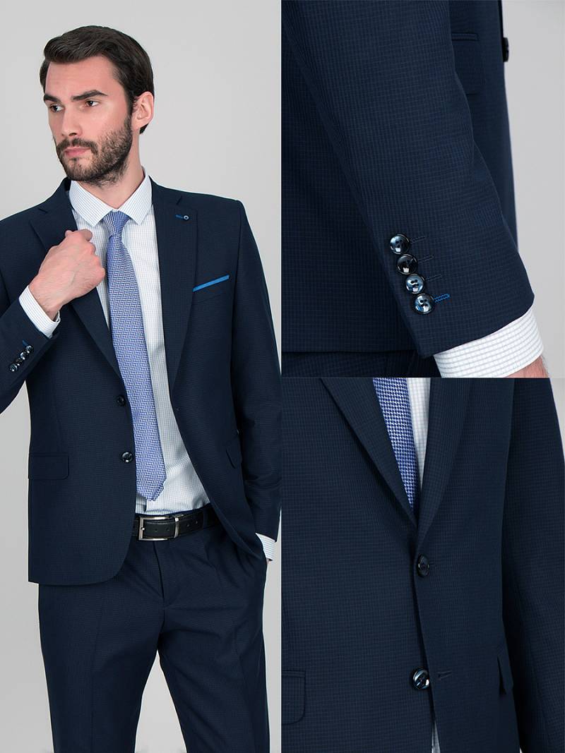 Slim fit, две пуговицы, две шлицы. Контрастные петли.