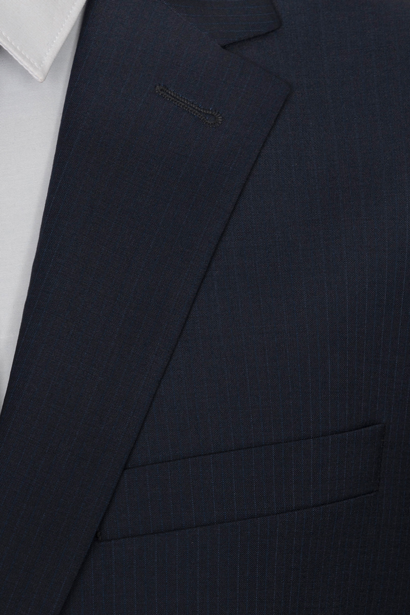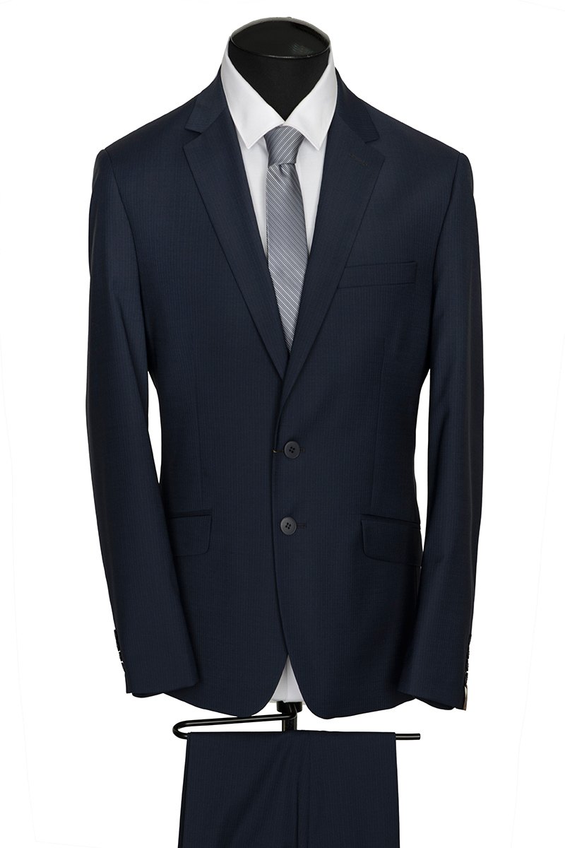 Классический костюм двойка Slim fit. Пиджак на две пуговицы, с боковыми и нагрудным карманами, по спинке две шлицы. Брюки без защипов в боковыми и одним задним карманом.