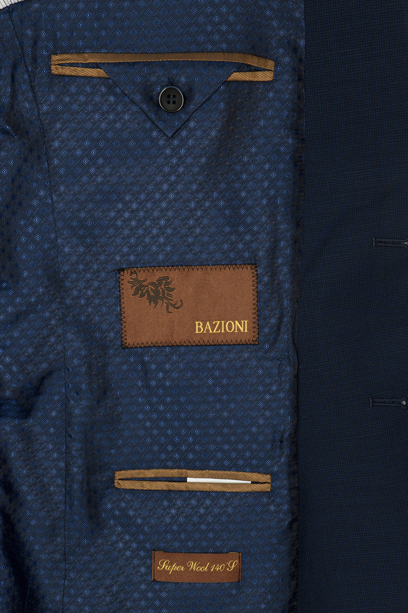 Classic fit, две пуговицы, две шлицы. Две фасонные петли на лацкане. BAZIONI.