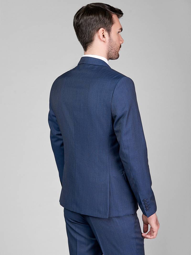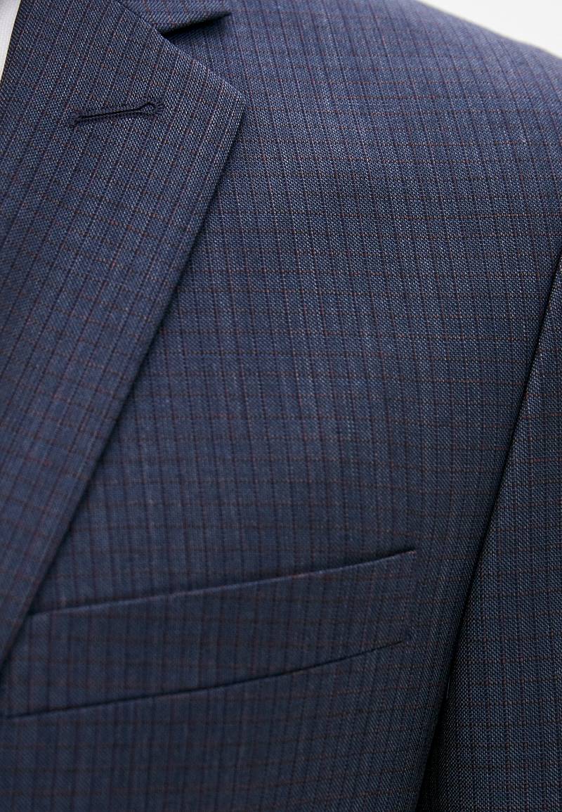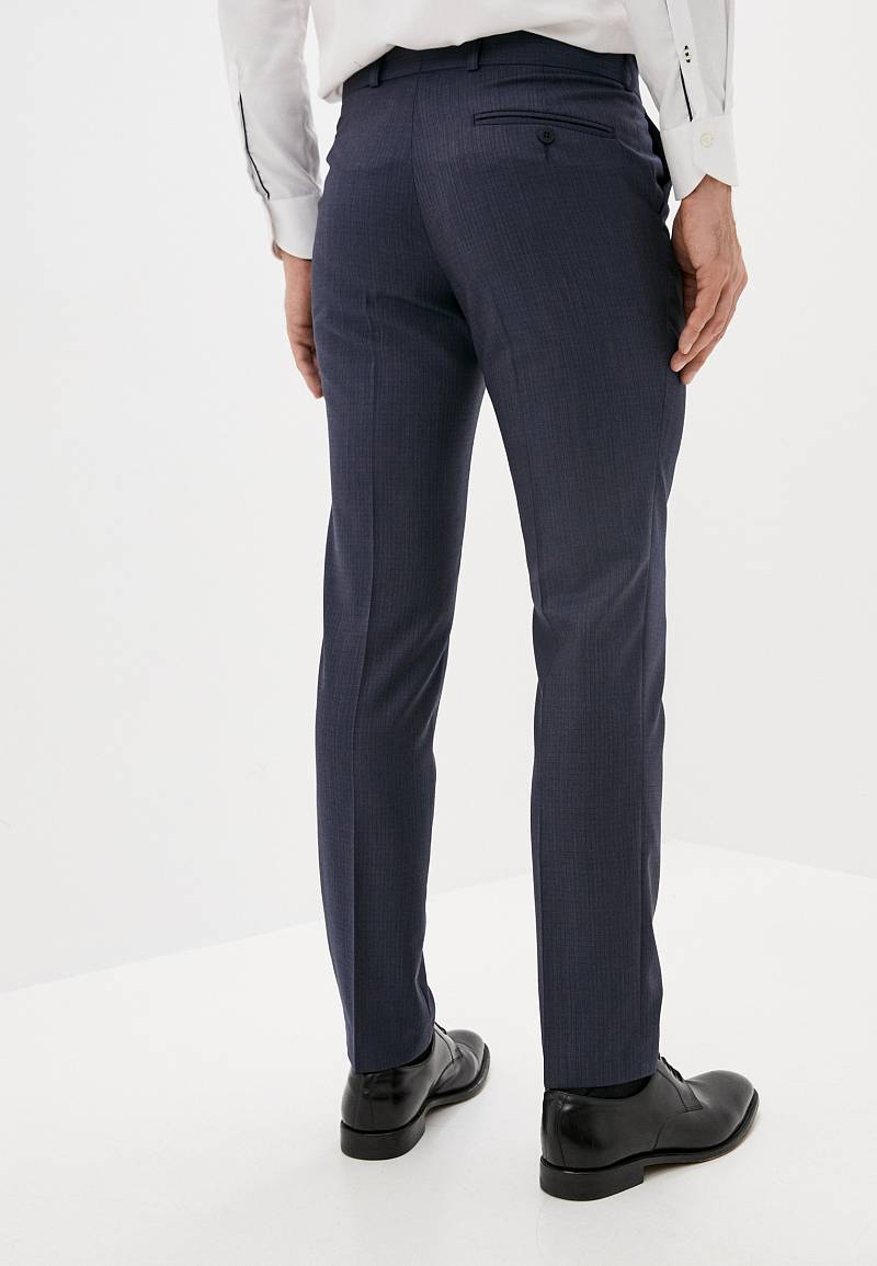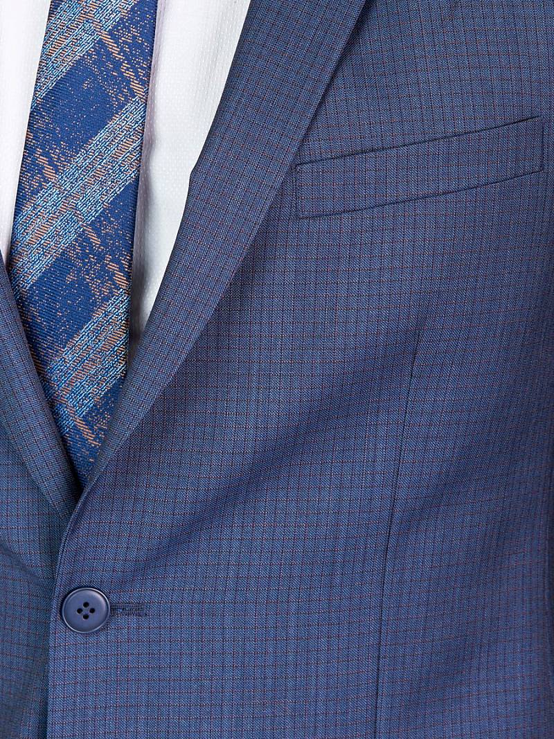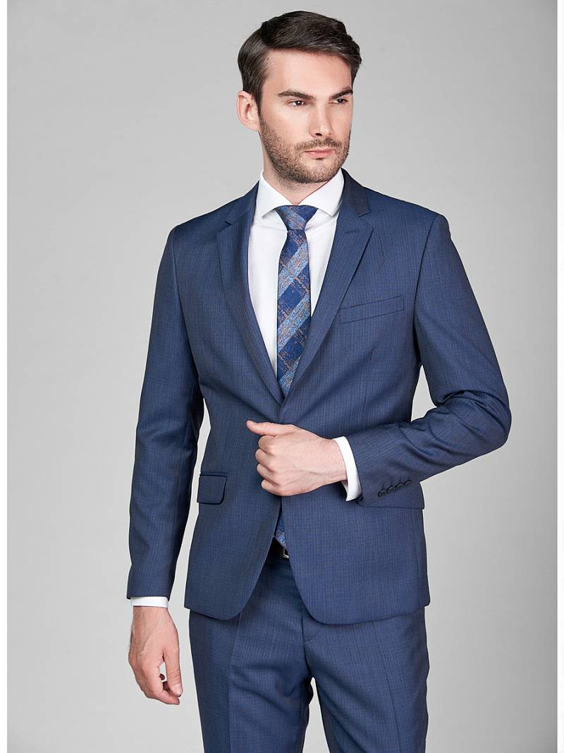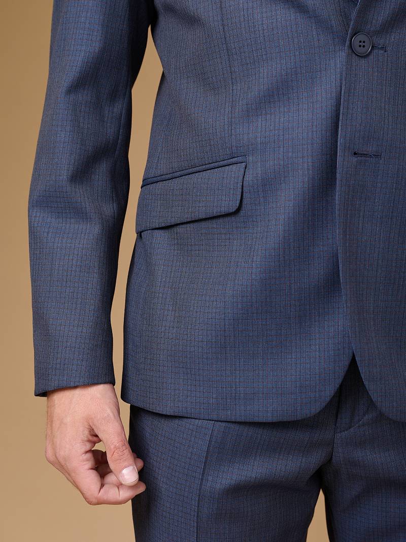 Классический костюм двойка Slim fit. Пиджак на две пуговицы, с боковыми и нагрудным карманами, по спинке две шлицы. Брюки без защипов с боковыми и одним задним карманом.