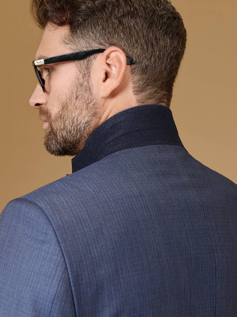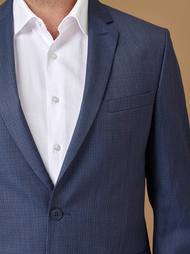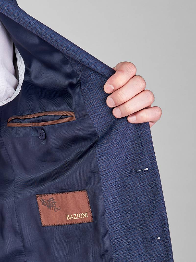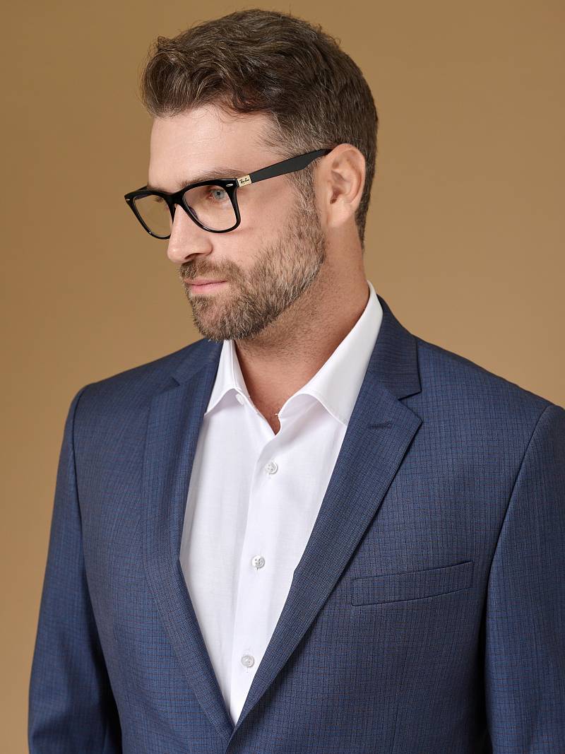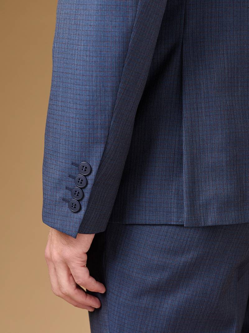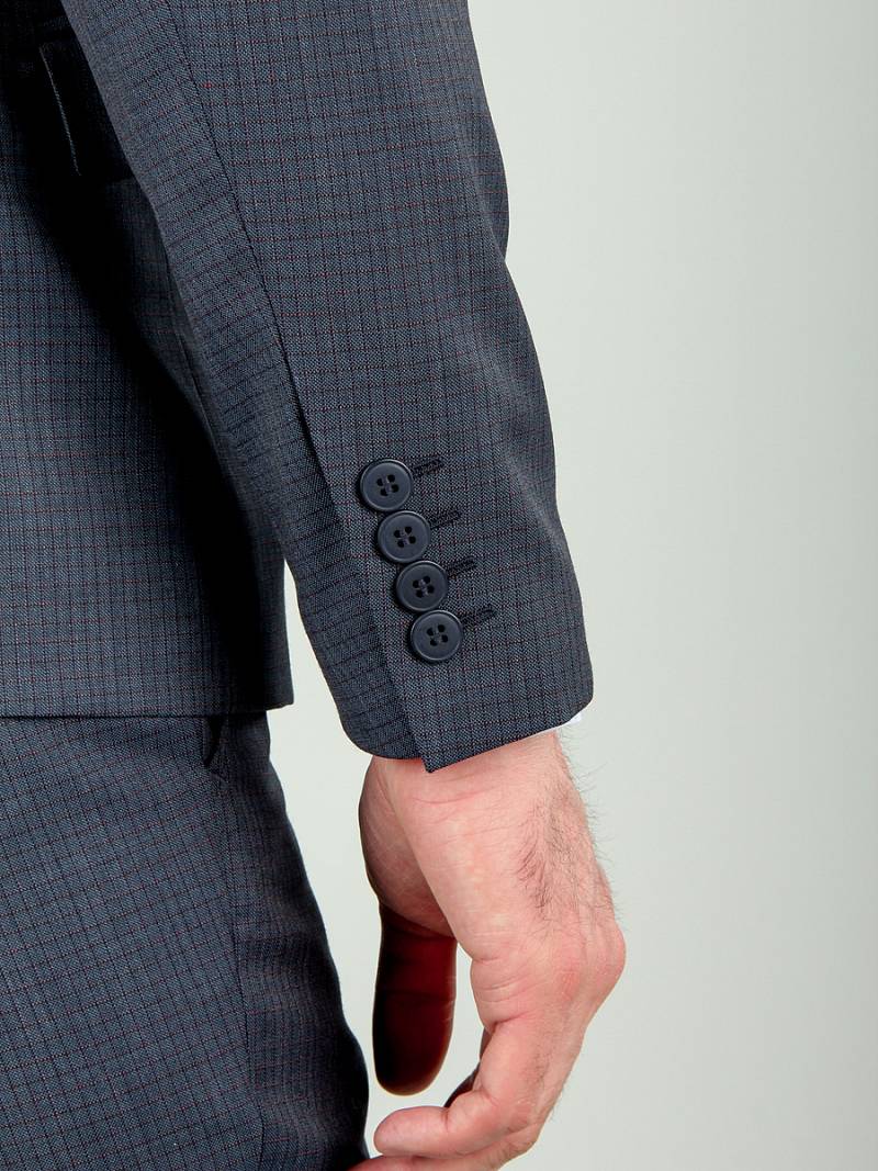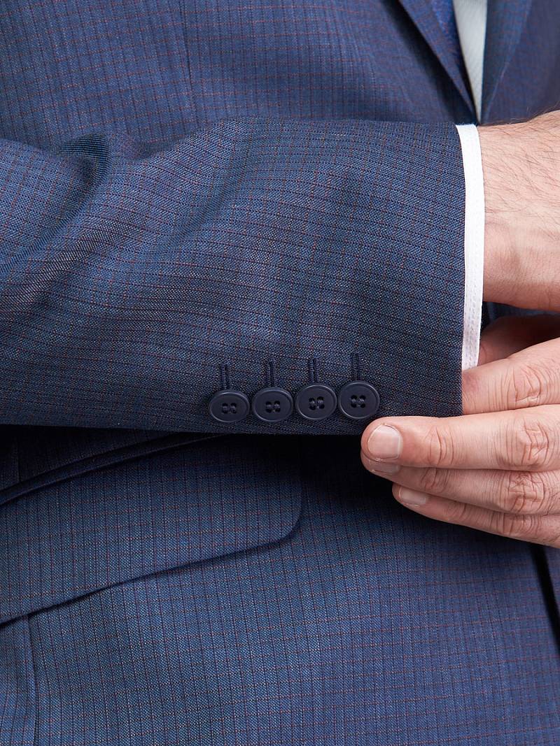 Классический костюм двойка Slim fit. Пиджак на две пуговицы, с боковыми и нагрудным карманами, по спинке две шлицы. Брюки без защипов с боковыми и одним задним карманом.