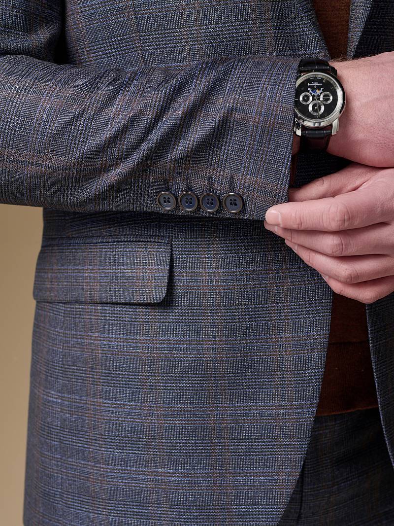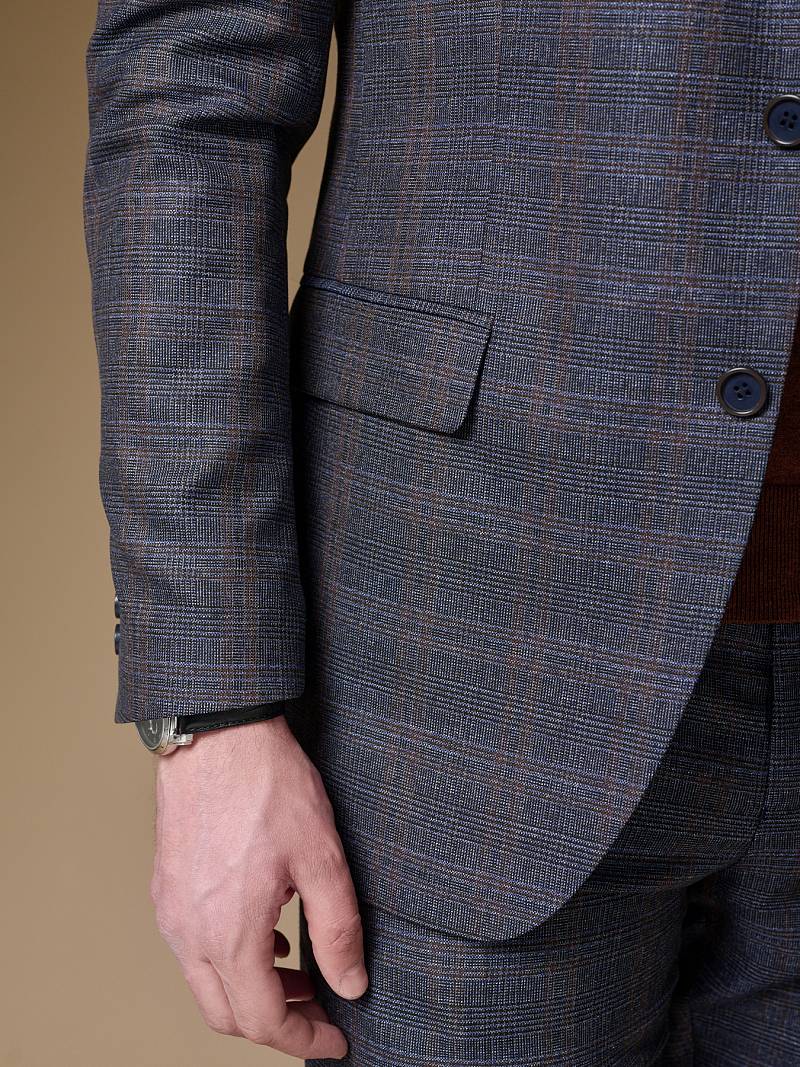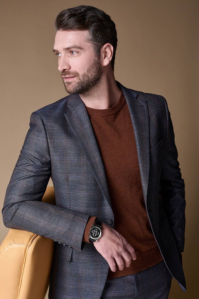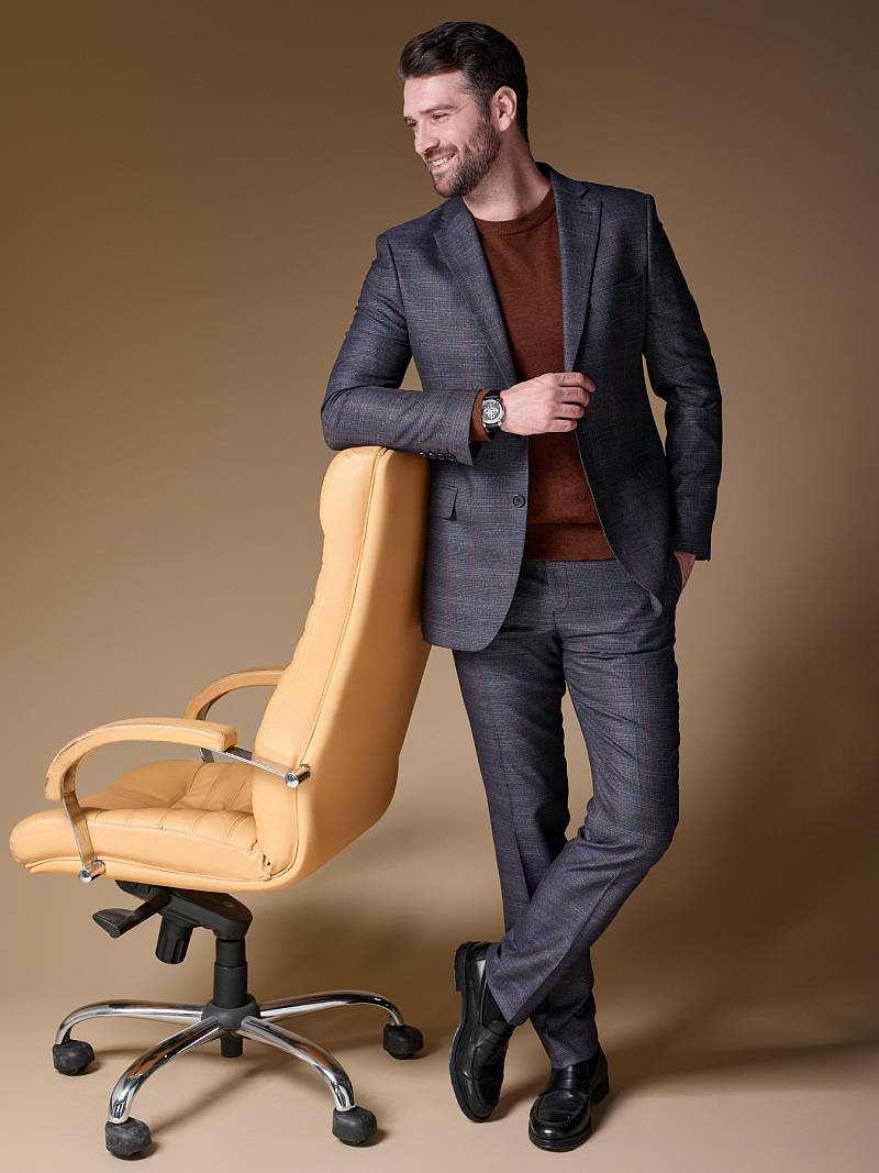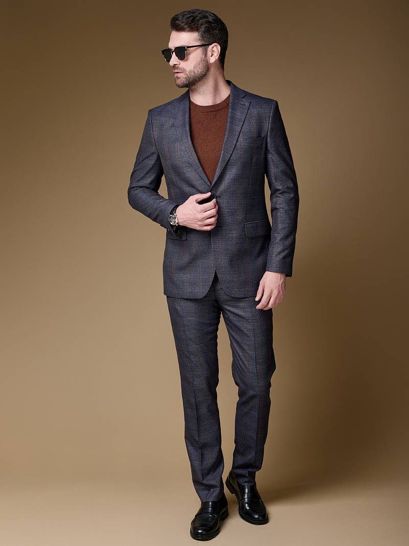 Классический костюм двойка Slim fit (ПРИЛЕГАЮЩИЙ СИЛУЭТ), рекомендуется брать на размер больше.Пиджак однобортный на две пуговицы, с двумя боковыми карманами с клапанами и нагрудной листочкой. Рукава втачные, двухшовные со шлицей и четырьмя декоративными пуговицами. По спинке расположены две шлицы. Пиджак на подкладке, с двумя внутренними карманами. Брюки без защипов, с боковыми наклонными карманами и двумя задними карманами «в рамку». Передние половинки на подкладке. Верхний срез брюк обработан поясом с корсажной лентой и шлевками под ремень. Застежка обработана на тесьму-молнию, с петлей-пуговицей на поясе и усилен металлическим крючком.