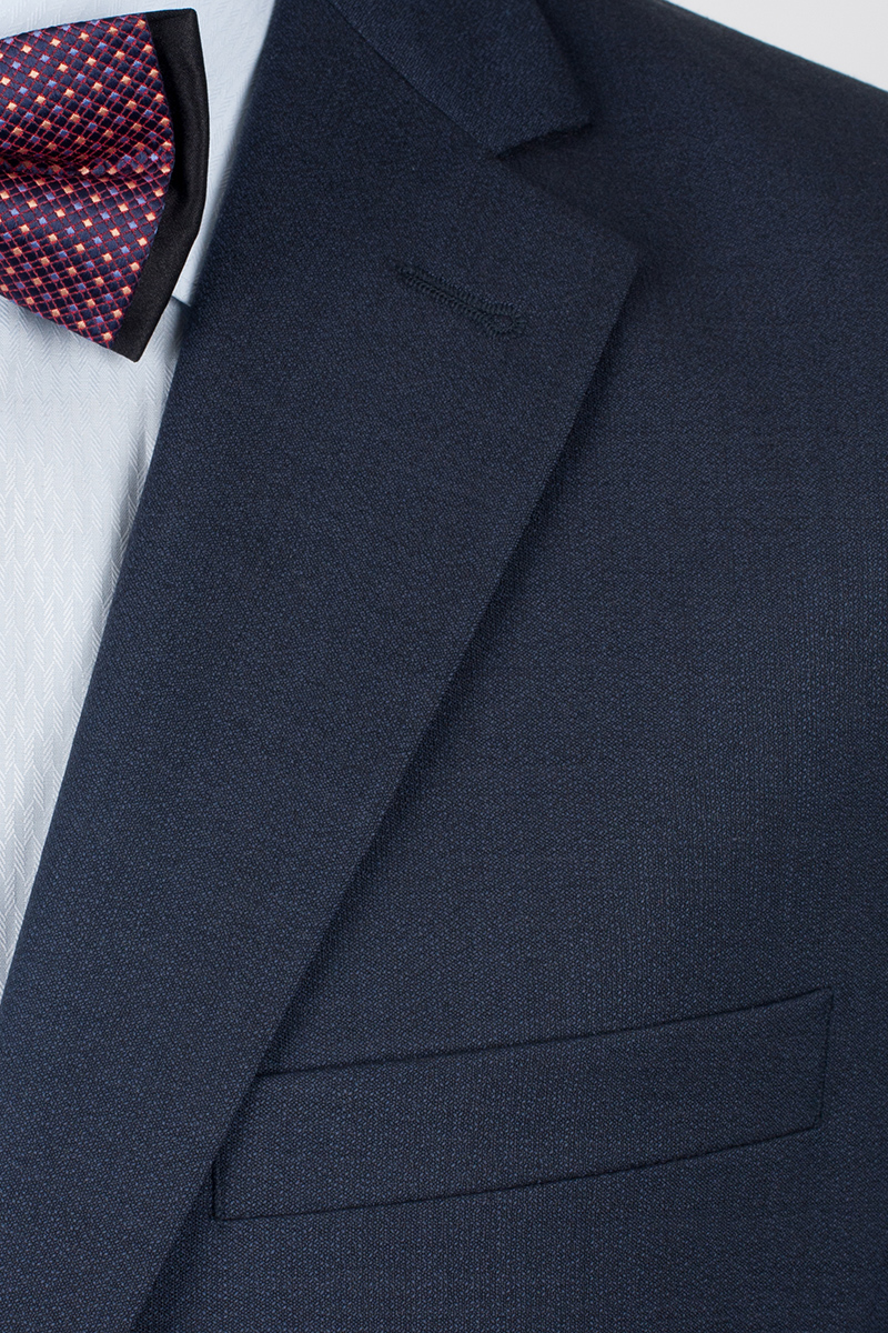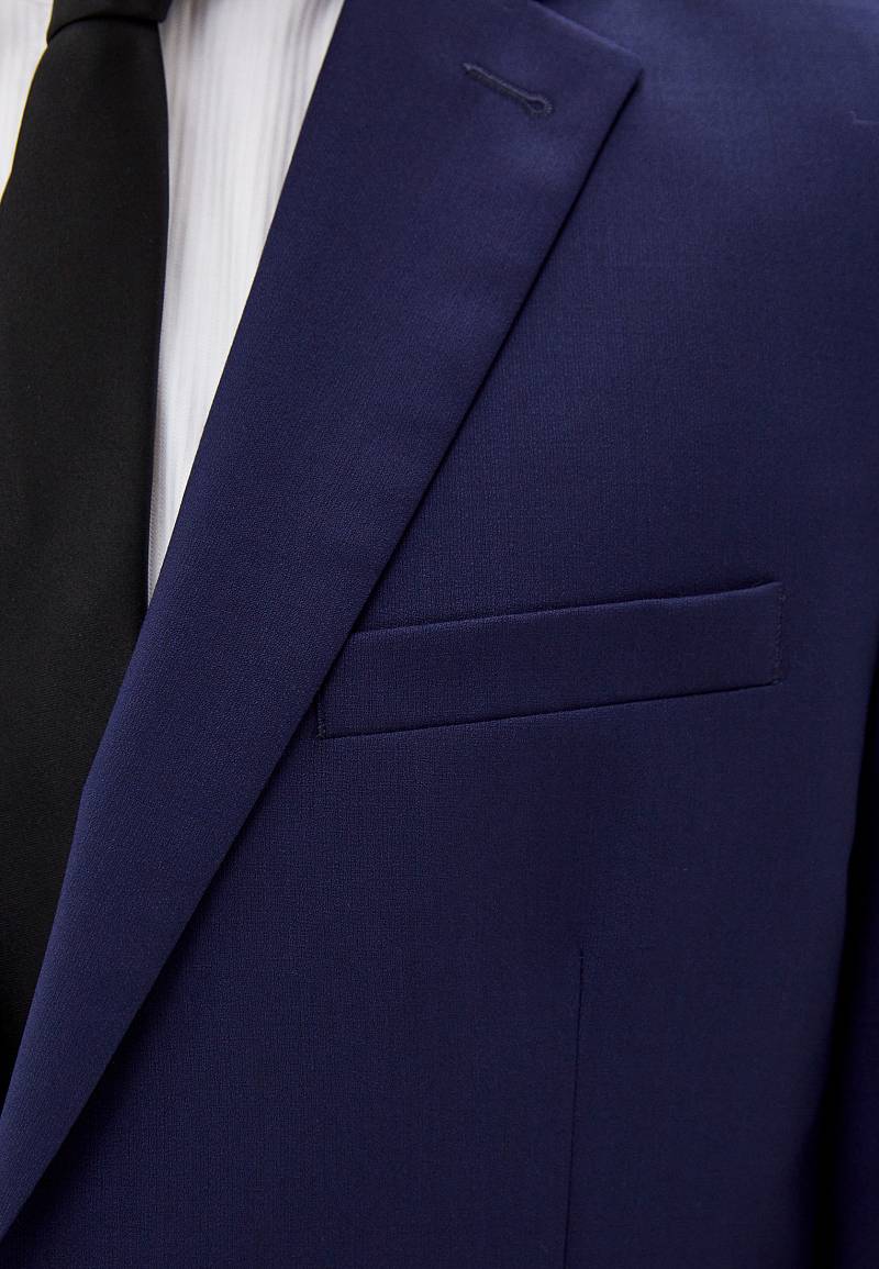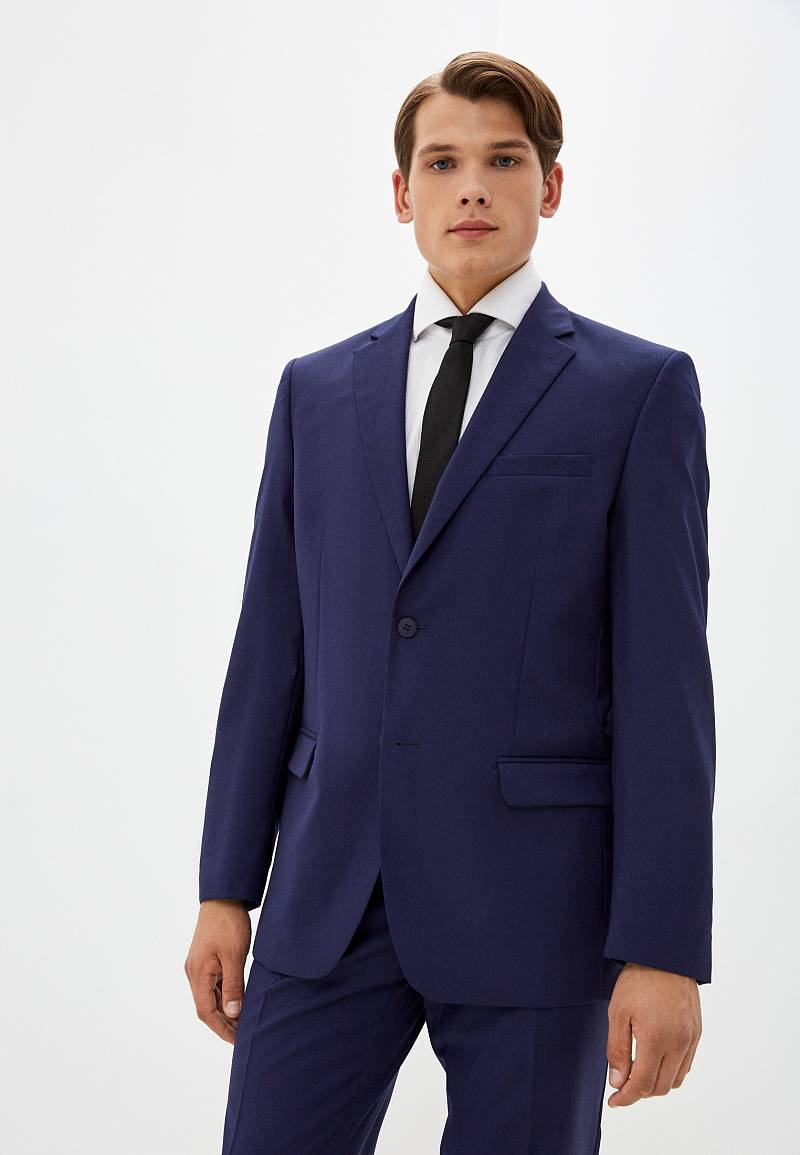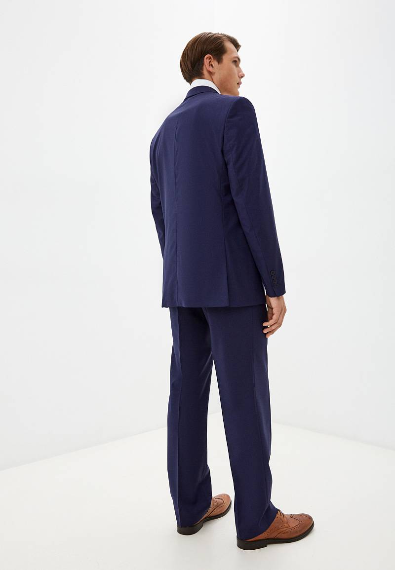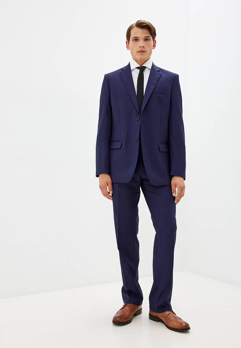 Классический костюм двойка Classic fit. Пиджак на две пуговицы, с боковыми и нагрудным карманами, по спинке две шлицы. Брюки без защипов с боковыми и одним задним карманом.