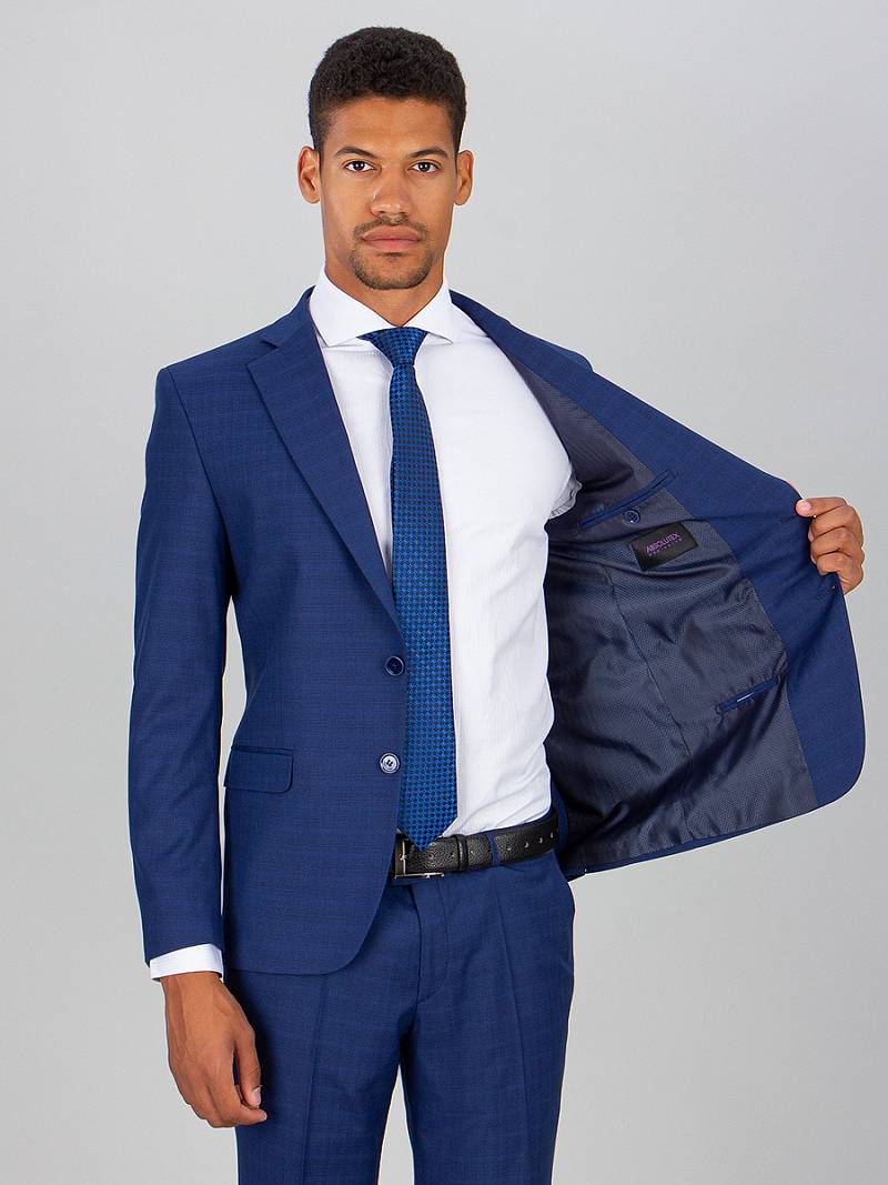 Ultra Slim fit, две пуговицы, две шлицы, нагрудный платок.