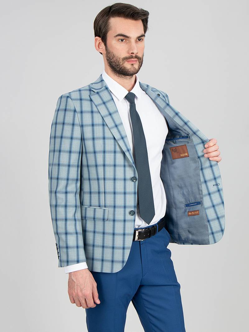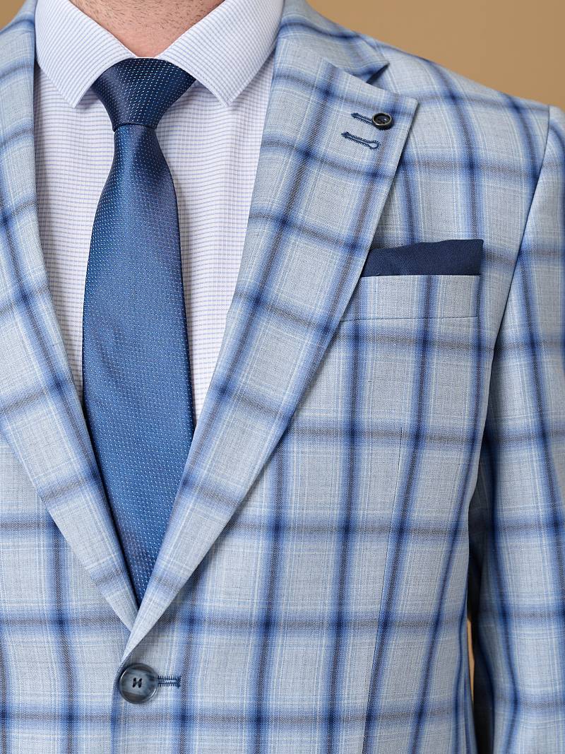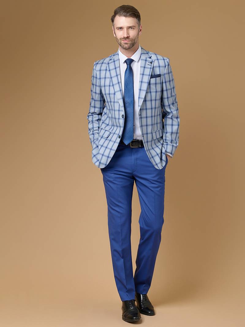 Классический костюм двойка Classic fit. Пиджак на две пуговицы, с боковыми и нагрудным карманами, по спинке две шлицы. Брюки без защипов с боковыми и двумя задними карманами, выполнены из ткани компаньона.