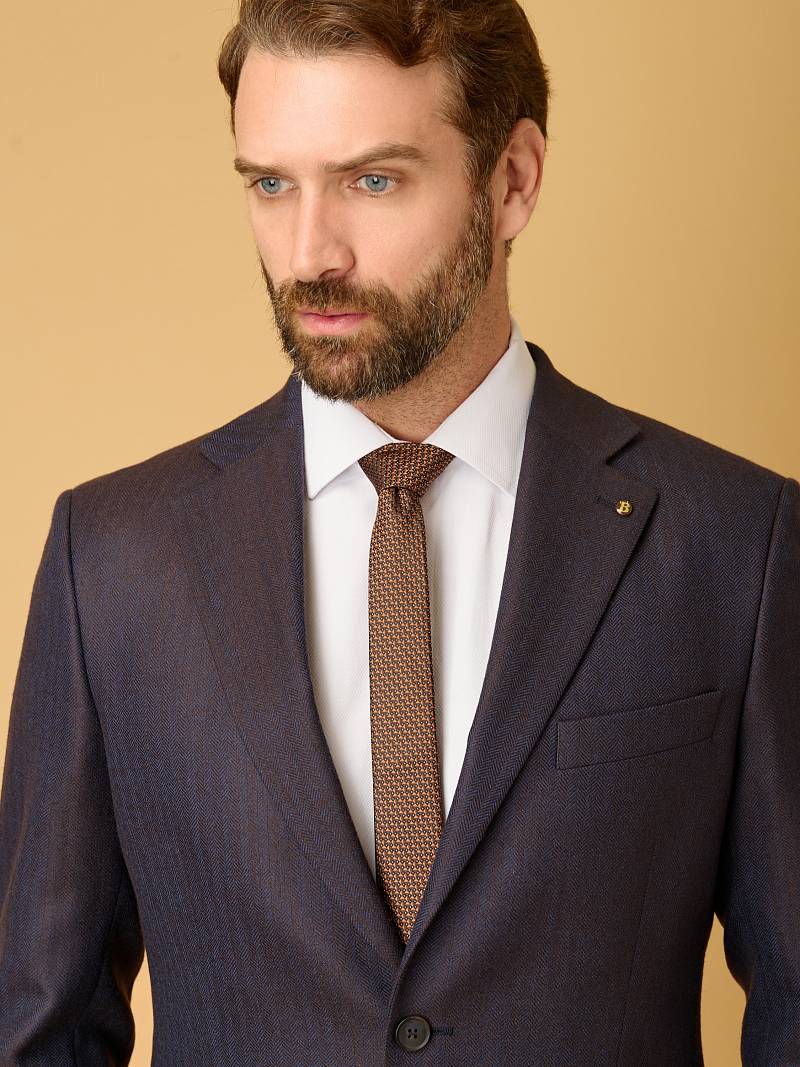 Классический костюм двойка марки BAZIONI– это идеальное сочетание стиля и комфорта для мужчин, которые ценят качественный пошив и изысканный дизайн. Для пошива шерстяного костюма использовали премиальную шерсть высокого качества, которая подчеркивает респектабельность, а безупречная посадка обеспечивает комфорт владельцу. Пиджак с классической шириной лацкана и мягкой линией плеч дополнили сзади двумя шлицами, модель садится точно по фигуре и прекрасно впишется в офисный образ. Обработан пиджак шелковой подкладкой с двумя внутренними карманами. Брюки прямого кроя со стрелками, средней посадкой, с боковыми наклонными карманами и двумя задними карманами "в рамку". Верхний срез брюк обработан поясом с корсажной лентой и шлевками под ремень. Дизайнеры марки BAZIONI тщательно подходят к выбору материалов. Пуговицы подбираются и красятся индивидуально под каждую ткань, а прикладные материалы используют только от передовых производителей. Костюм мужской, классический, повседневный, молодежный, casual, для работы в офисе, модный, для мужа, сына, брата, на праздник