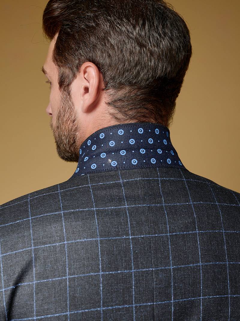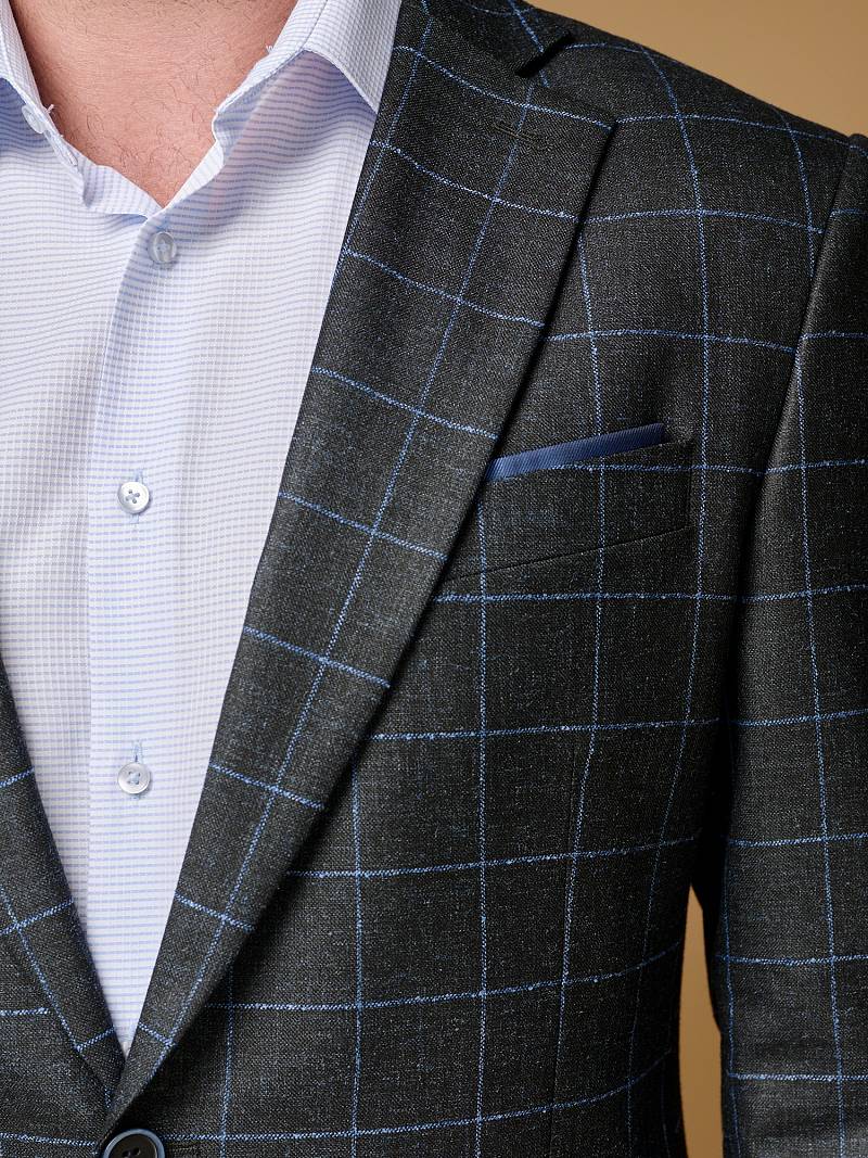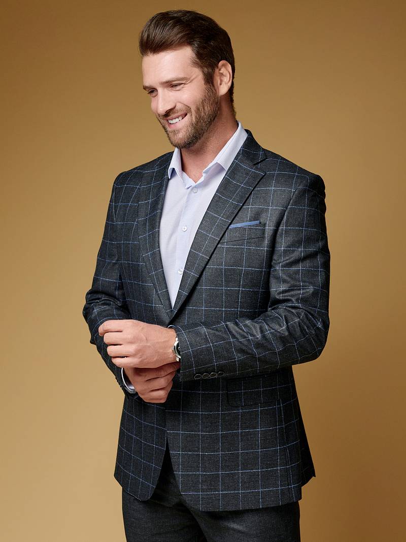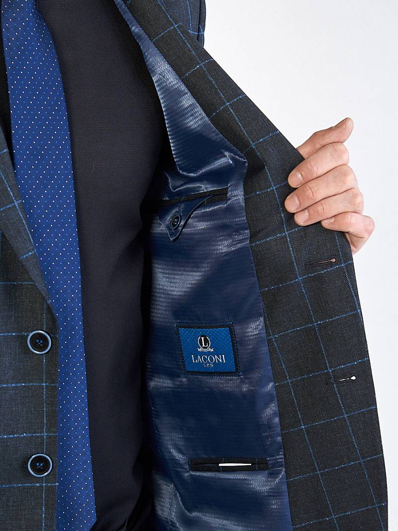 Классический костюм двойка Classic fit. Пиджак на две пуговицы, с боковыми и нагрудным карманами, по спинке две шлицы. Брюки без защипов с боковыми и двумя задними карманами.