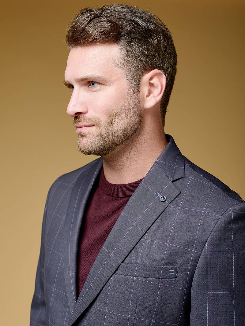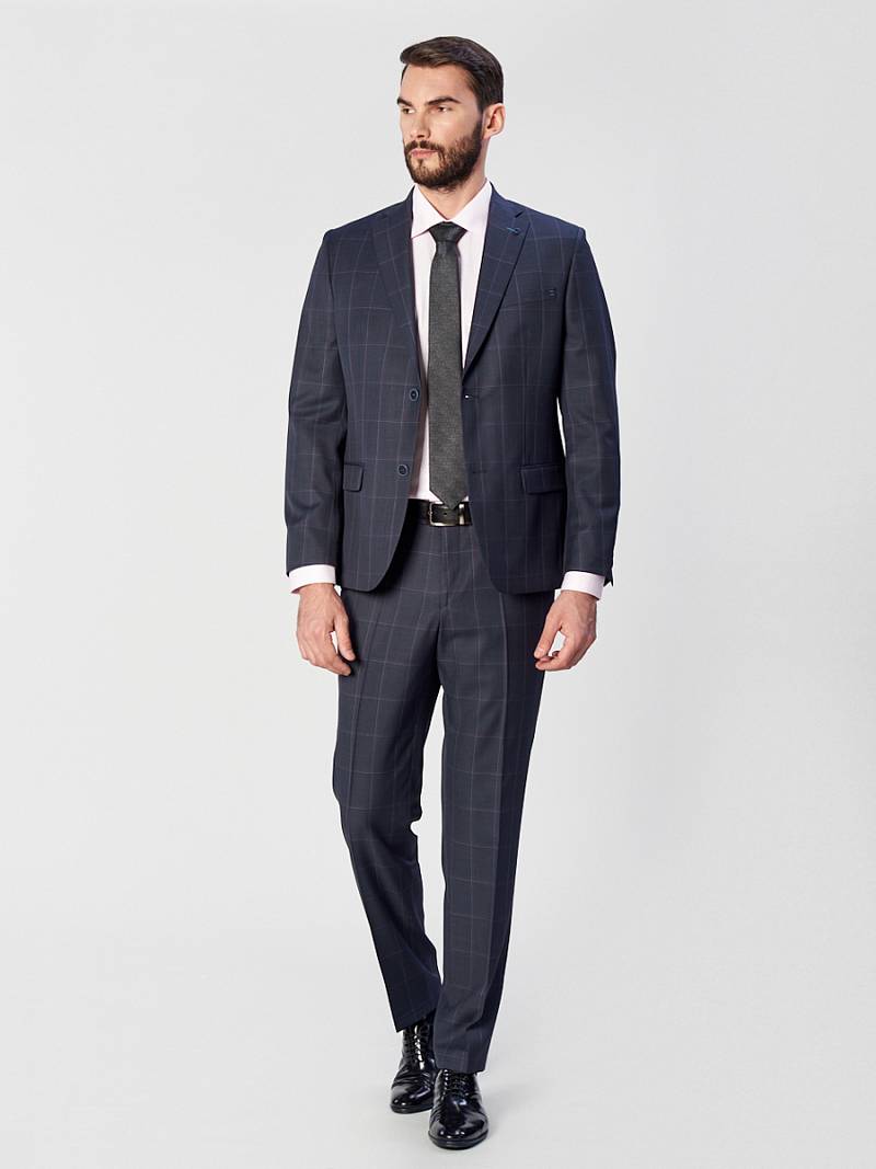 Классический костюм двойка Classic fit . Пиджак на две пуговицы, с боковыми и нагрудным карманами, по спинке две шлицы. Брюки без защипов с боковыми и одним задним карманом.