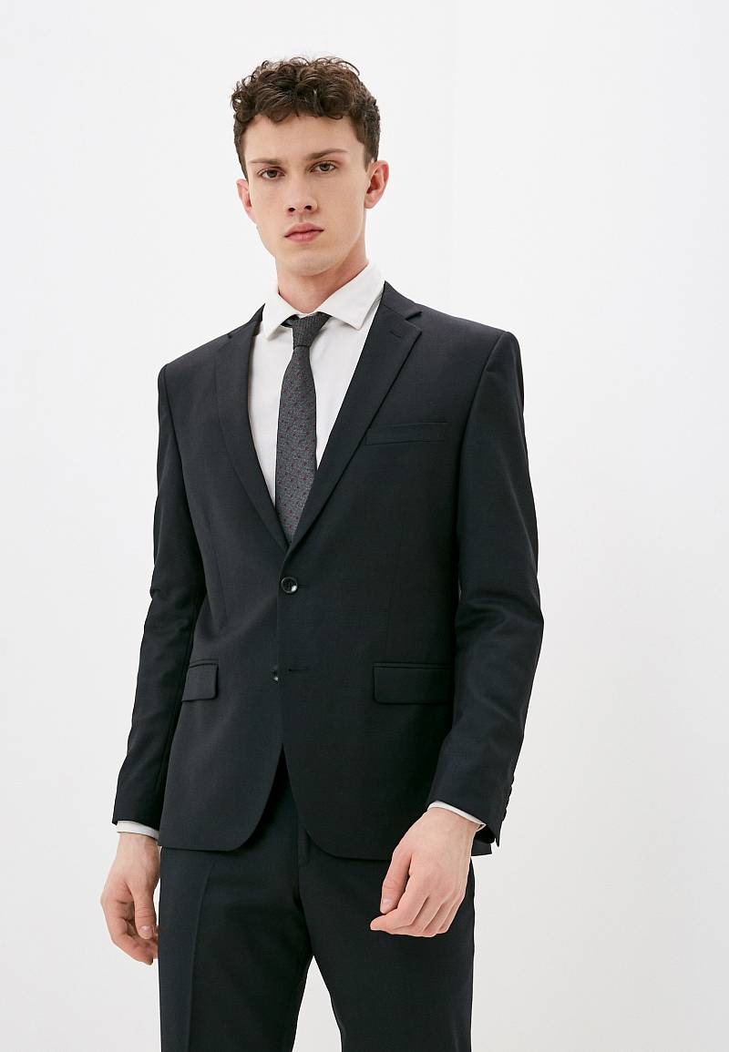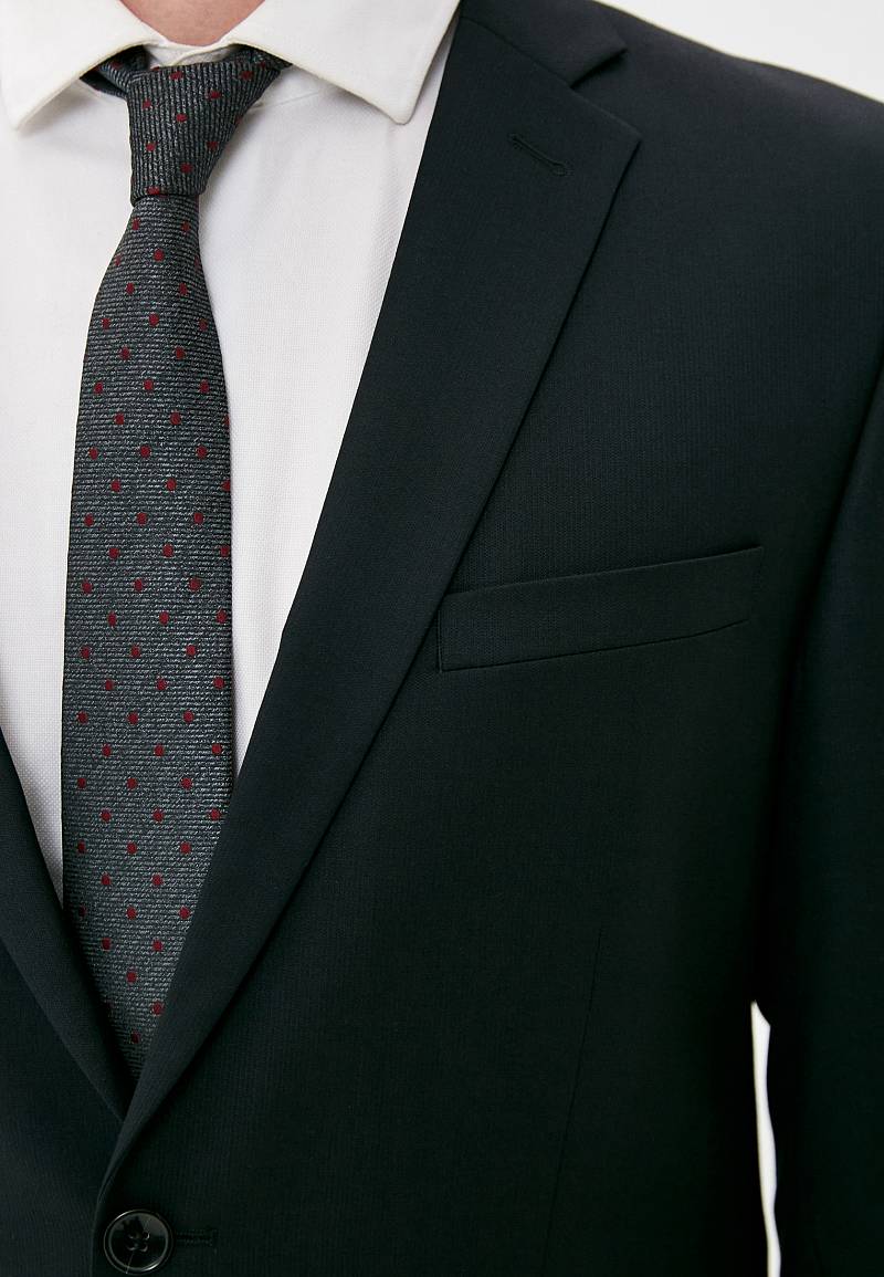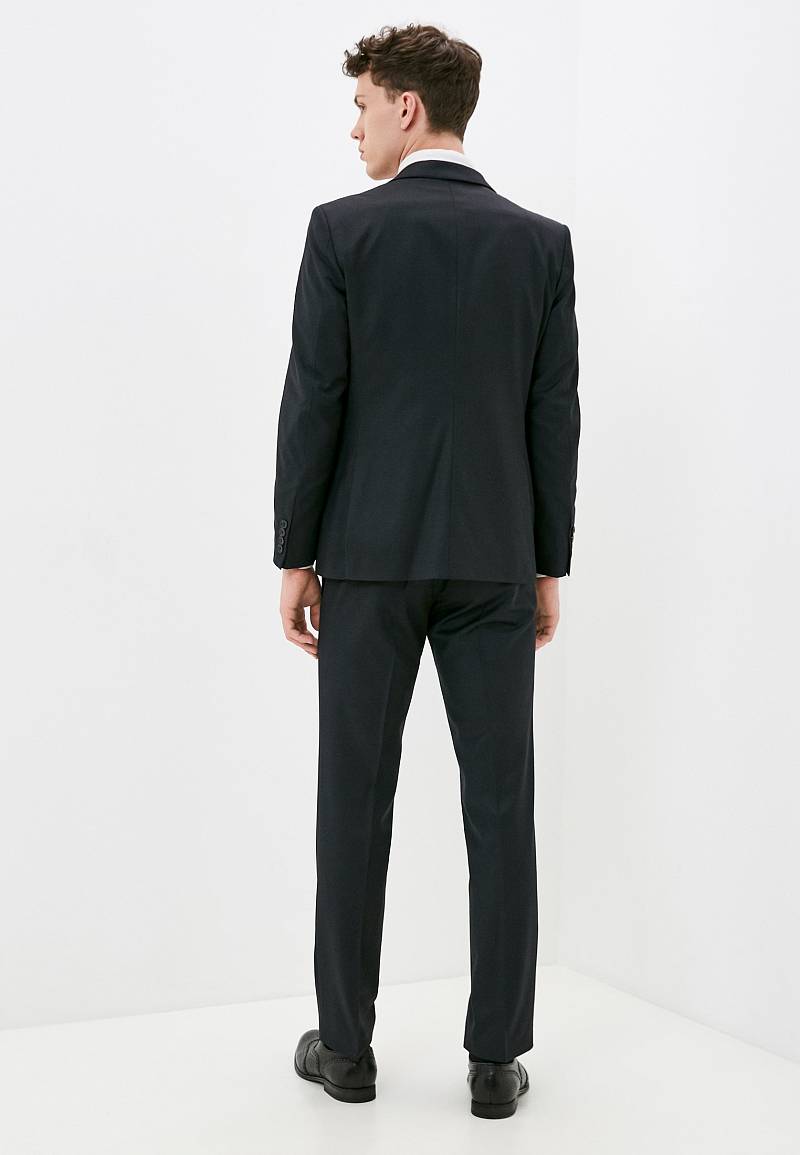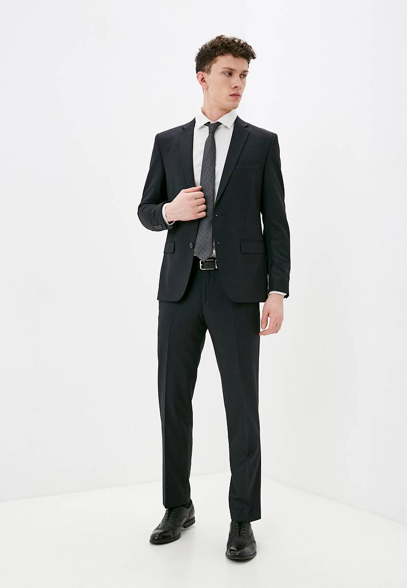 Классический костюм двойка Slim fit. Пиджак на две пуговицы, с боковыми и нагрудным карманами, по спинке две шлицы. Брюки без защипов с боковыми и двумя задними карманами.