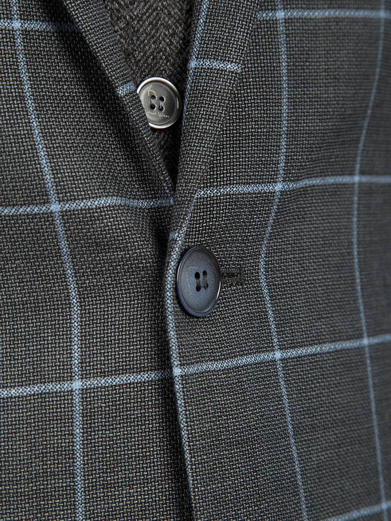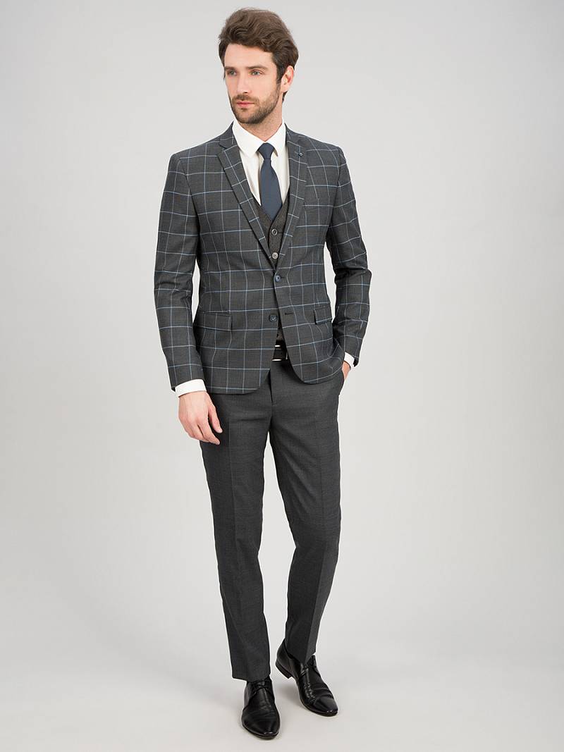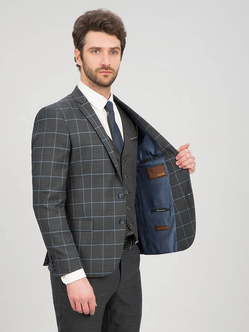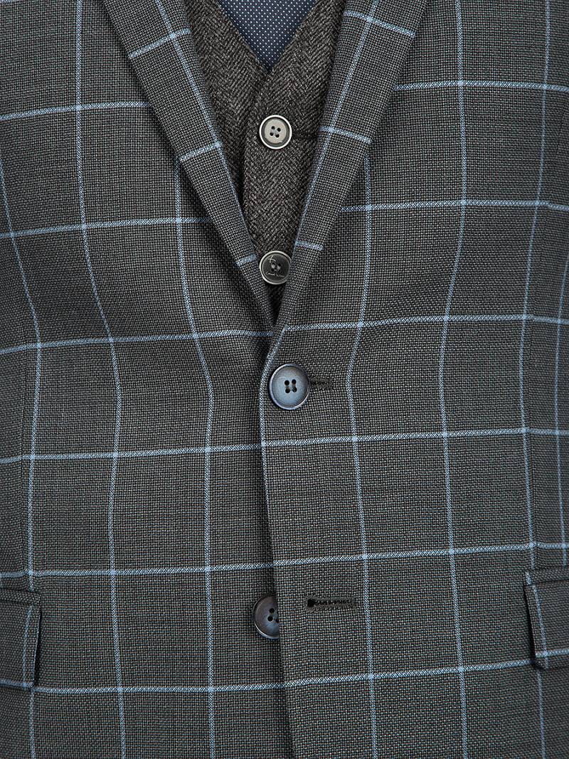 Классический костюм двойка Classic fit. Пиджак на две пуговицы, с боковыми и нагрудным карманами, по спинке две шлицы. Брюки без защипов с боковыми и одним задним карманом, выполнены из ткани компаньoна.