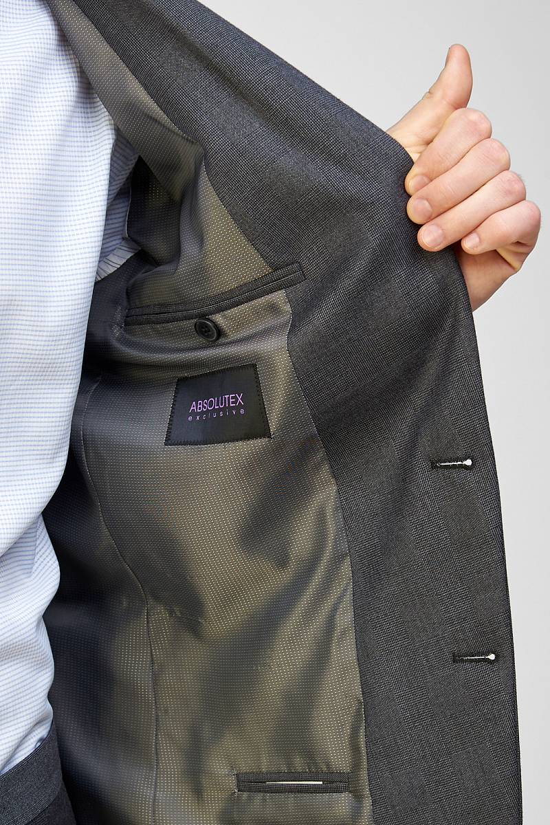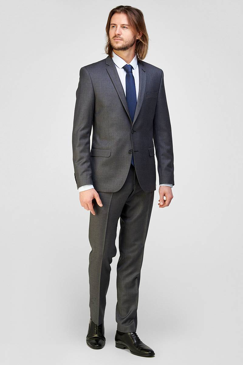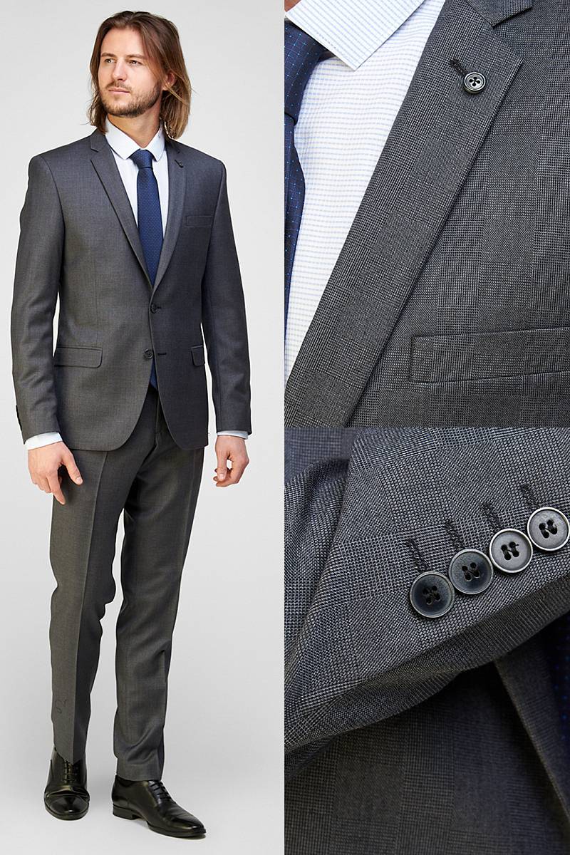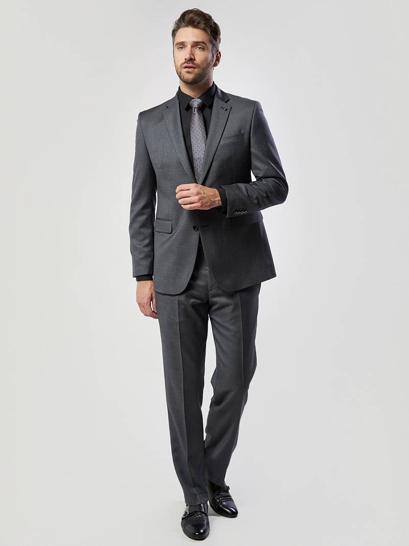 Классический костюм двойка Classic fit. Пиджак на две пуговицы, с боковыми и нагрудным карманами, по спинке две шлицы. Брюки без защипов с боковыми и двумя задними карманами.