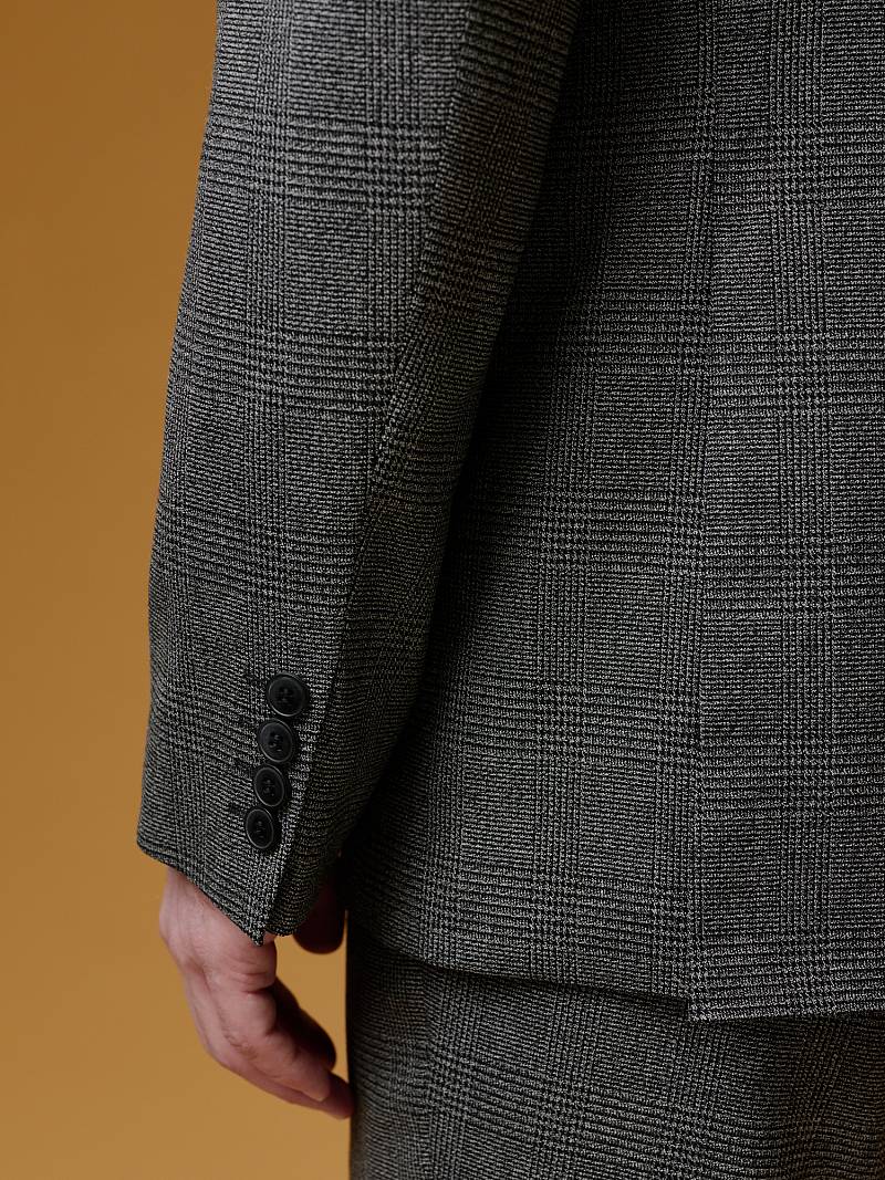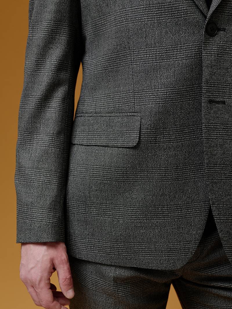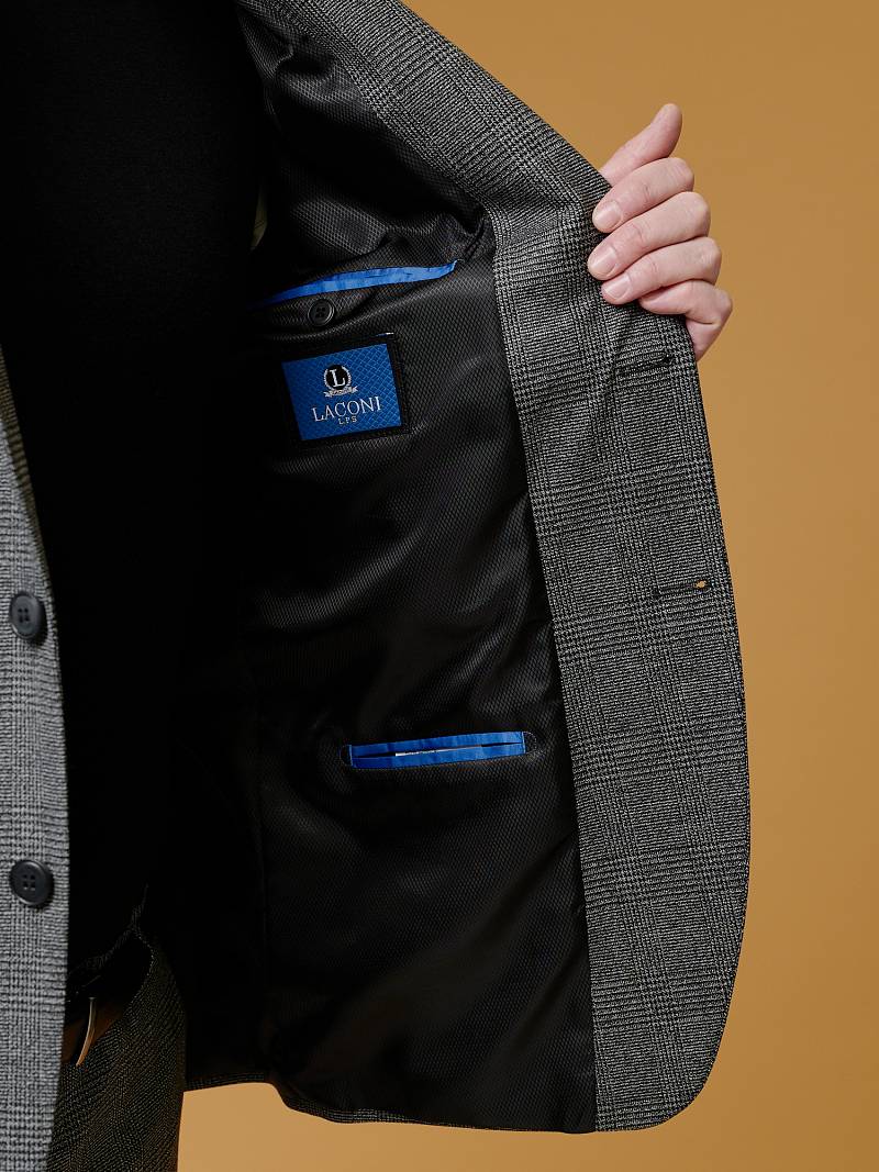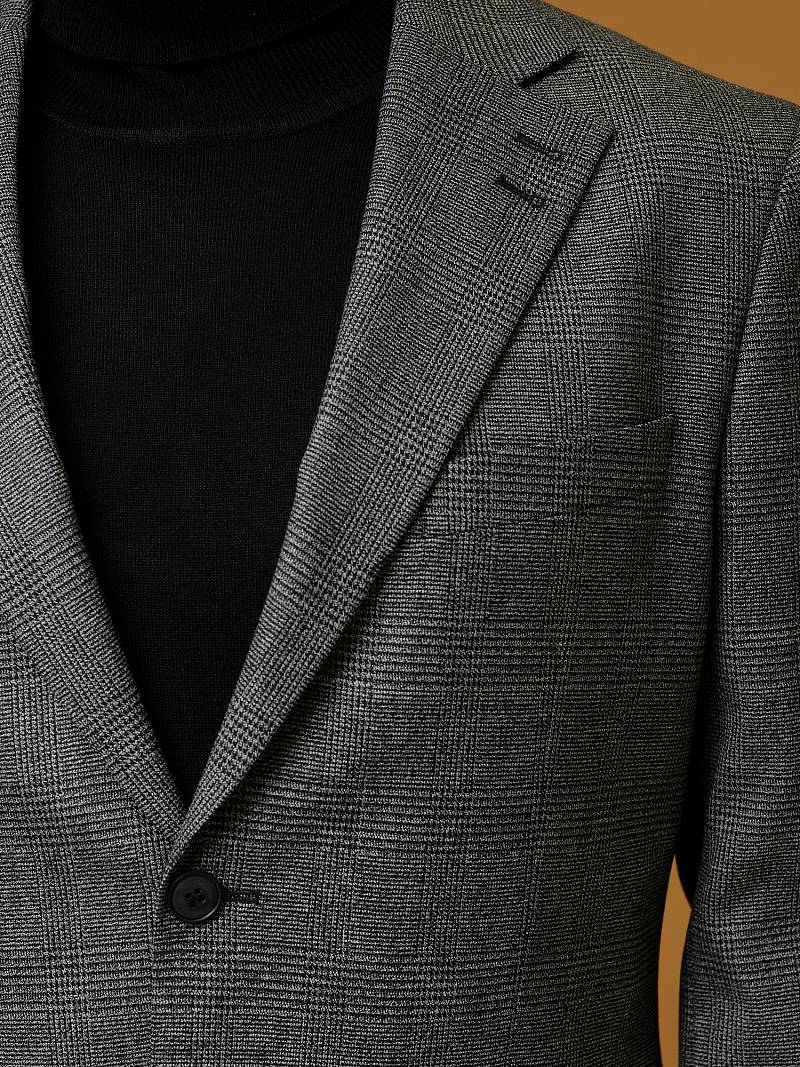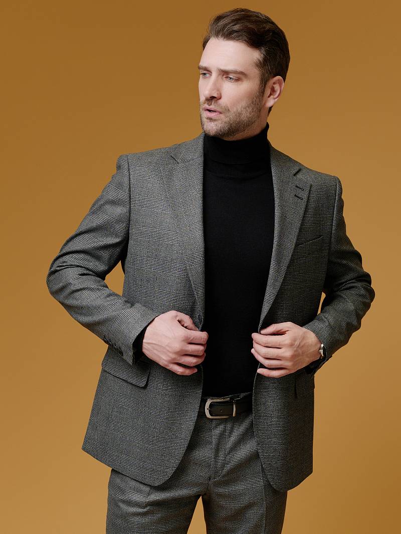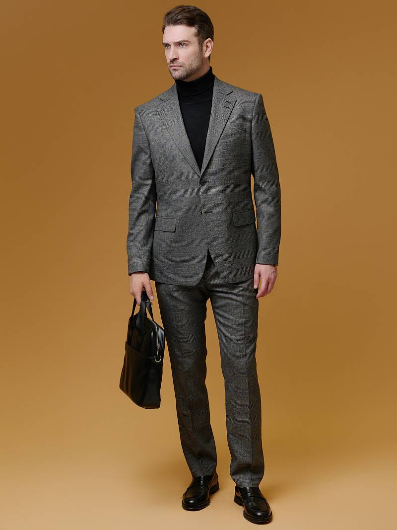 Классический костюм двойка Classic fit (ПОЛУПРИЛЕГАЮЩИЙ СИЛУЭТ). Пиджак однобортный на две пуговицы, с двумя боковыми карманами с клапанами и нагрудной листочкой. Рукава втачные, двухшовные со шлицей и четырьмя декоративными пуговицами. По спинке расположены две шлицы. Пиджак на подкладке, с двумя внутренними карманами. Брюки без защипов, с боковыми наклонными карманами и двумя задними карманами «в рамку». Передние половинки на подкладке. Верхний срез брюк обработан поясом с корсажной лентой и шлевками под ремень. Застежка обработана на тесьму-молнию, с петлей-пуговицей на поясе и усилен металлическим крючком.