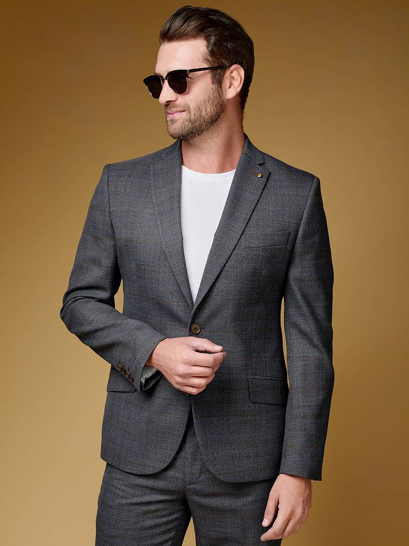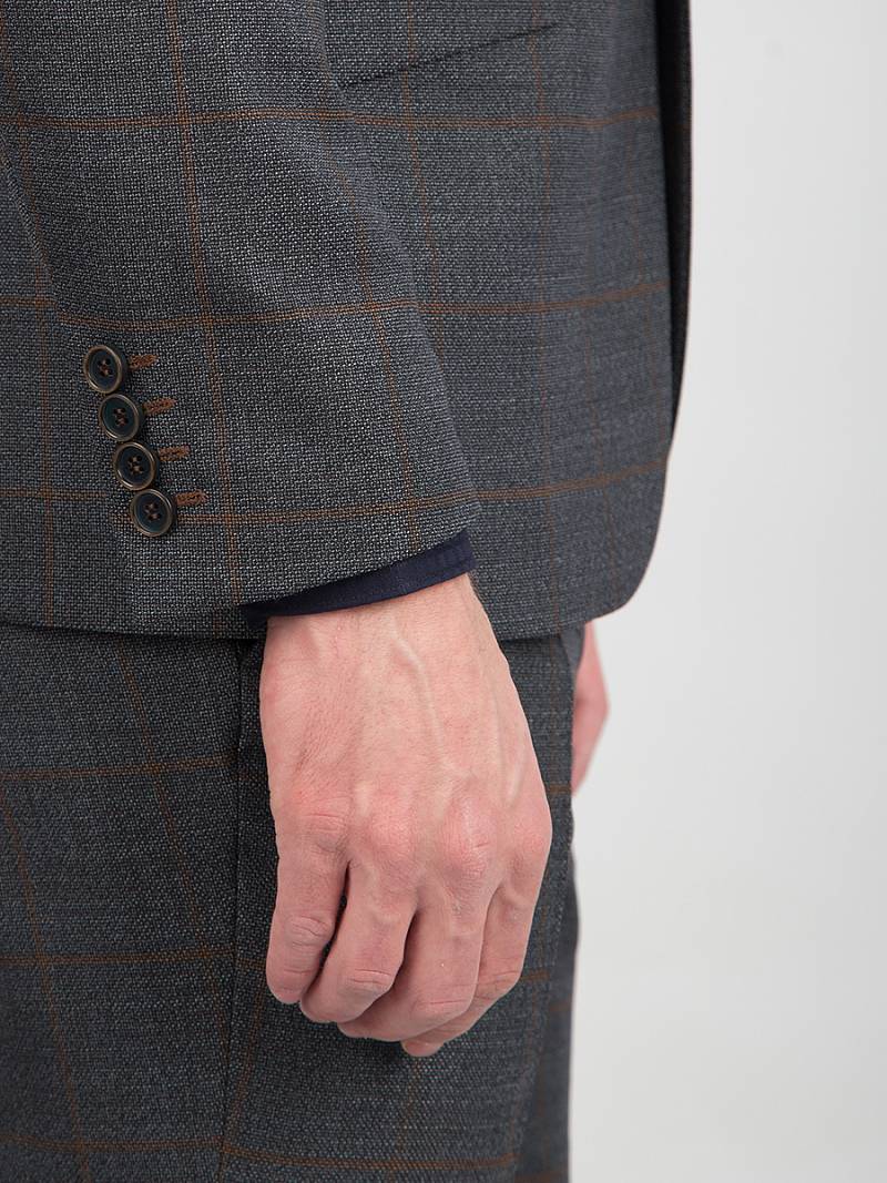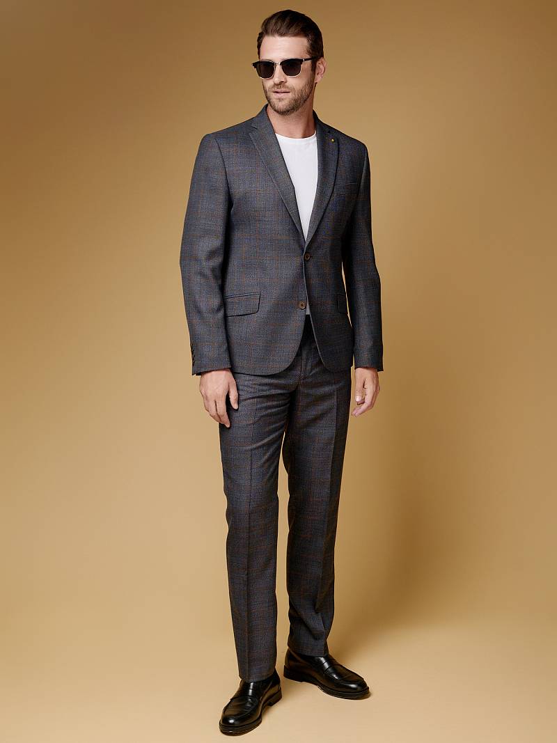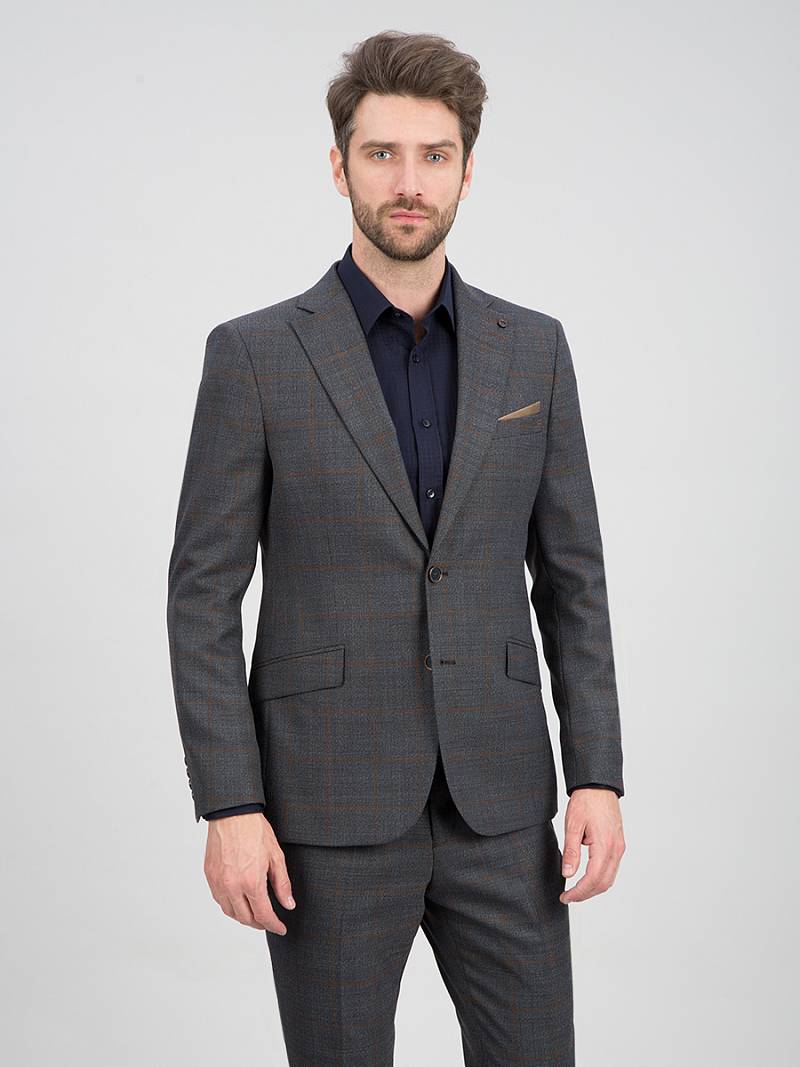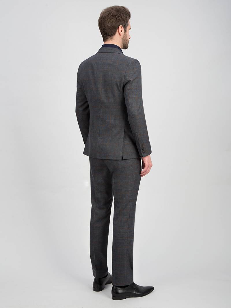 Классический костюм двойка Slim fit (ПРИЛЕГАЮЩИЙ СИЛУЭТ), рекомендуется брать на размер больше.. Пиджак на две пуговицы, с боковыми и нагрудным карманами, по спинке две шлицы. Брюки без защипов с боковыми и двумя задними карманами.