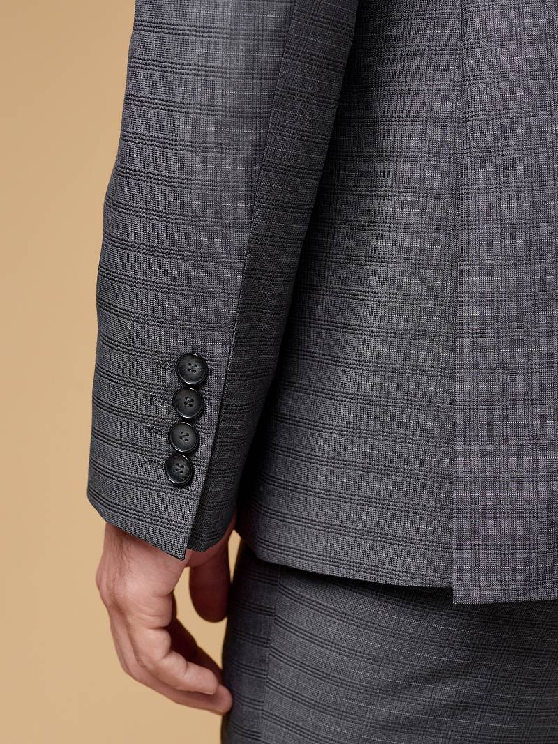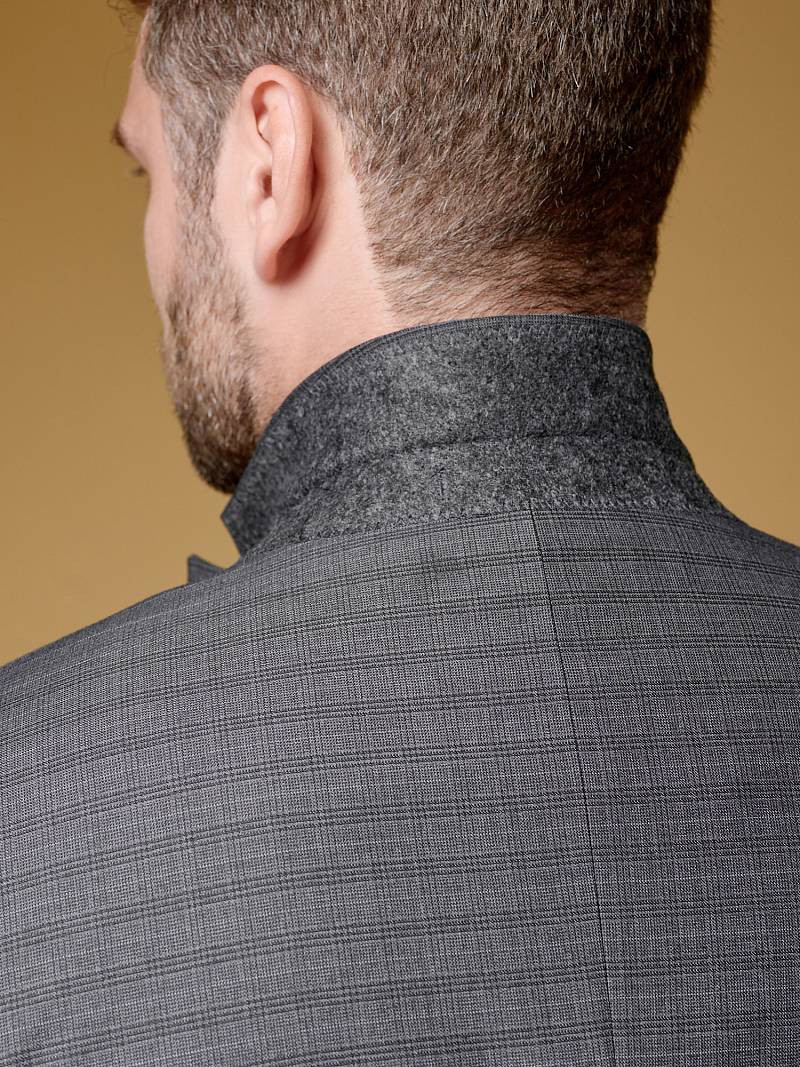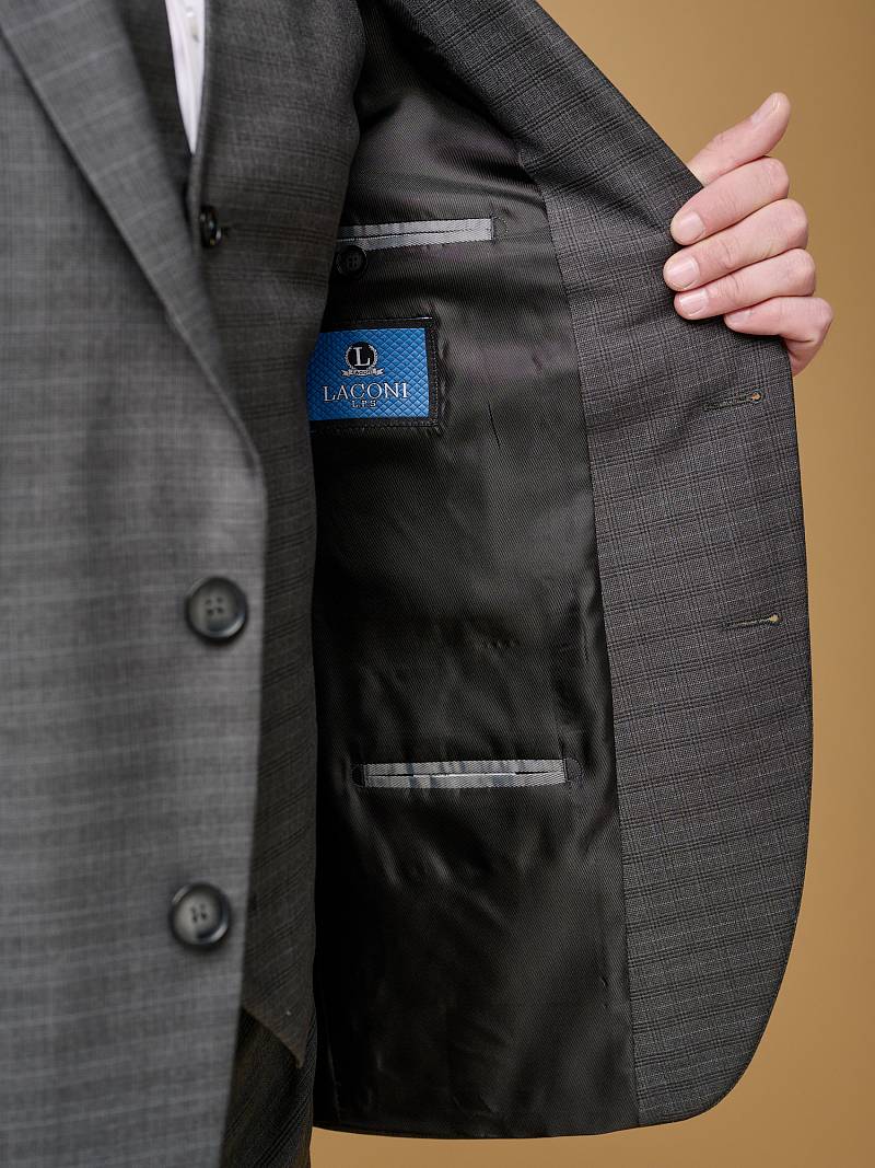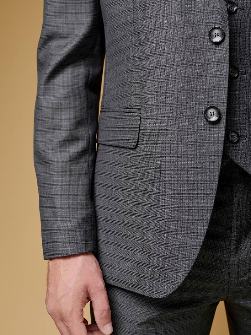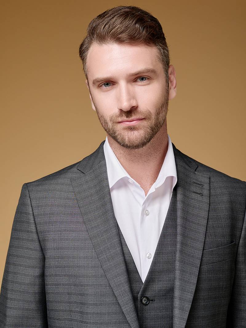 Классический костюм тройка Slim fit (ПРИЛЕГАЮЩИЙ СИЛУЭТ), рекомендуется брать на размер больше.Пиджак однобортный на две пуговицы, с двумя боковыми карманами с клапанами и нагрудной листочкой. Рукава втачные, двухшовные со шлицей и четырьмя декоративными пуговицами. По спинке расположены две шлицы. Пиджак на подкладке, с двумя внутренними карманами. Брюки без защипов, с боковыми наклонными карманами и двумя задними карманами «в рамку». Передние половинки на подкладке. Верхний срез брюк обработан поясом с корсажной лентой и шлевками под ремень. Застежка обработана на тесьму-молнию, с петлей-пуговицей на поясе и усилен металлическим крючком. Жилет с двумя боковыми карманами, по спинке расположен хлястик для регулировки объема в области талии.