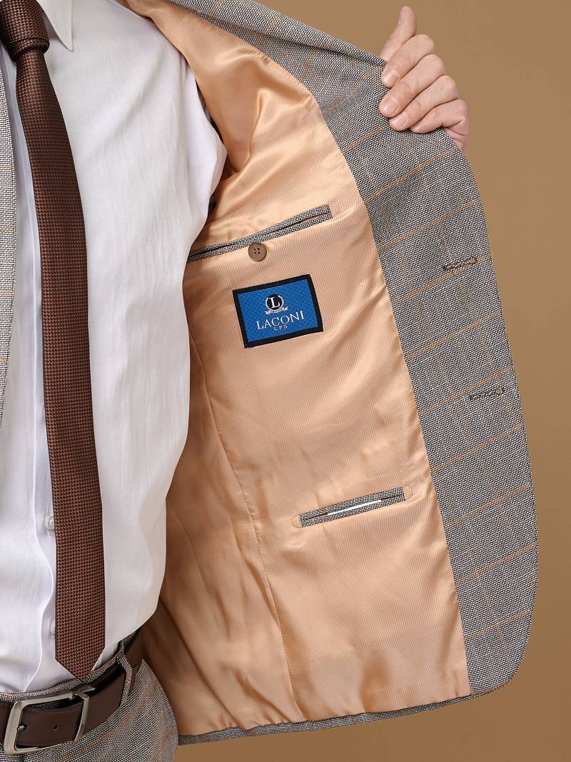 Slim fit (ПРИЛЕГАЮЩИЙ СИЛУЭТ), рекомендуется брать на размер больше. Яркий клетчатый костюм двойка марки LACONI– это идеальное сочетание стиля и комфорта. Приталенная однобортная модель на две пуговицы сшита из ткани, которая выделит вас из толпы и даст почувствовать себя особенным. Пиджак с классичесой шириной лацкана и мягкой линией плеч дополнили сзади двумя шлицами, поэтому он садится точно по фигуре. Для придания образу торжественности подкладку нагрудного кармана можно использовать как платок. Внутри пиджак обработан на подкладке с двумя внутренними карманами. Брюки прямого кроя со стрелками и заниженной посадкой, с боковыми наклонными карманами и одним задним карманом "в рамку". Верхний срез брюк обработан поясом с корсажной лентой и шлевками под ремень. Дизайнеры марки LACONI тщательно подходят к выбору материалов. Пуговицы подбираются и красятся индивидуально под каждую ткань, а прикладные материалы используют только от передовых производителей. Костюм мужской, классический, нарядный, повседневный