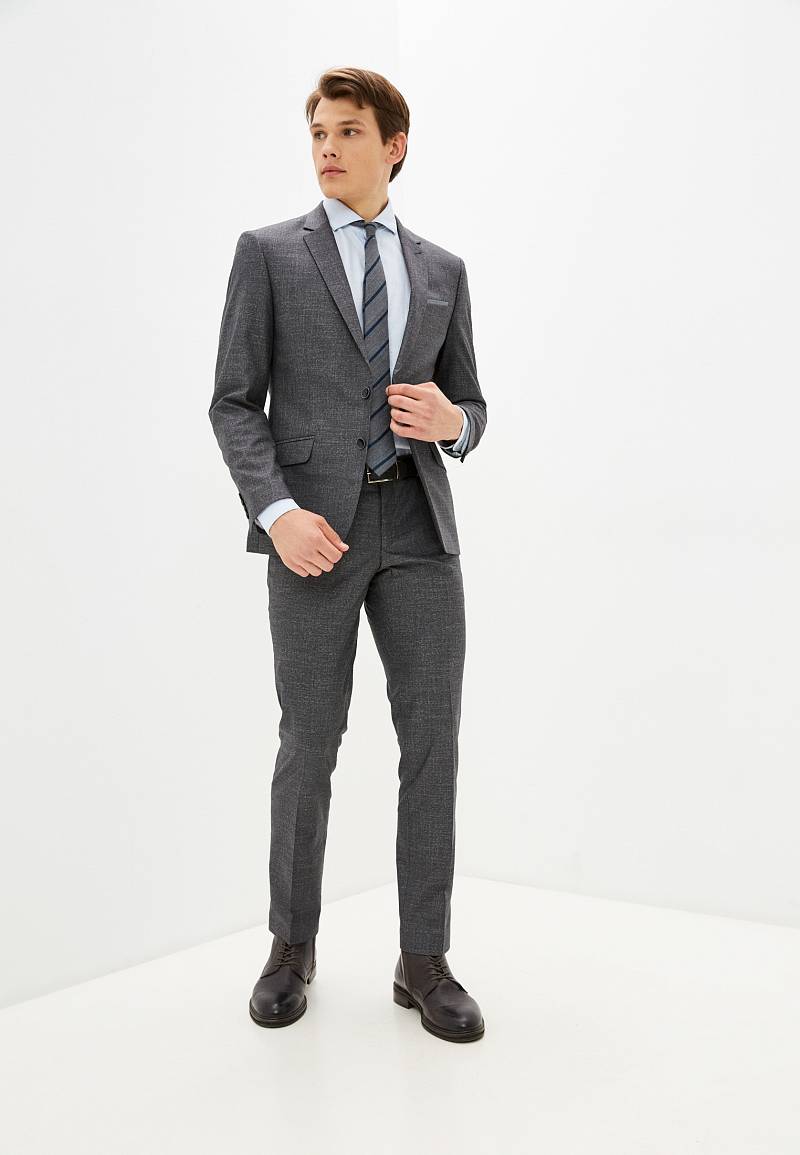 Классический костюм двойка Slim fit . Пиджак на две пуговицы, с боковыми карманами и одним нагрудным, по спинке две шлицы, в нагрудном кармане съемный декоративный платок. Брюки без защипов с одним задним карманом.