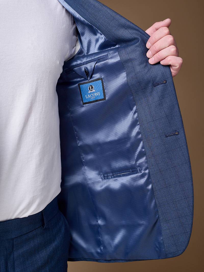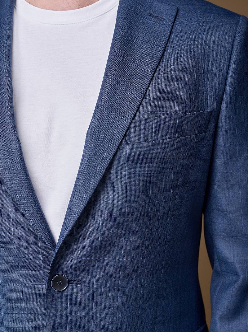 Классический костюм двойка Slim fit (ПРИЛЕГАЮЩИЙ СИЛУЭТ), рекомендуется брать на размер больше.Пиджак однобортный на две пуговицы, с двумя боковыми карманами с клапанами и нагрудной листочкой. Рукава втачные, двухшовные со шлицей и четырьмя декоративными пуговицами. По спинке расположены две шлицы. Пиджак на подкладке, с двумя внутренними карманами. Брюки без защипов, с боковыми наклонными карманами и двумя задними карманами «в рамку». Передние половинки на подкладке. Верхний срез брюк обработан поясом с корсажной лентой и шлевками под ремень. Застежка обработана на тесьму-молнию, с петлей-пуговицей на поясе и усилен металлическим крючком.