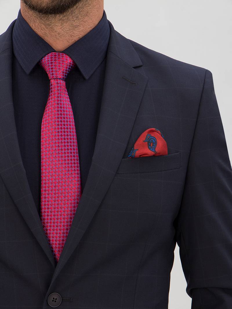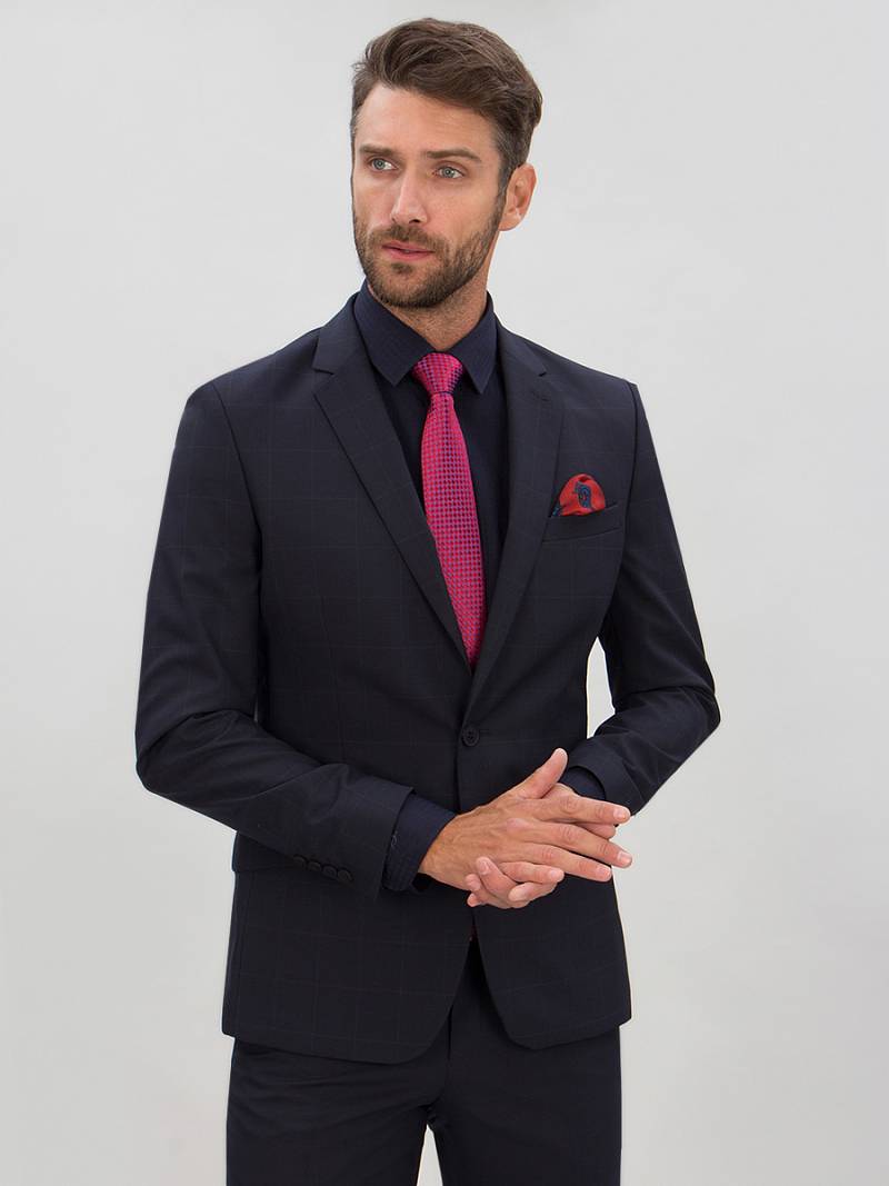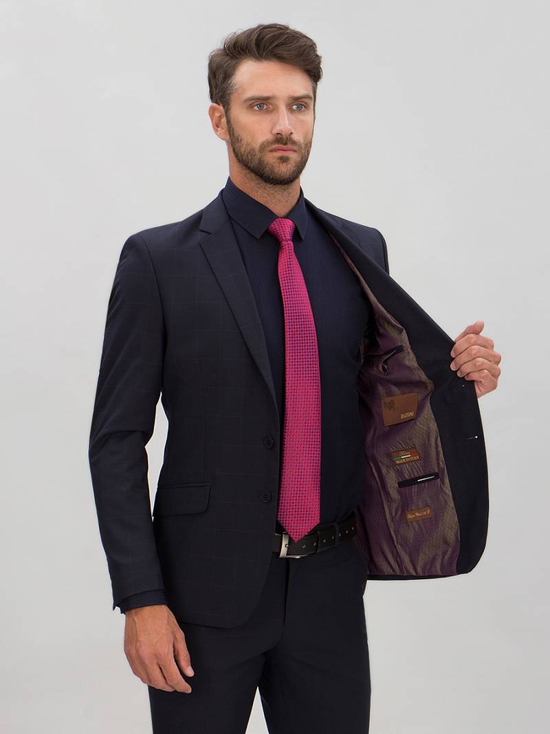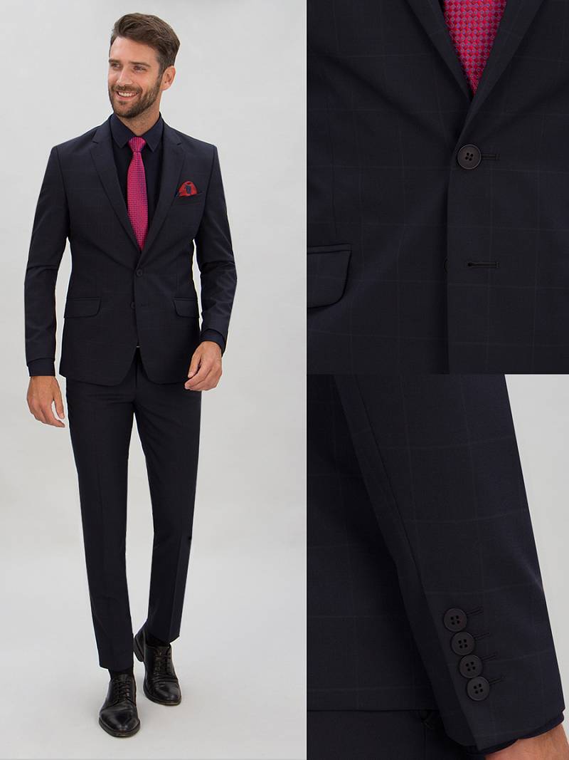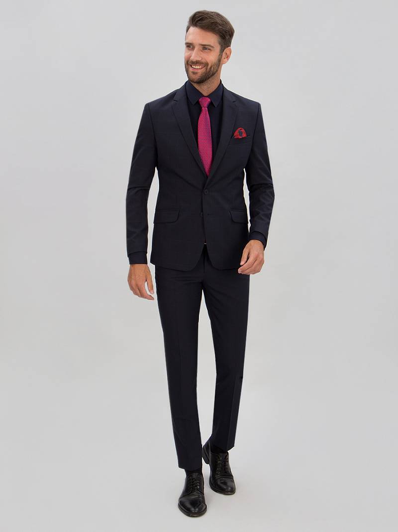 Классический костюм двойка Classic fit. Пиджак на две пуговицы, с боковыми и нагрудным карманами, по спинке две шлицы. Брюки без защипов с боковыми и одним задним карманом.