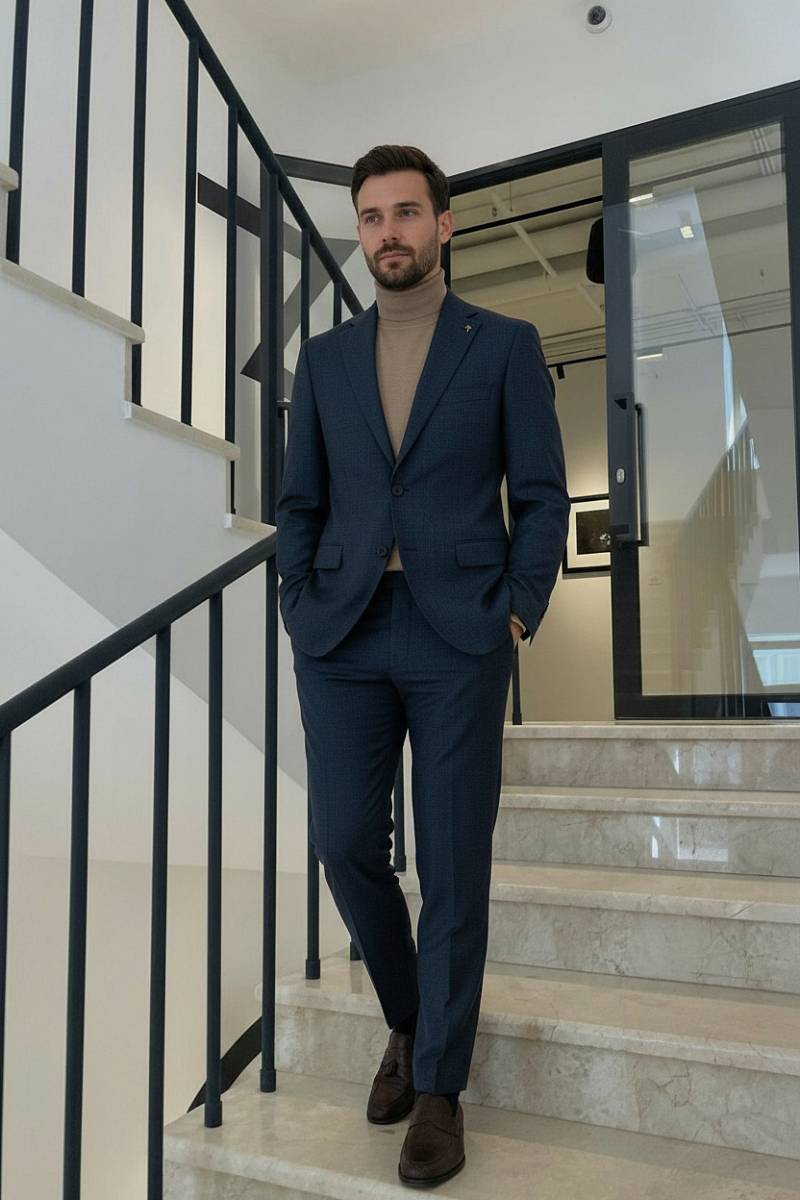 Классический костюм двойка марки BOLINI– это идеальное сочетание стиля и комфорта для мужчин, которые ценят качественный пошив и изысканный дизайн. Для пошива костюма использовали премиальную шерсть c кашемиром, которая подчеркивает респектабельность, а безупречная посадка обеспечивает комфорт владельцу. Пиджак с классической шириной лацкана и мягкой линией плеч дополнили сзади двумя шлицами, модель садится точно по фигуре и прекрасно впишется в офисный образ. Пиджак на шелковой подкладке с двумя внутренними карманами. Брюки прямого кроя со стрелками, средней посадкой, с боковыми наклонными карманами и двумя задними карманами "в рамку". Верхний срез брюк обработан поясом с корсажной лентой и шлевками под ремень. Дизайнеры марки BOLINI тщательно подходят к выбору материалов. Пуговицы подбираются и красятся индивидуально под каждую ткань, а прикладные материалы используют только от передовых производителей.