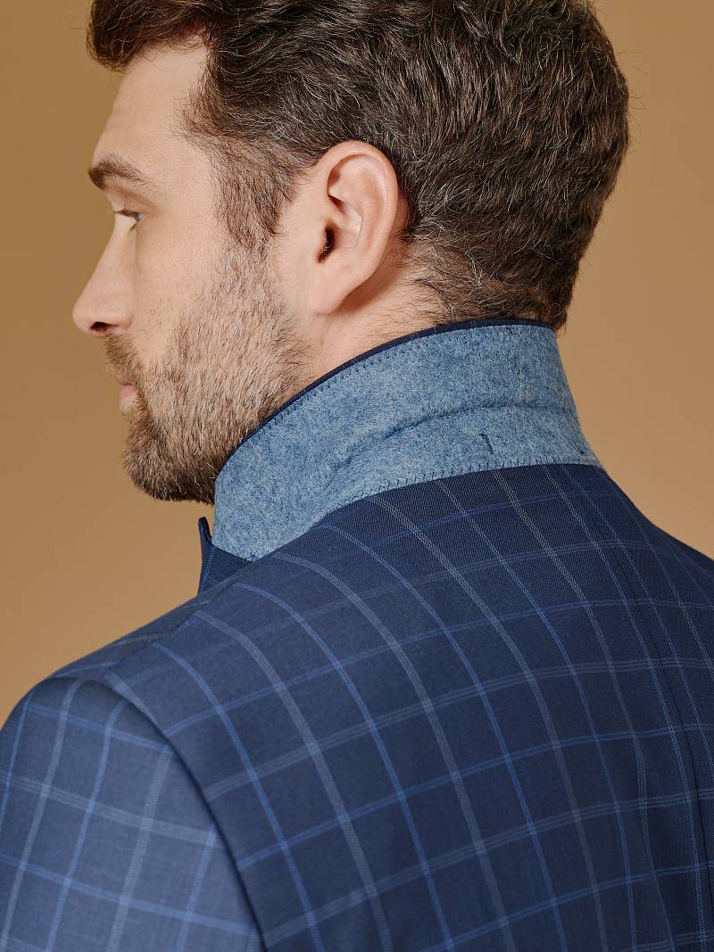 Классический костюм двойка Slim fit (ПРИЛЕГАЮЩИЙ СИЛУЭТ), рекомендуется брать на размер больше.Пиджак однобортный на две пуговицы, с двумя боковыми карманами с клапанами и нагрудной листочкой. Рукава втачные, двухшовные со шлицей и четырьмя декоративными пуговицами. По спинке расположены две шлицы. Пиджак на подкладке, с двумя внутренними карманами. Брюки без защипов, с боковыми наклонными карманами и двумя задними карманами «в рамку». Передние половинки на подкладке. Верхний срез брюк обработан поясом с корсажной лентой и шлевками под ремень. Застежка обработана на тесьму-молнию, с петлей-пуговицей на поясе и усилен металлическим крючком.