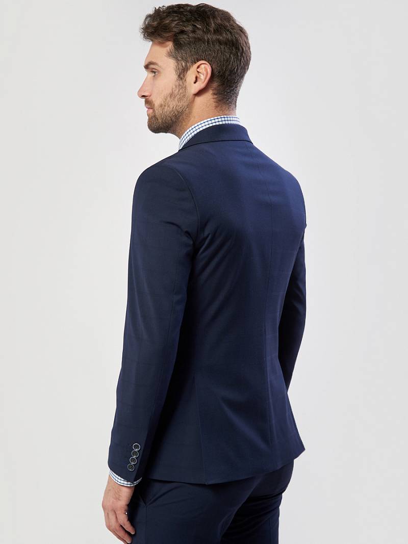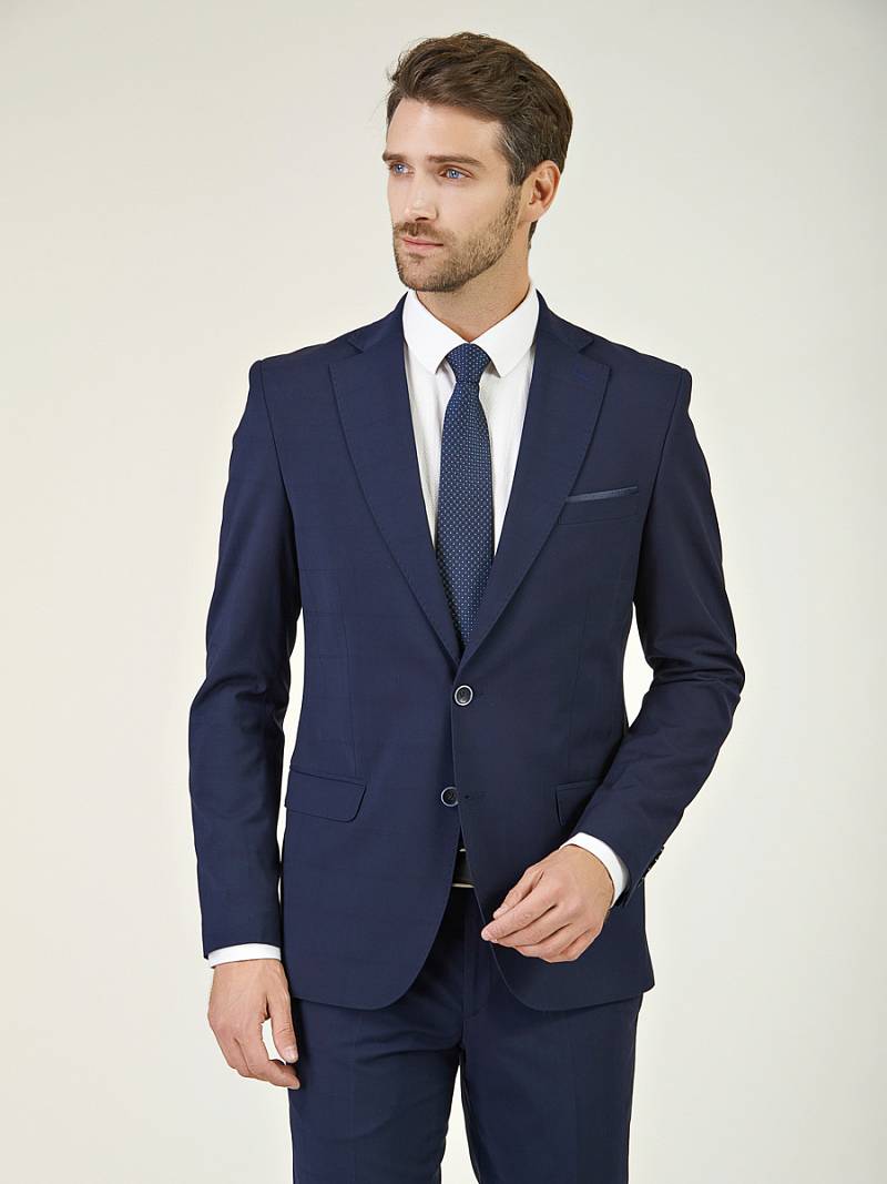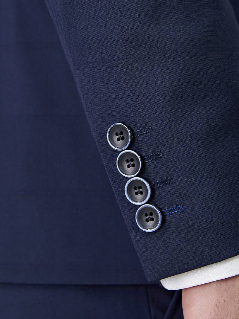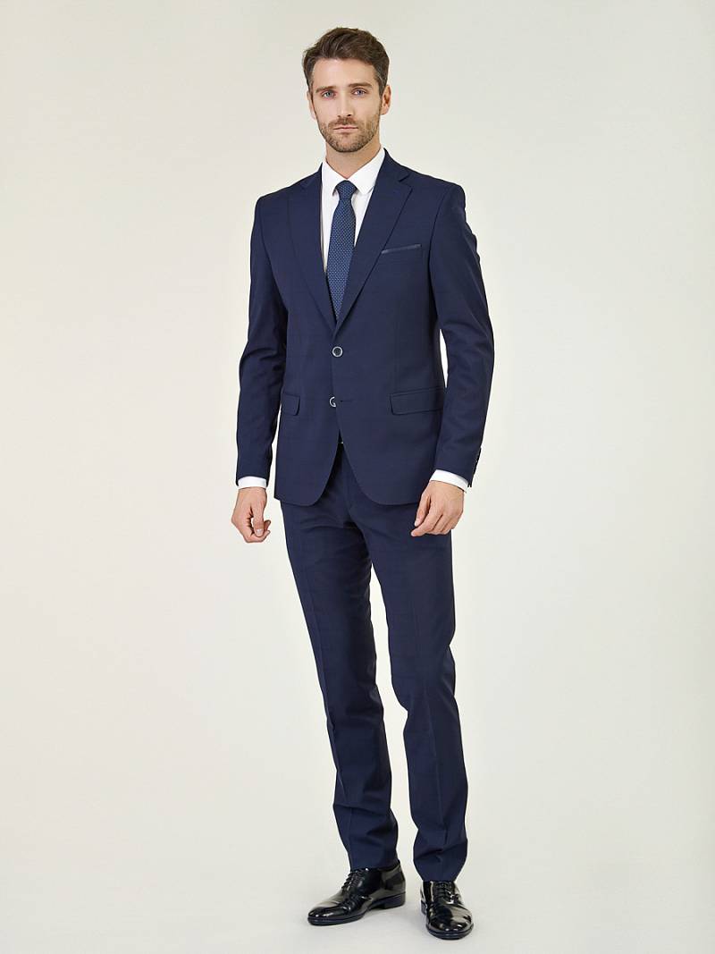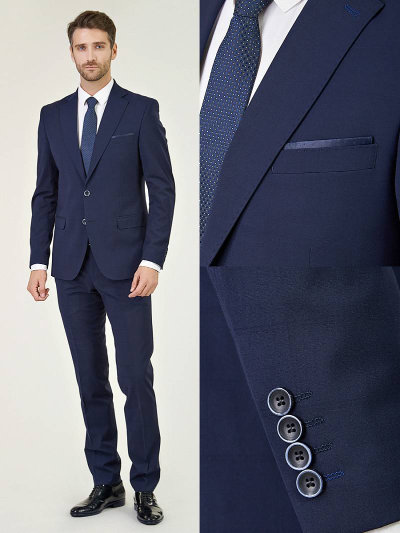 Slim fit, две пуговицы, две шлицы. Две фасонные петли на лацкане.