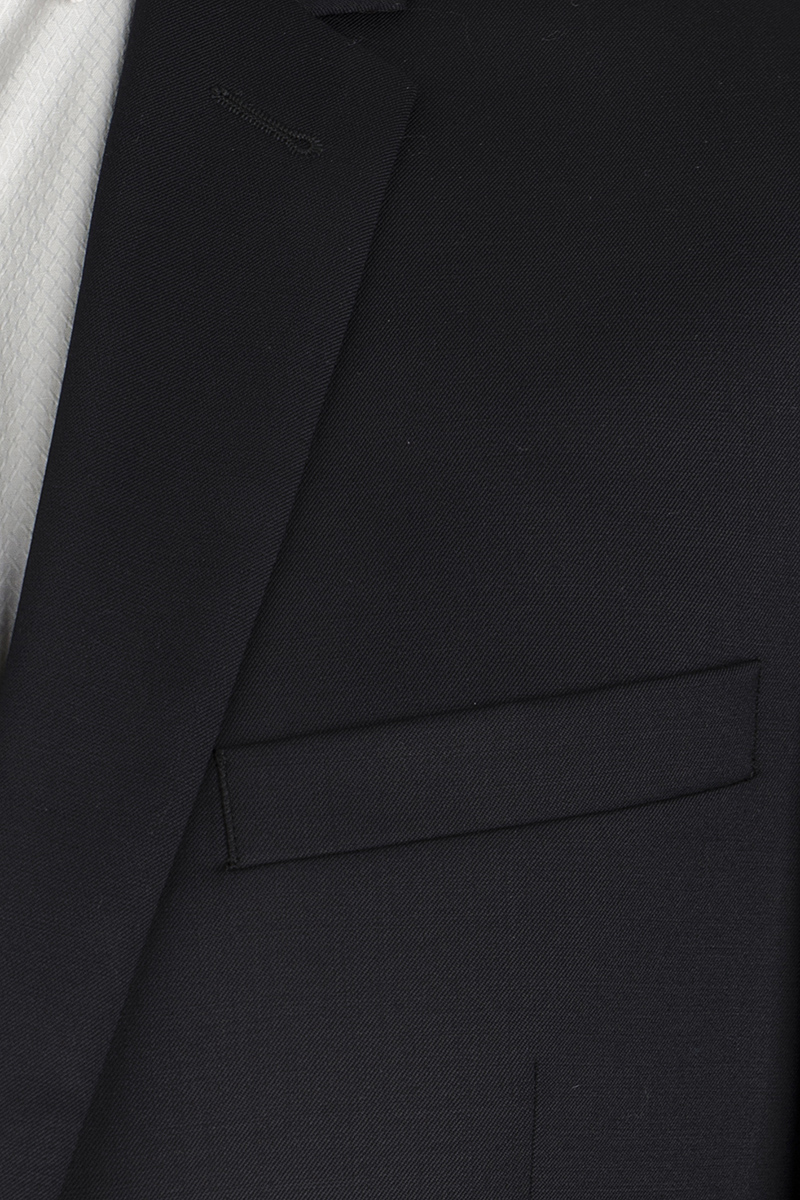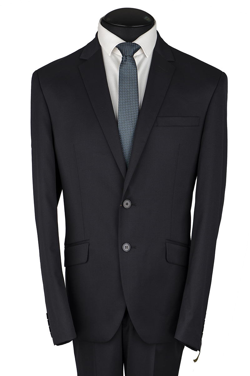 Классический костюм двойка Slim fit. Пиджак на две пуговицы, с боковыми и нагрудным карманами, по спинке две шлицы. Брюки без защипов с боковыми и одним задним карманом.