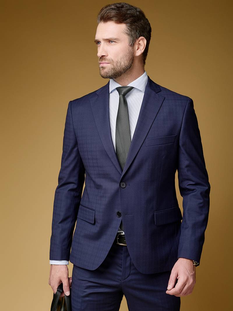 Классический костюм двойка Slim fit (ПРИЛЕГАЮЩИЙ СИЛУЭТ), рекомендуется брать на размер больше.Пиджак однобортный на две пуговицы, с двумя боковыми карманами с клапанами и нагрудной листочкой. Рукава втачные, двухшовные со шлицей и четырьмя декоративными пуговицами. По спинке расположены две шлицы. Пиджак на подкладке, с двумя внутренними карманами. Брюки без защипов, с боковыми наклонными карманами и одним задним карманом «в рамку». Передние половинки на подкладке. Верхний срез брюк обработан поясом с корсажной лентой и шлевками под ремень. Застежка обработана на тесьму-молнию, с петлей-пуговицей на поясе и усилен металлическим крючком.