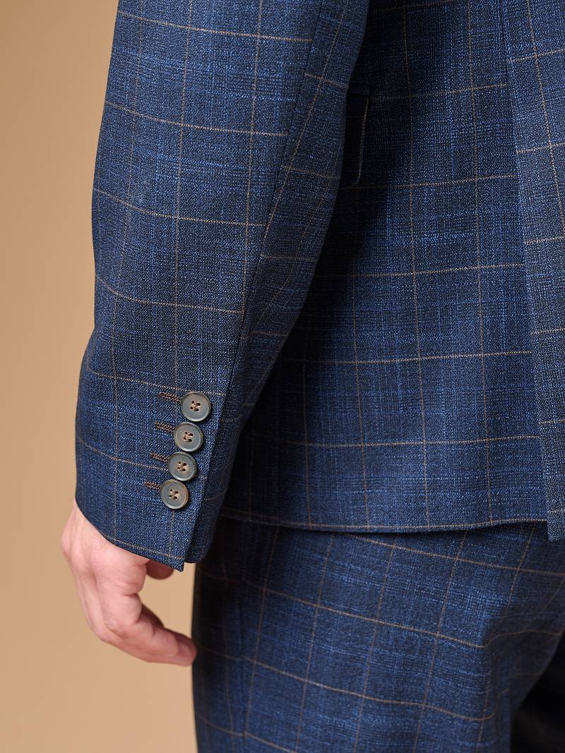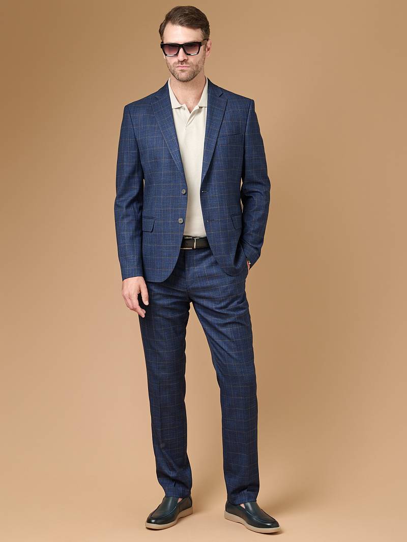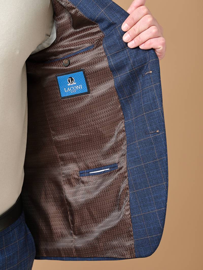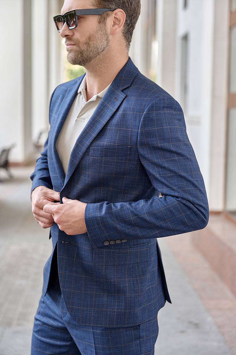Классический костюм двойка Slim fit (ПРИЛЕГАЮЩИЙ СИЛУЭТ), рекомендуется брать на размер больше. Костюм двойка марки LACONI– это идеальное сочетание стиля и комфорта для мужчин. Характер шерстяному костюму делает клетчатый узор, который выглядит выразительным благодаря фактурной ткани, а входящая в состав лайкра придаст костюму дополнительный комфорт и удобство. Пиджак с классической шириной лацкана и мягкой линией плеч отлично сядет по фигуре и подойдет для любого случая в жизни. Пиджак обработан на подкладке с двумя внутренними карманами. Брюки прямого кроя со стрелками и классической посадкой, с боковыми наклонными карманами и одним задними карманом "в рамку". Верхний срез брюк обработан поясом с корсажной лентой и шлевками под ремень. Дизайнеры марки LACONI тщательно подходят к выбору материалов. Пуговицы подбираются и красятся индивидуально под каждую ткань, а прикладные материалы используют только от передовых производителей. Костюм мужской, классический, нарядный, повседневный, молодежный, casual, для работы в офисе, модный, для мужа, сына, брата, на праздник.
