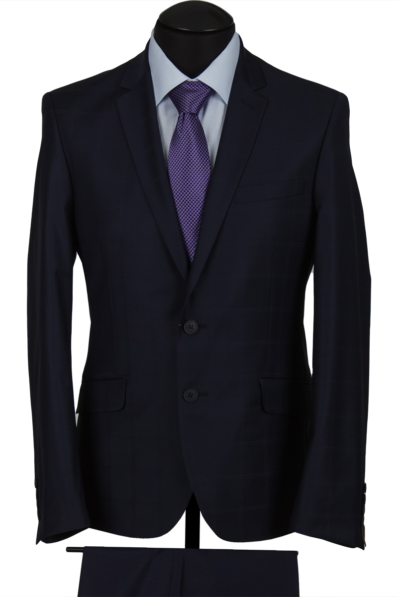 Классический костюм двойка Ultra slim fit. Пиджак на две пуговицы, с боковыми и нагрудным карманами, по спинке две шлицы. Брюки без защипов с боковыми и одним задним карманом.