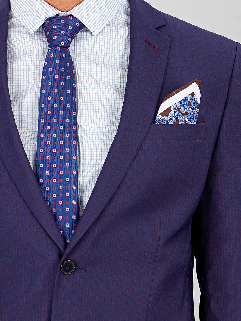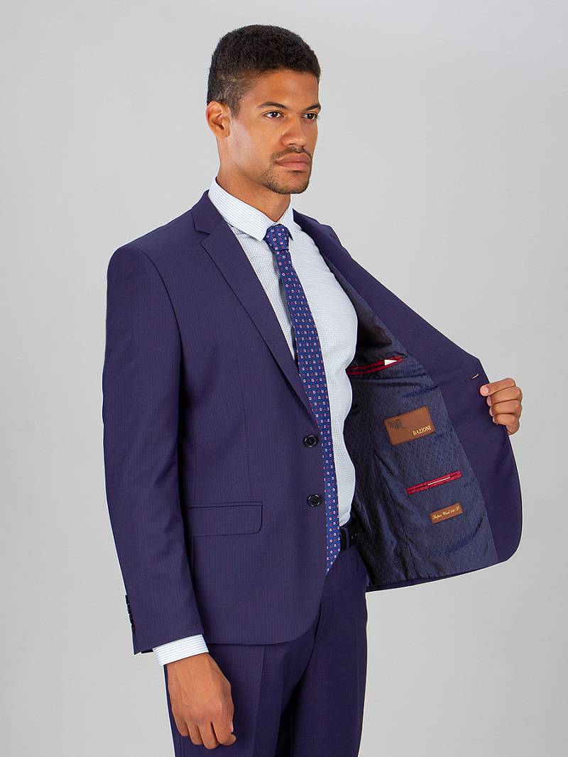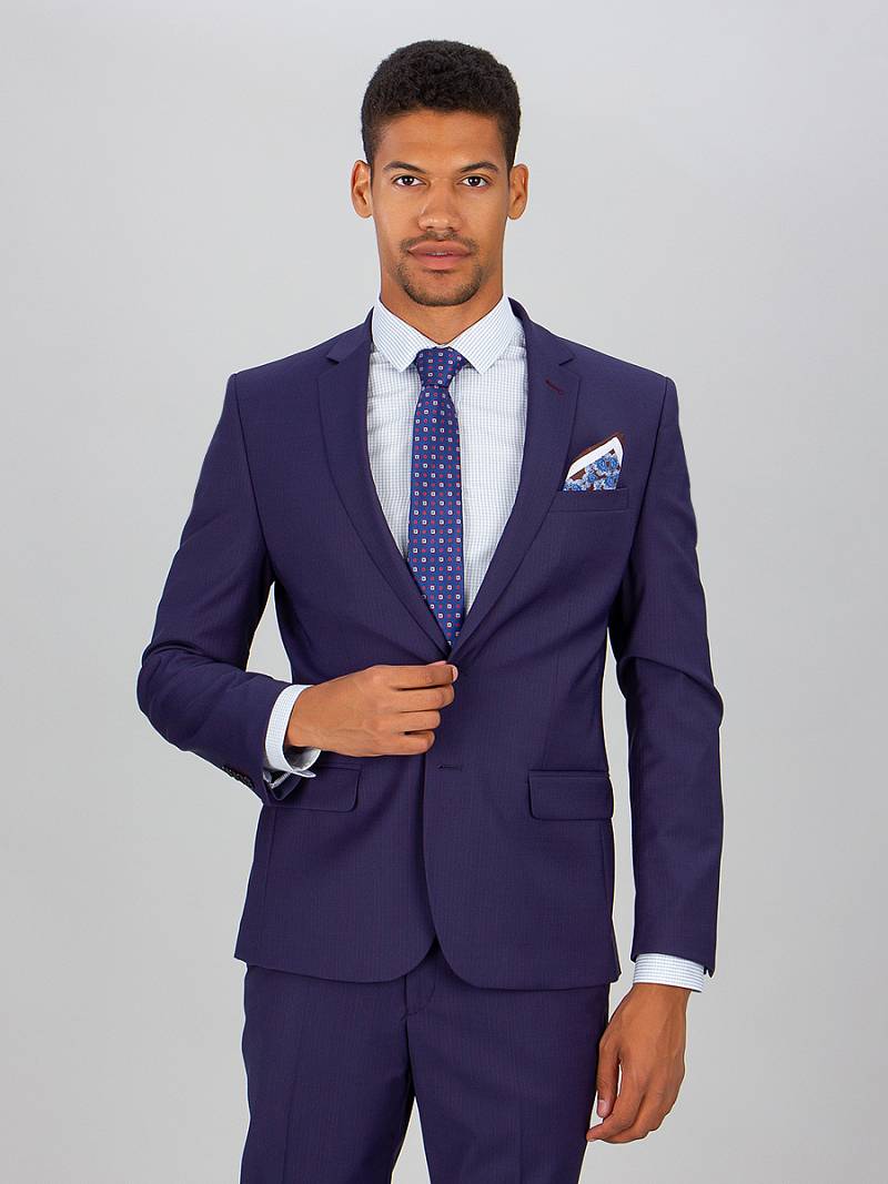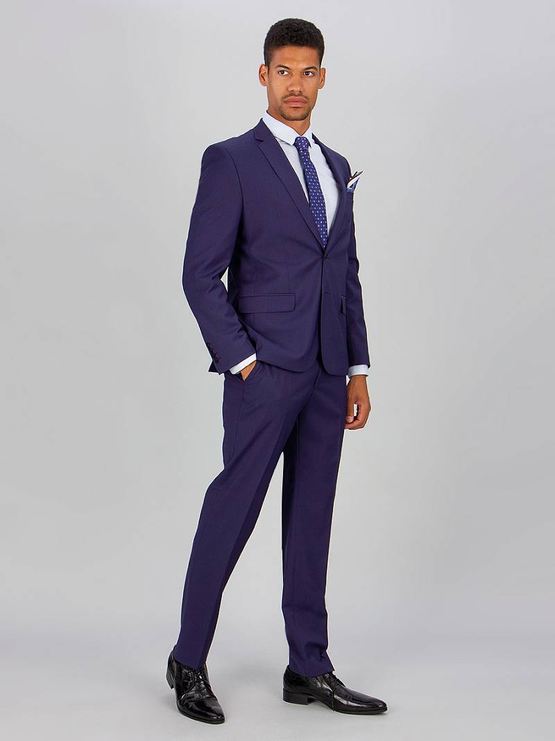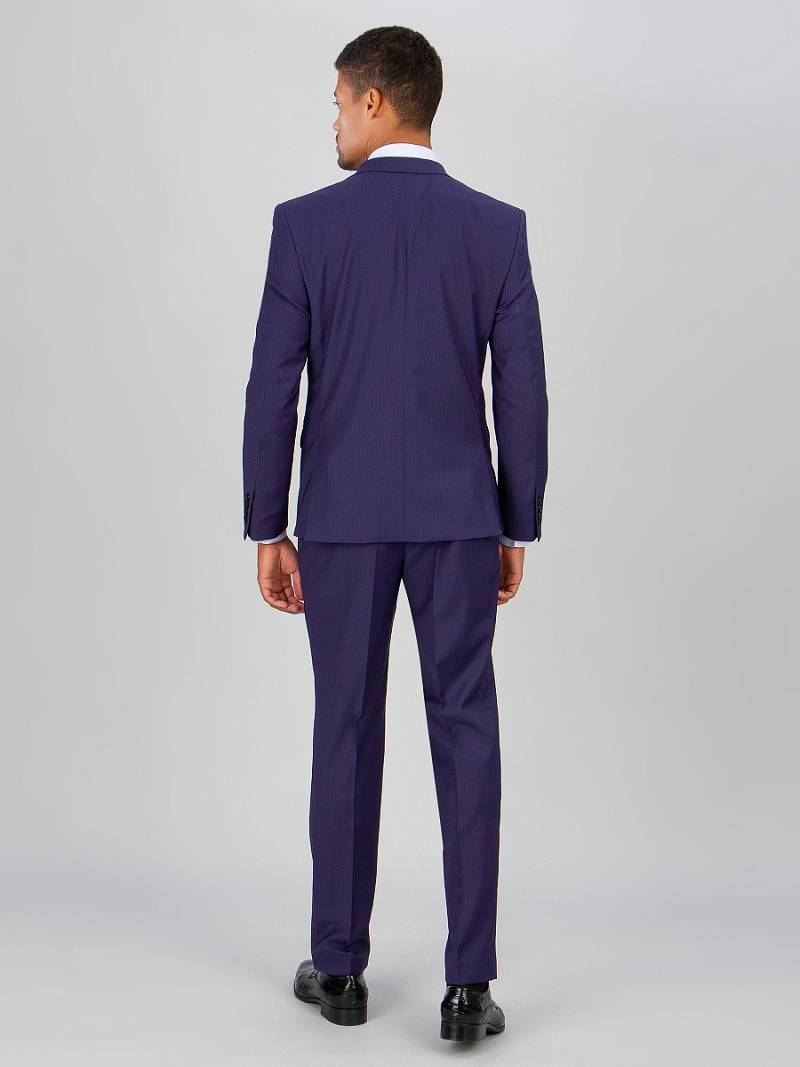 Классический костюм двойка Classic fit. Пиджак на две пуговицы, с боковыми и нагрудным карманами, по спинке две шлицы. Брюки без защипов с боковыми и одним задним карманом.