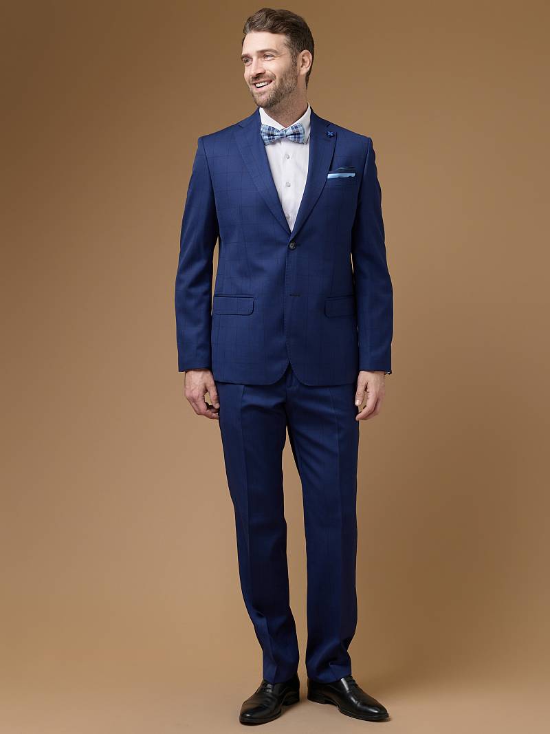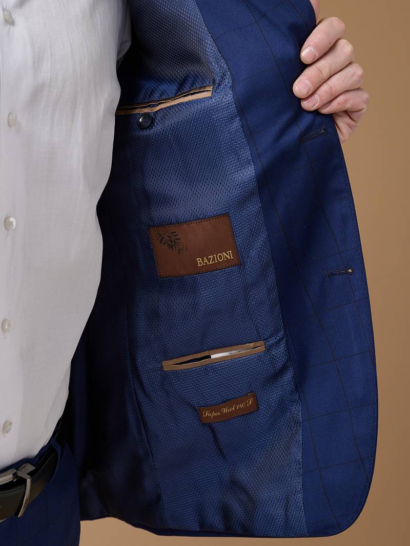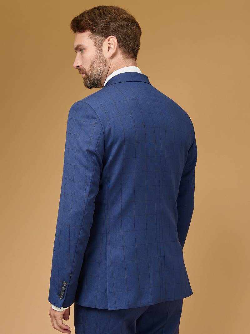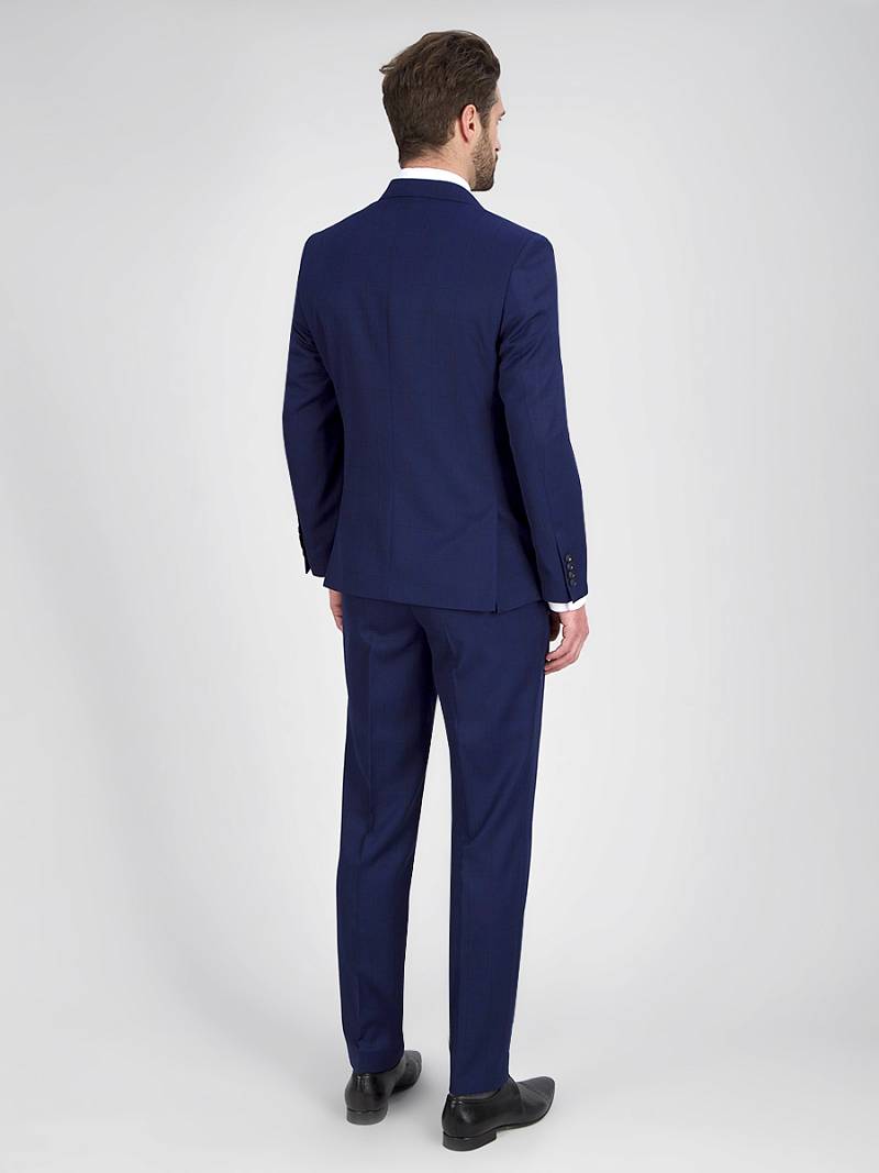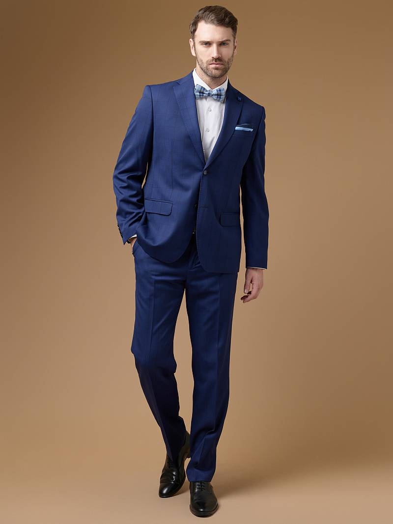 Классический костюм двойка Classic fit. Пиджак на две пуговицы, с боковыми и нагрудным карманами, по спинке две шлицы. Вспушка по воротнику, лацканам, краю борта, клапанам и нагрудной листочке Брюки без защипов с боковыми и одним задним карманом.